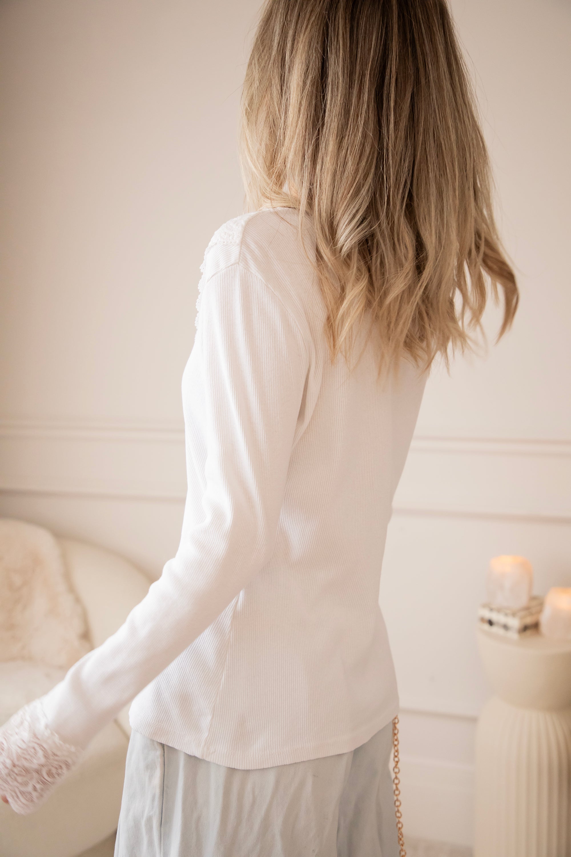 Dit is zo’n longsleeve die helemaal ellemilla ademt 😍 Een ribgebreide basic, maar met de mooiste kanten details aan de hals en mouwuiteindes. Subtiel, maar daardoor juist zo elegant 🎀 Het doet een beetje denken aan Elsie Laced, maar deze stof voelt veel verfijnder, dunner en zacht op de huid. Een van mijn favoriete longsleeves en ik dacht dat het niet meer beter kon hihi