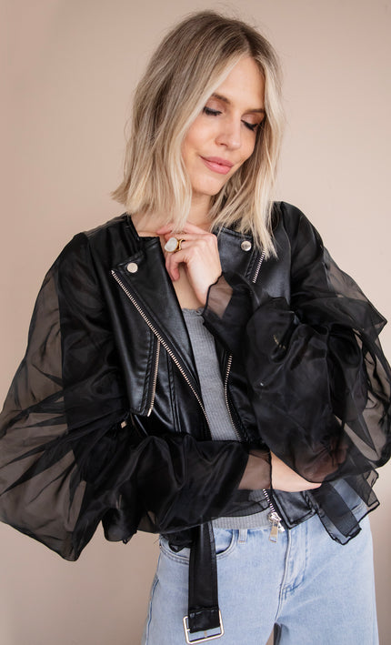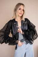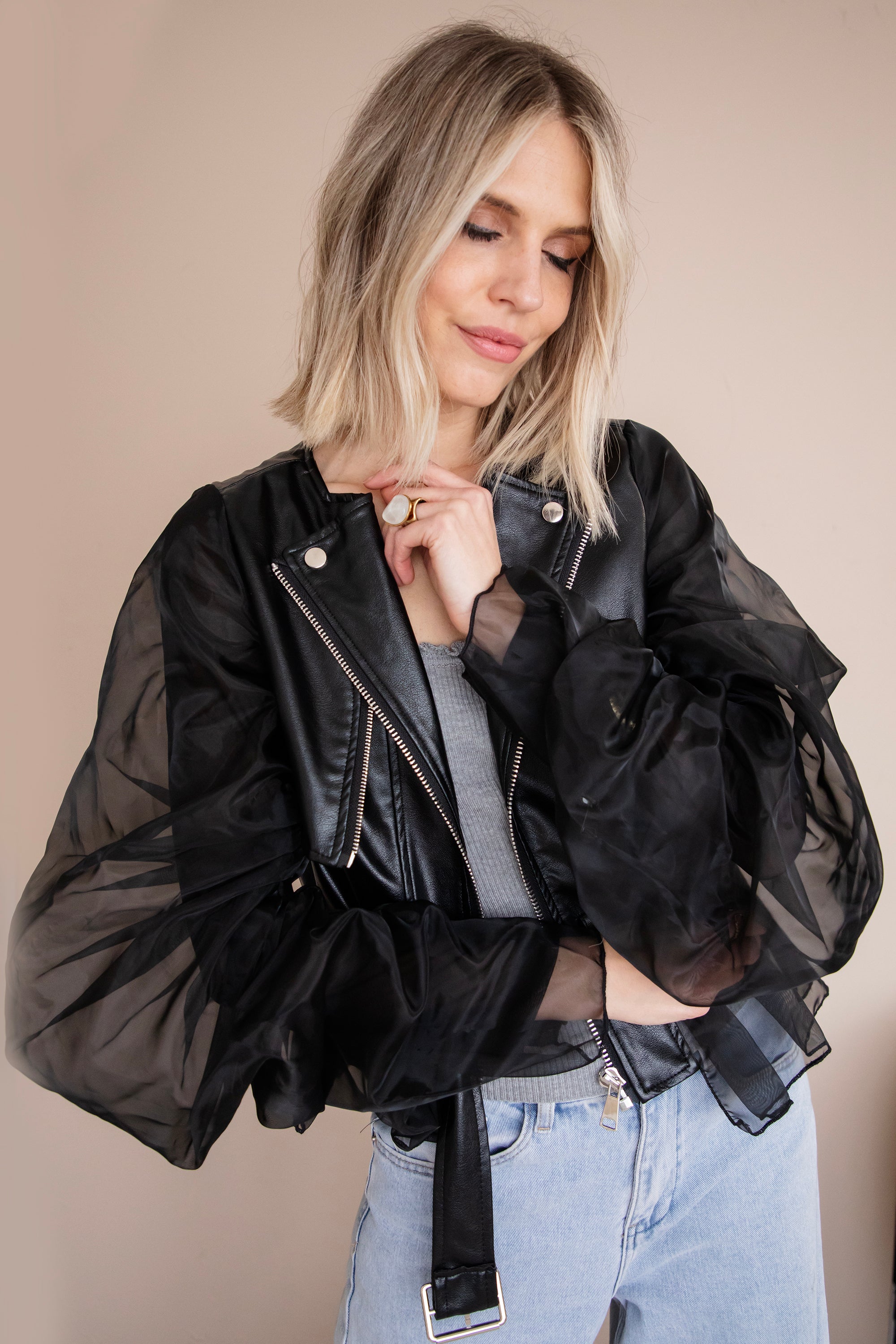 Zeg hallo tegen jouw nieuwe showstopper! De Belle Couture jacket is niet zomaar een jasje! Dit is een exclusief ellemilla design dat je nergens anders vindt. Stoer én ultra vrouwelijk, met edgy PU-leather in het midden en romantische kanten mouwen die een echte statement maken 💥 Ja dit is toch wel echt een item op trots op te zijn!