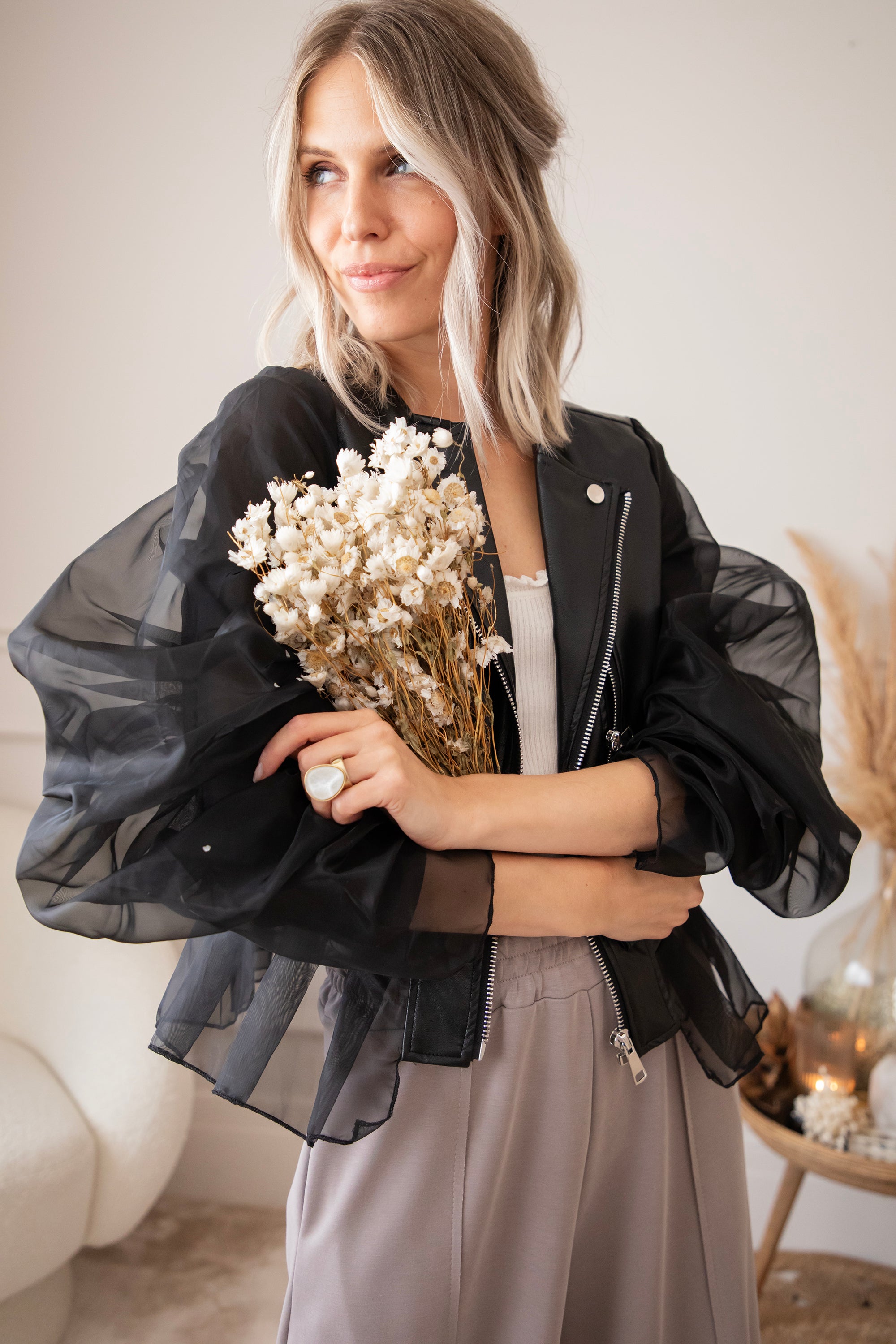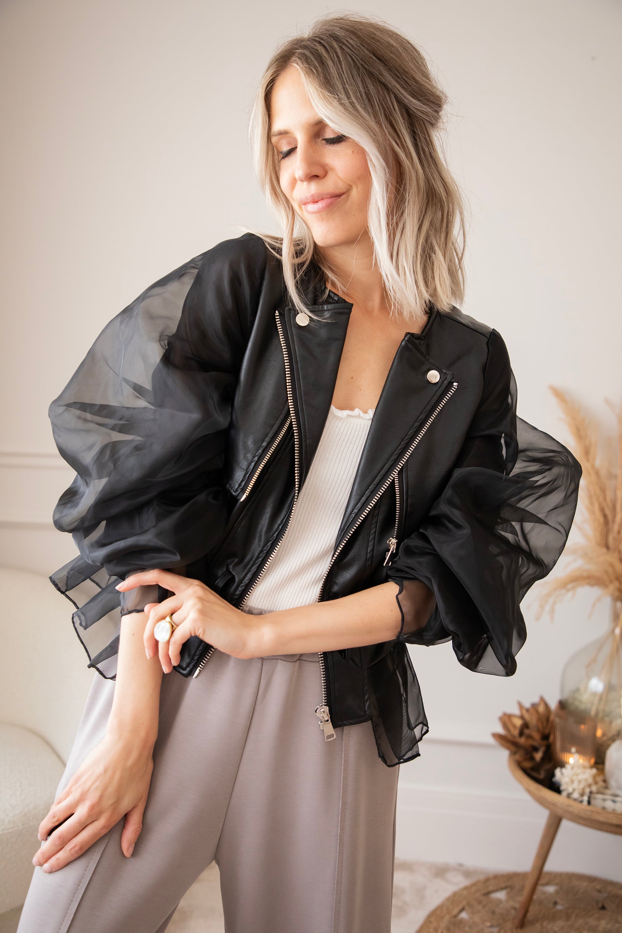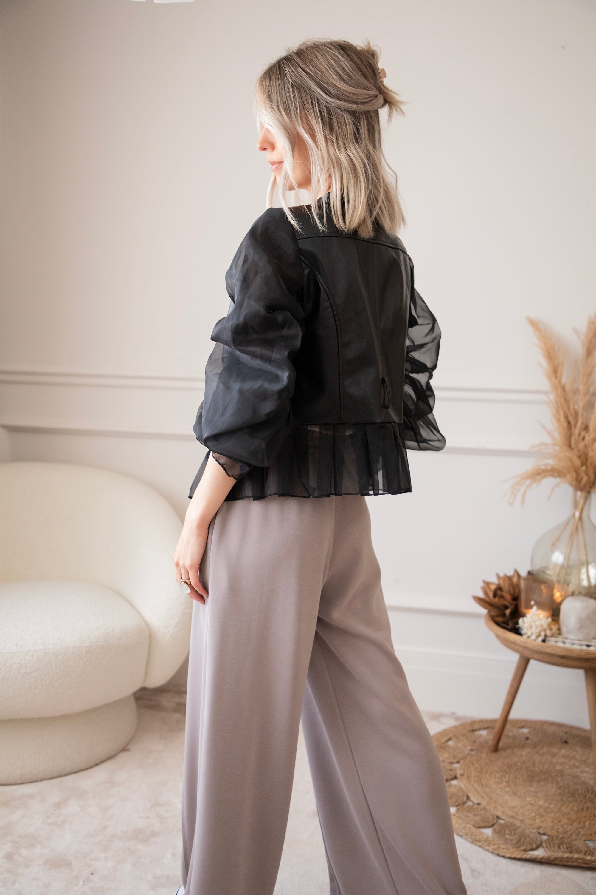 Zeg hallo tegen jouw nieuwe showstopper! De Belle Couture jacket is niet zomaar een jasje! Dit is een exclusief ellemilla design dat je nergens anders vindt. Stoer én ultra vrouwelijk, met edgy PU-leather in het midden en romantische kanten mouwen die een echte statement maken 💥 Ja dit is toch wel echt een item op trots op te zijn!