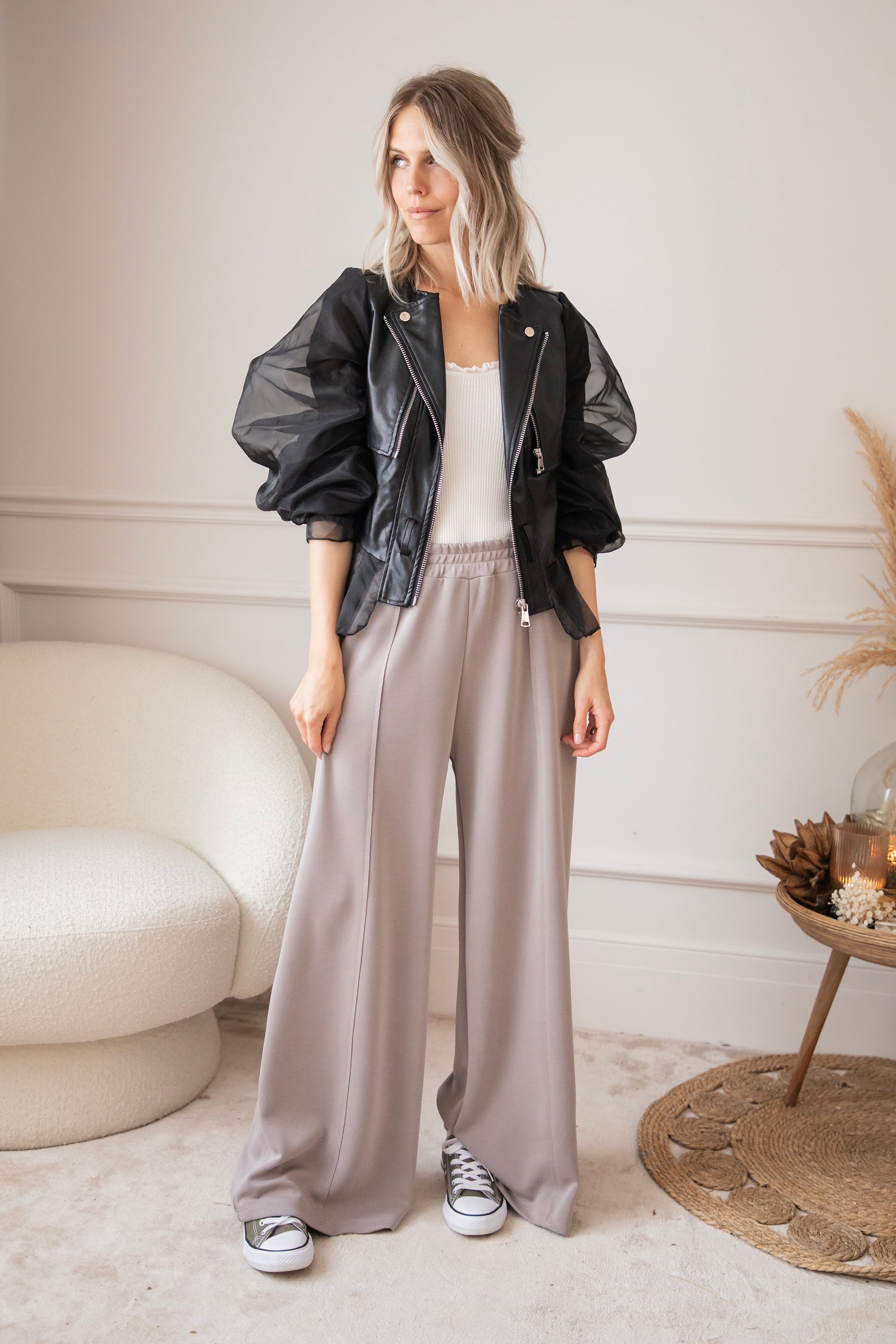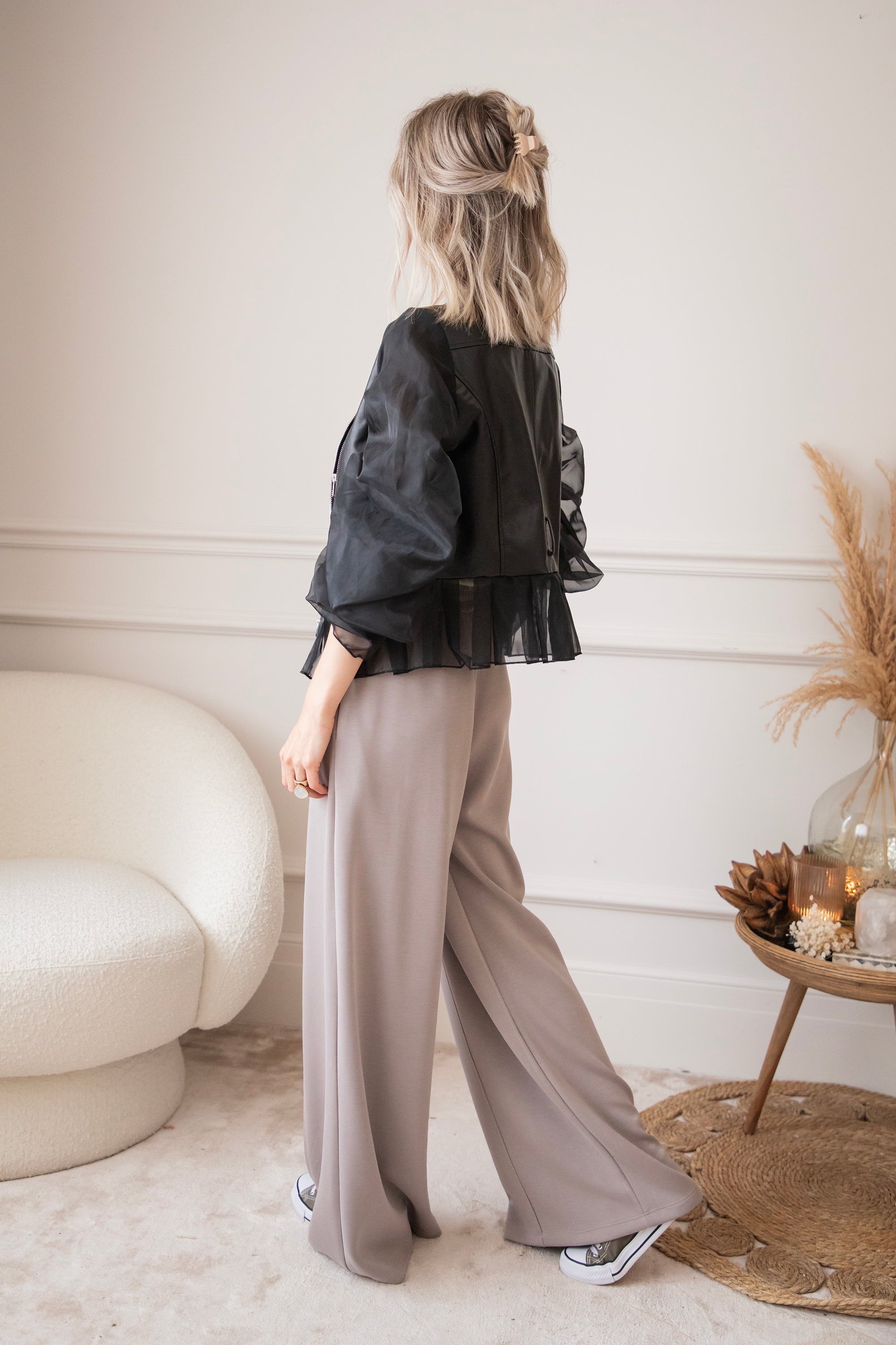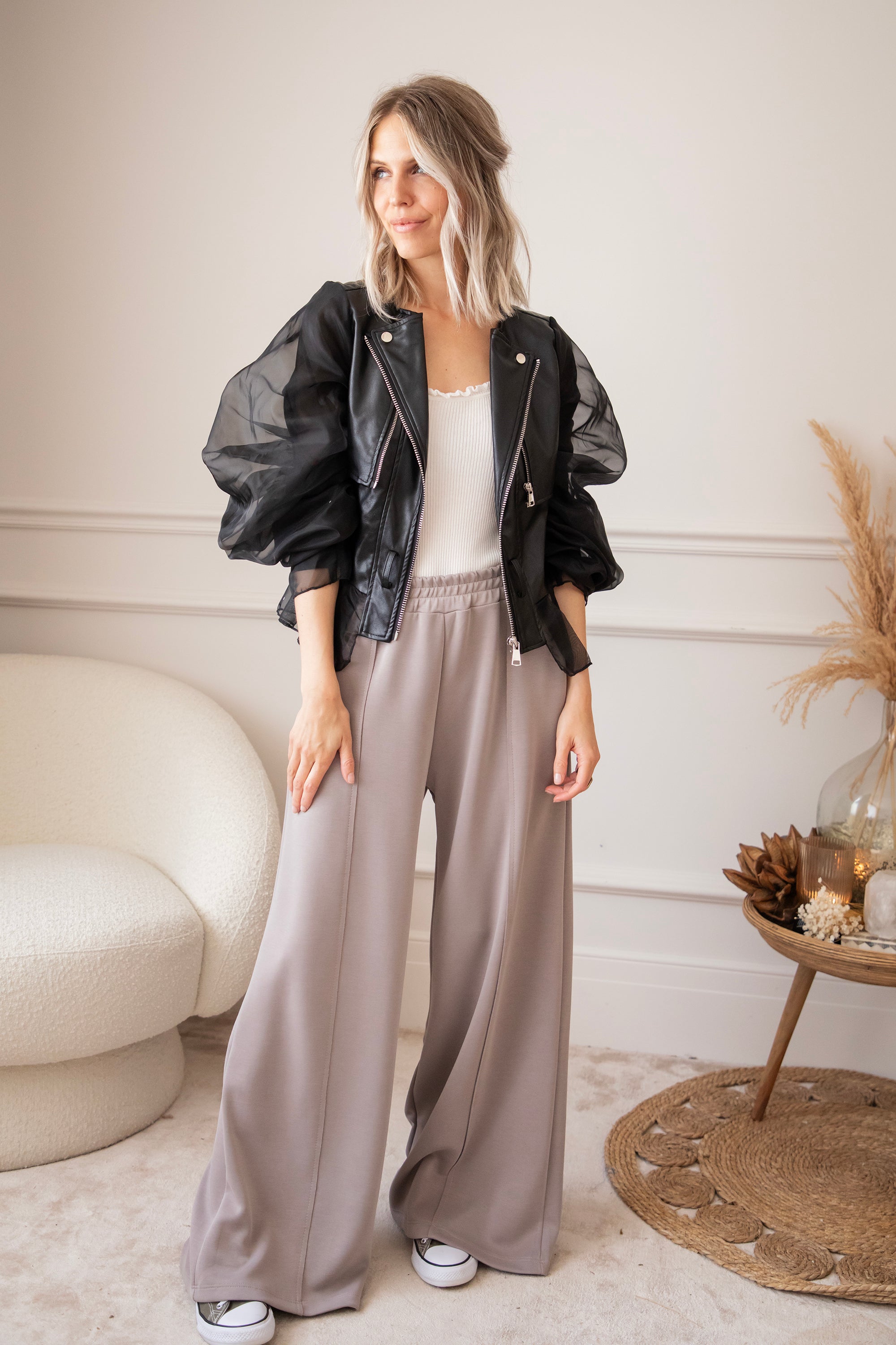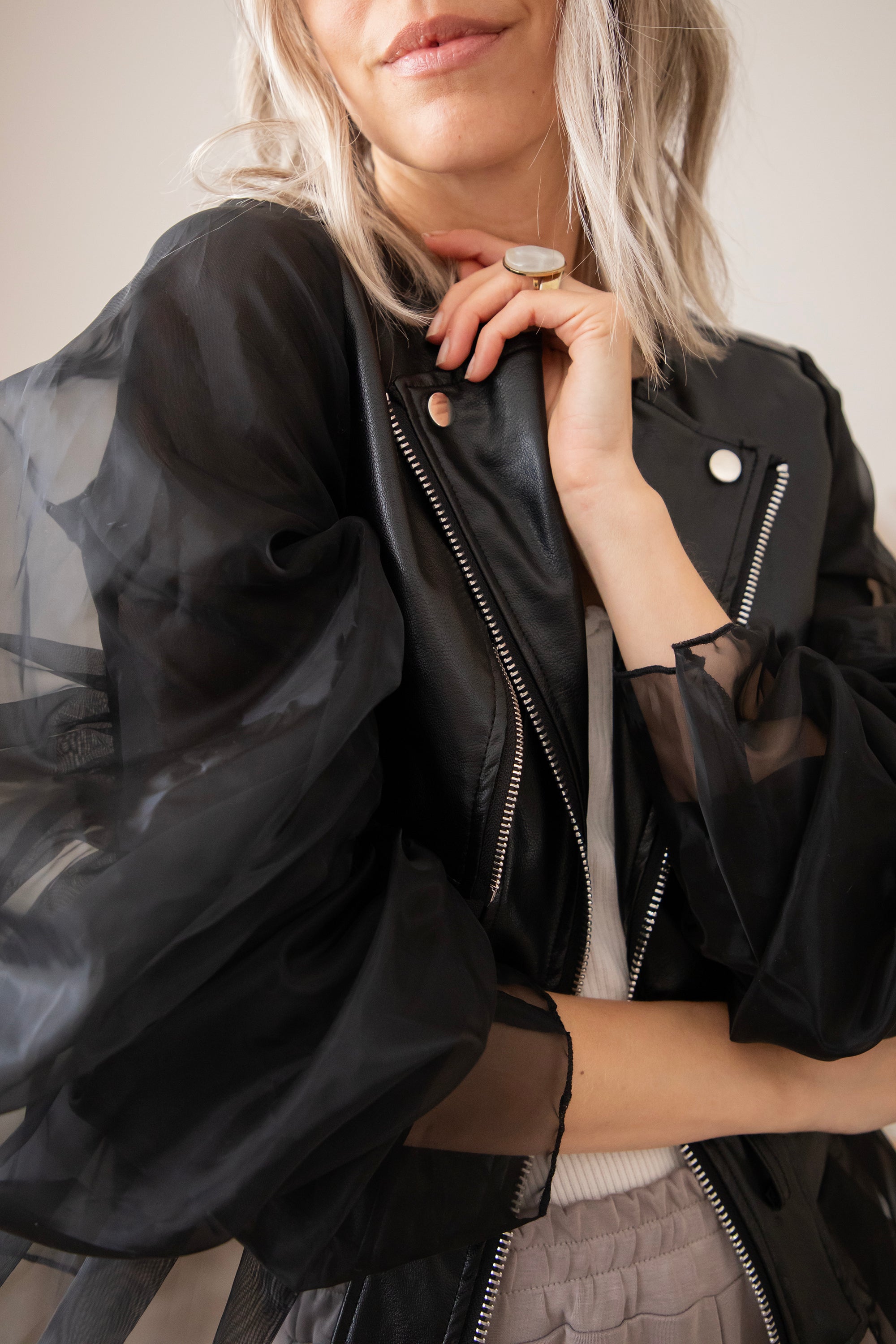Zeg hallo tegen jouw nieuwe showstopper! De Belle Couture jacket is niet zomaar een jasje! Dit is een exclusief ellemilla design dat je nergens anders vindt. Stoer én ultra vrouwelijk, met edgy PU-leather in het midden en romantische kanten mouwen die een echte statement maken 💥 Ja dit is toch wel echt een item op trots op te zijn!