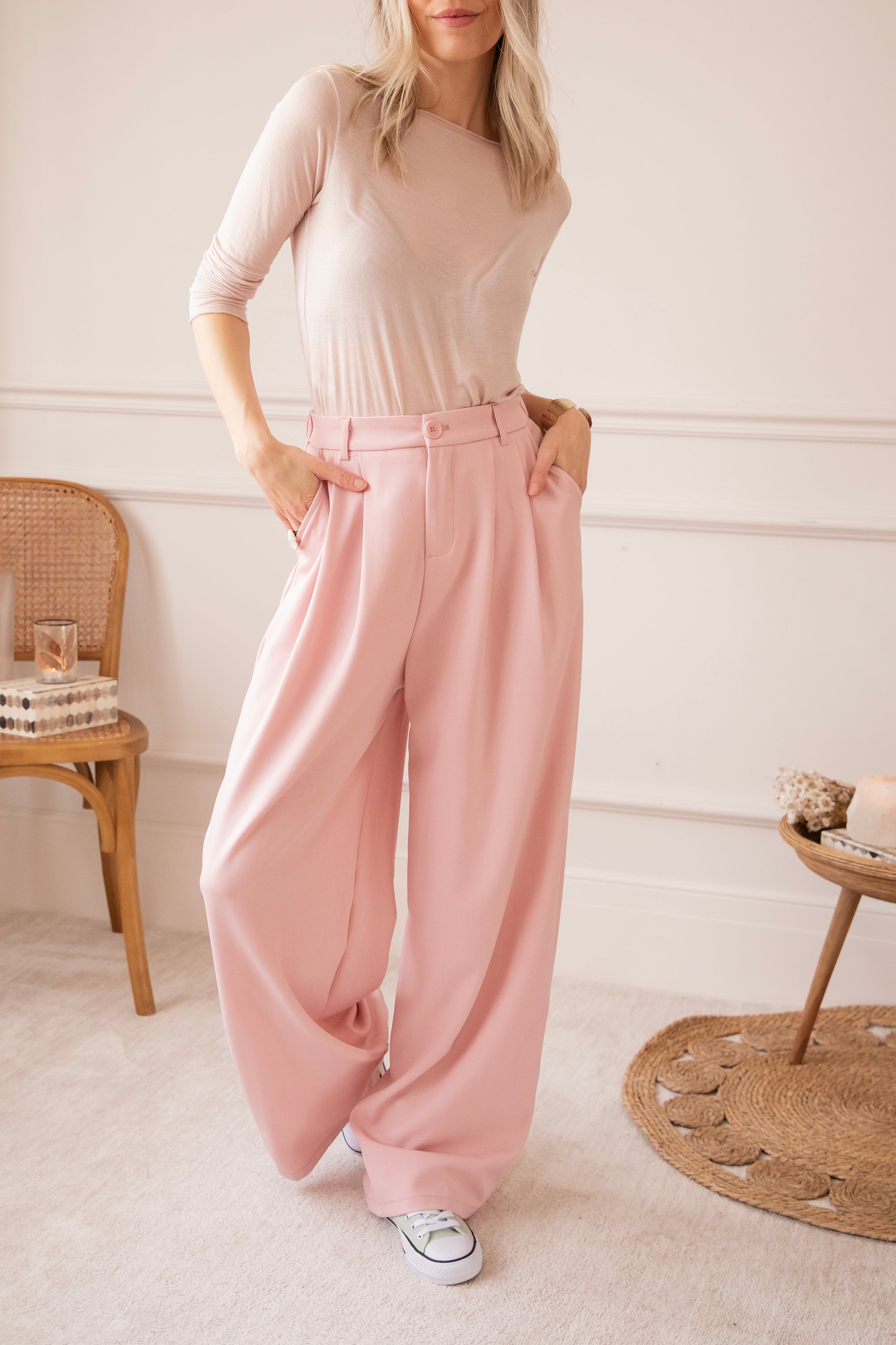 Een loose fitted broek die comfort en chic perfect combineert! π De elastische taille tailleert mooi en de wijde pijpen zorgen voor een elegante, vloeiende look. De zachte, soepele stof beweegt heerlijk mee β ideaal om eens af te wisselen met je favoriete jeans. Zeker voor de mooie lentedagen is zoβn los exemplaar superfijn. Combineer met de Bravery Blazer en je hebt een classy co-ord setje waar je instant blij van wordt!