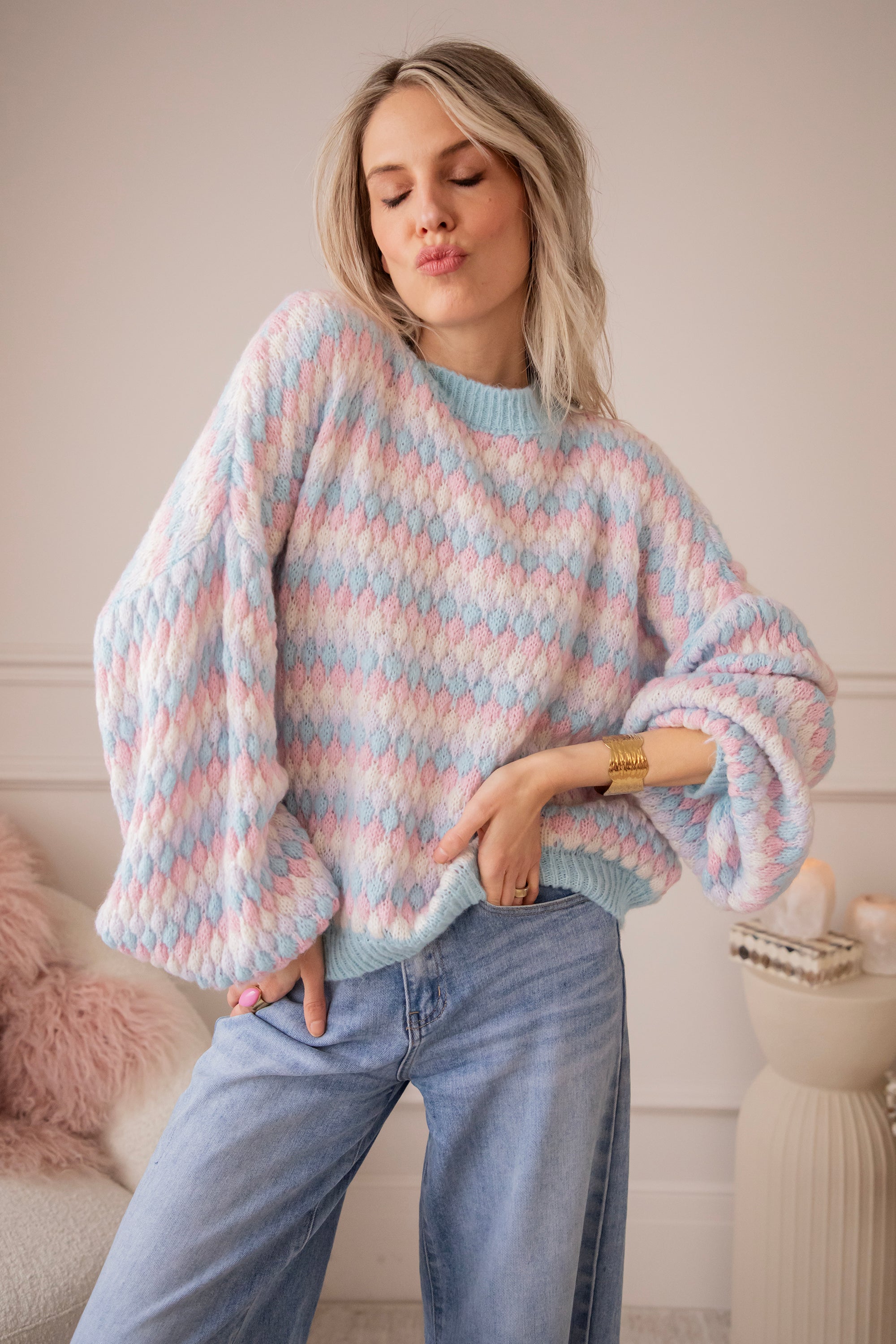 En die mouwen… wow 🥹 Heerlijk dramatisch, mooi poffend en helemaal ellemilla-approved hihi ❤️ Perfect voor lentedagen waarop je knitwear weer wat kleur en fun mag uitstralen.