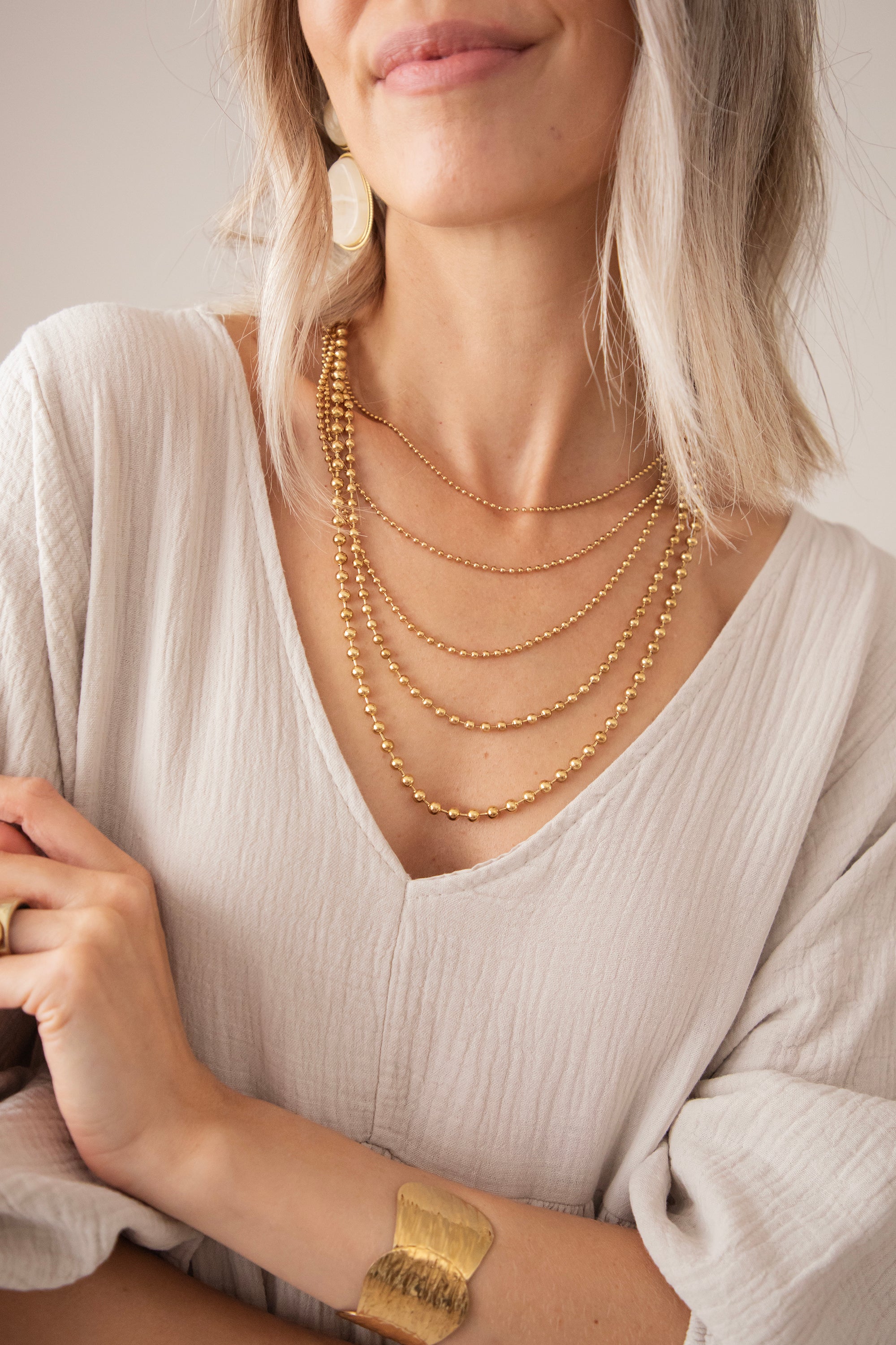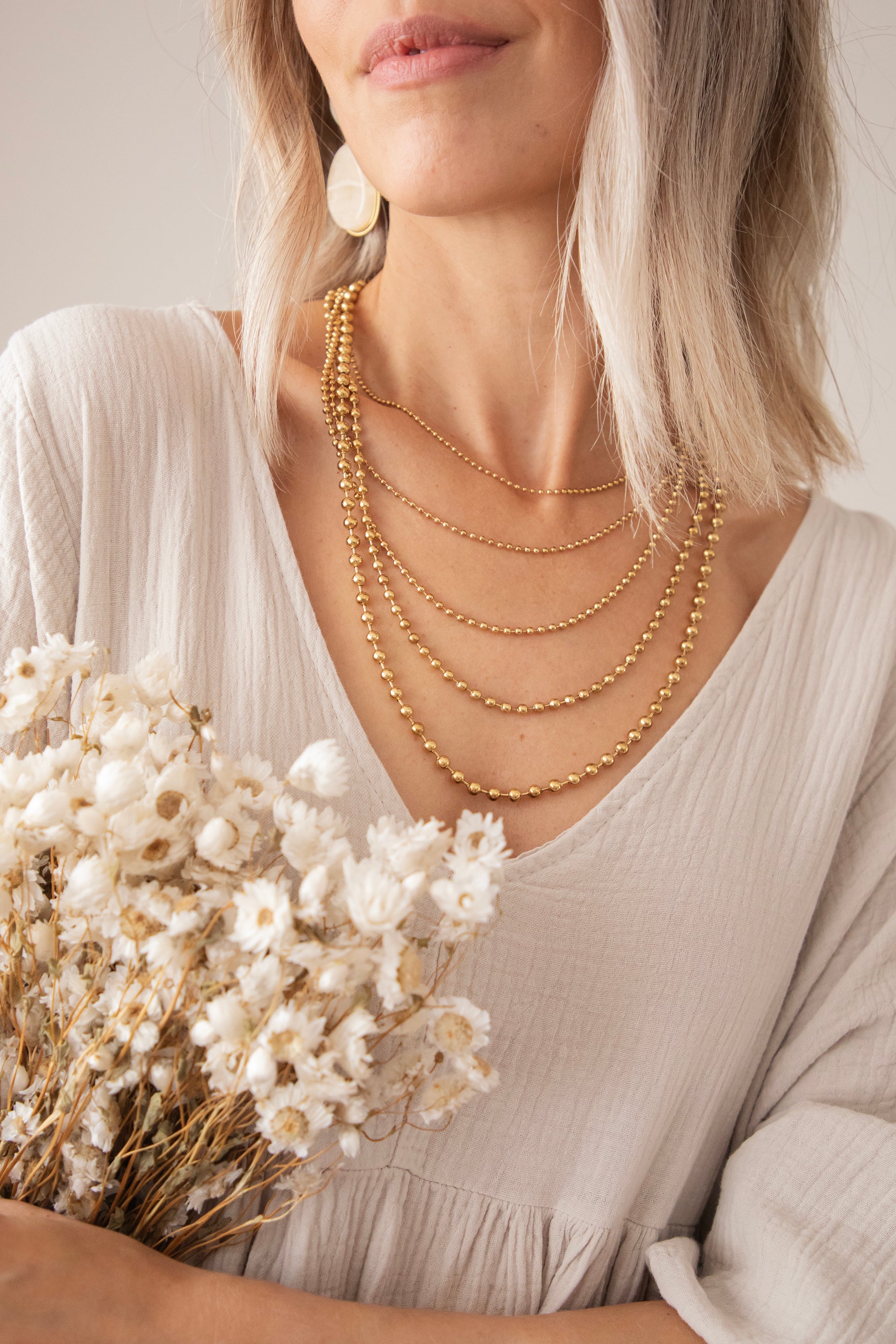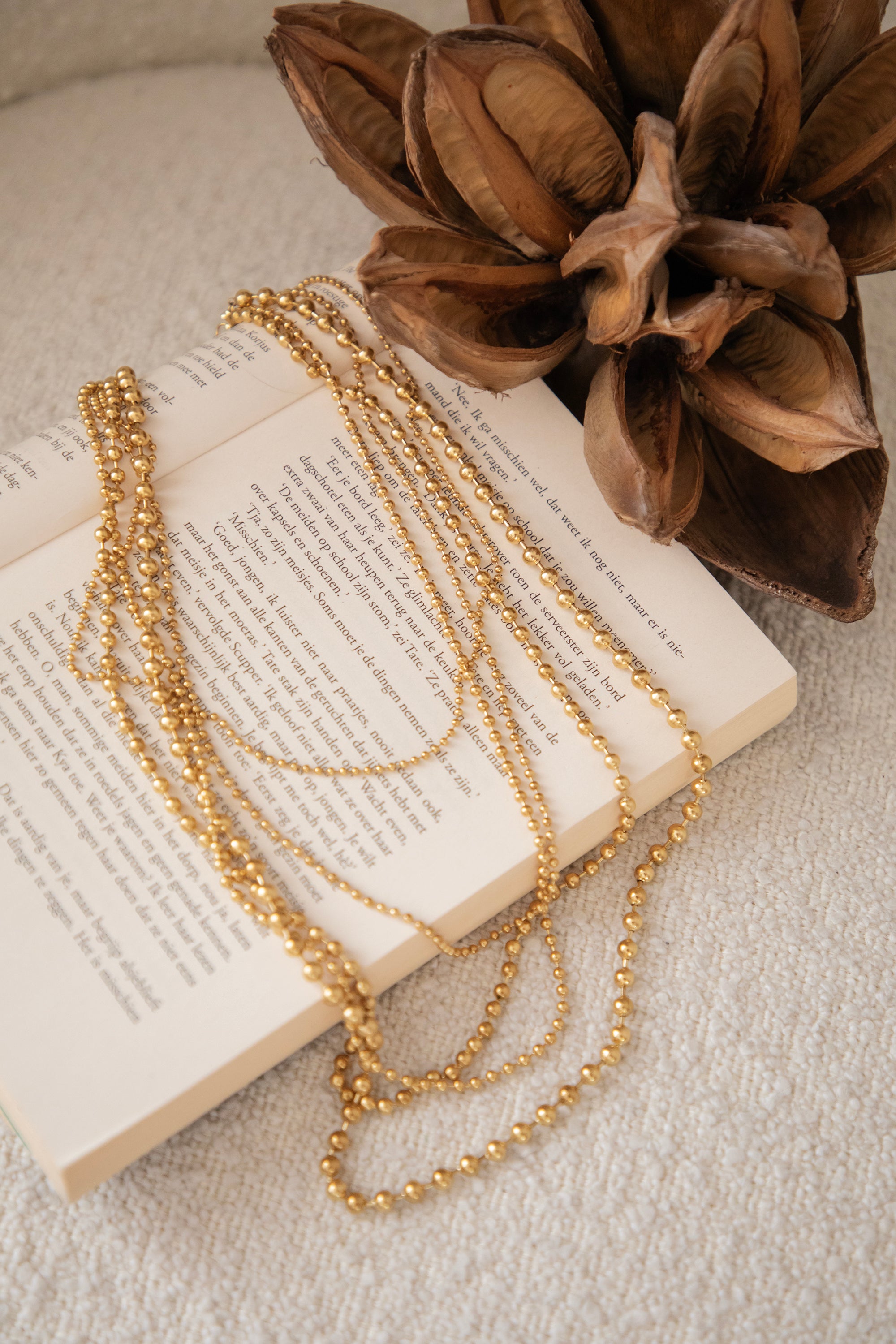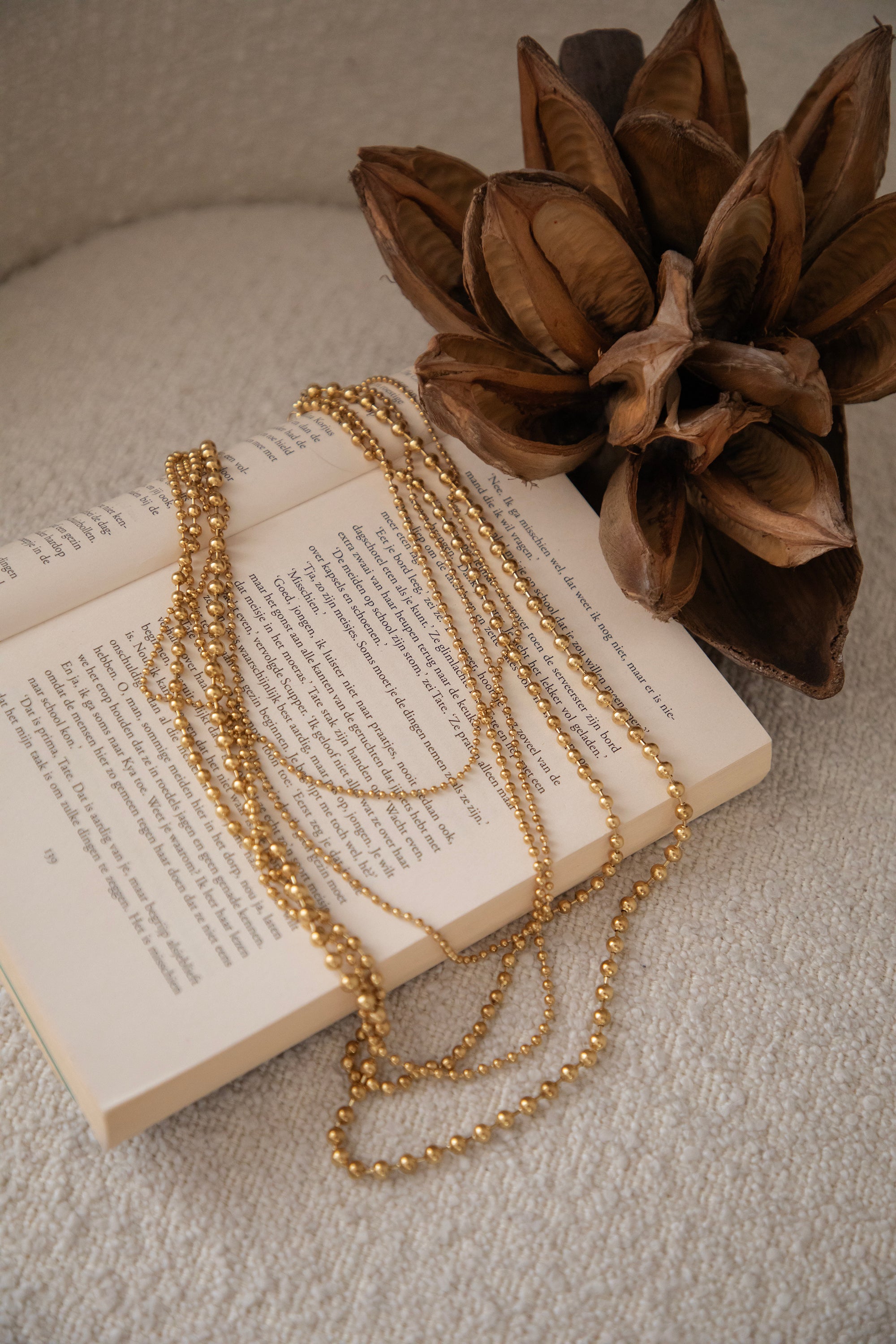 De Bullet Beauty ketting bestaat uit vier verfijnde laagjes met kleine bullets, die elegant opbouwen van klein naar groot. Dat geeft een bijzonder effect rond je hals, een echte beauty, als je het mij vraagt ☺️