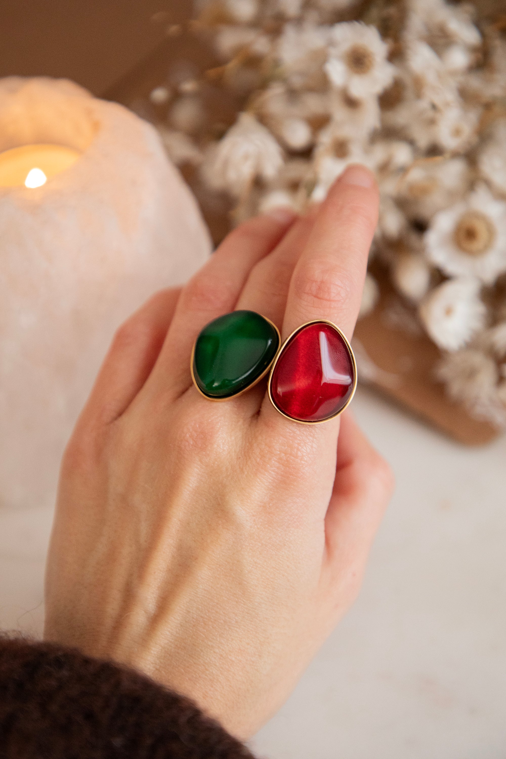 Ooooh girls… we hebben een nieuwe kleur en ze is gorgeous! Dark green is het accent van het seizoen en nu kan je je outfits nog mooier afwerken met deze prachtige Caia ring 😍