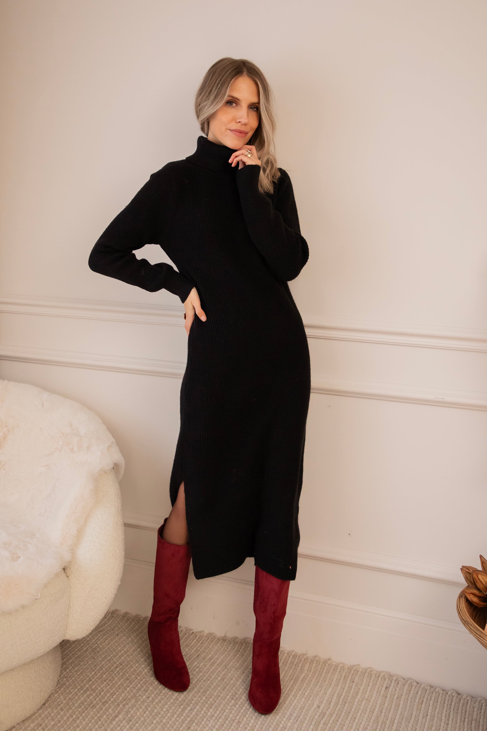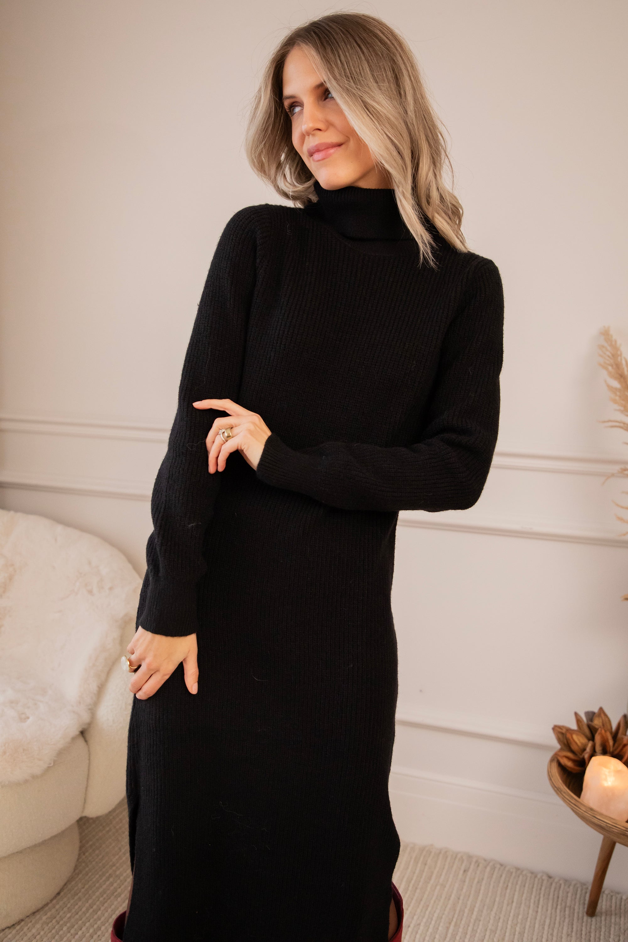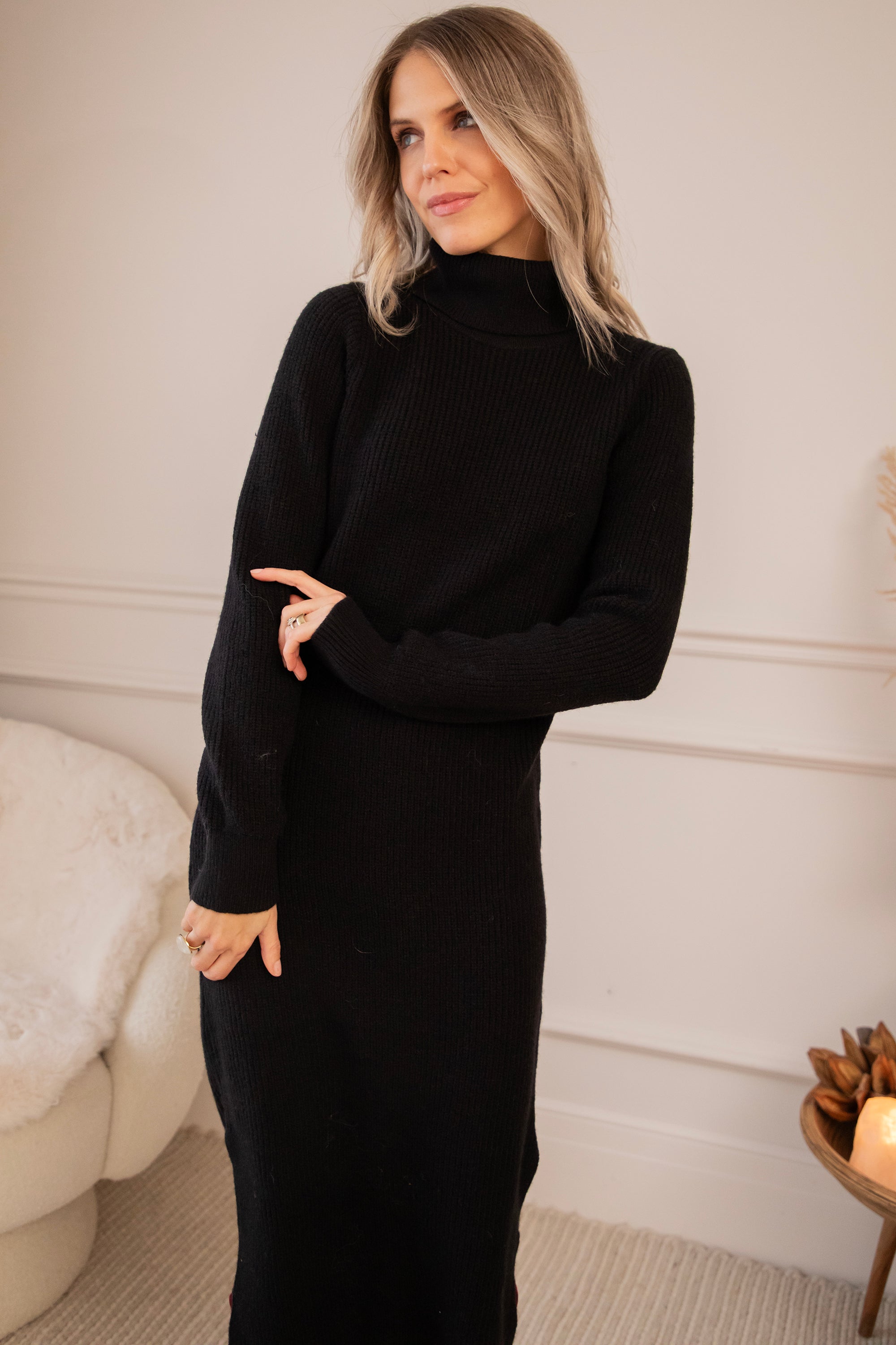 Girls, soms wil je gewoon comfy blijven maar tóch iets vrouwelijker dan je standaard sweater & jeans combo 🥰 Dan is Caroll er voor jou! Een heerlijke sweater dress die comfort en elegantie combineert 🙌 Ze heeft een mooie geribbelde look, valt 3/4 lang, komt met een cozy rolkraag en splitjes aan de zijkant en het allerbeste: ze is gemaakt in een superzachte stof die mega goed meerekt 😍 Echt een jurk die je met plezier aantrekt!