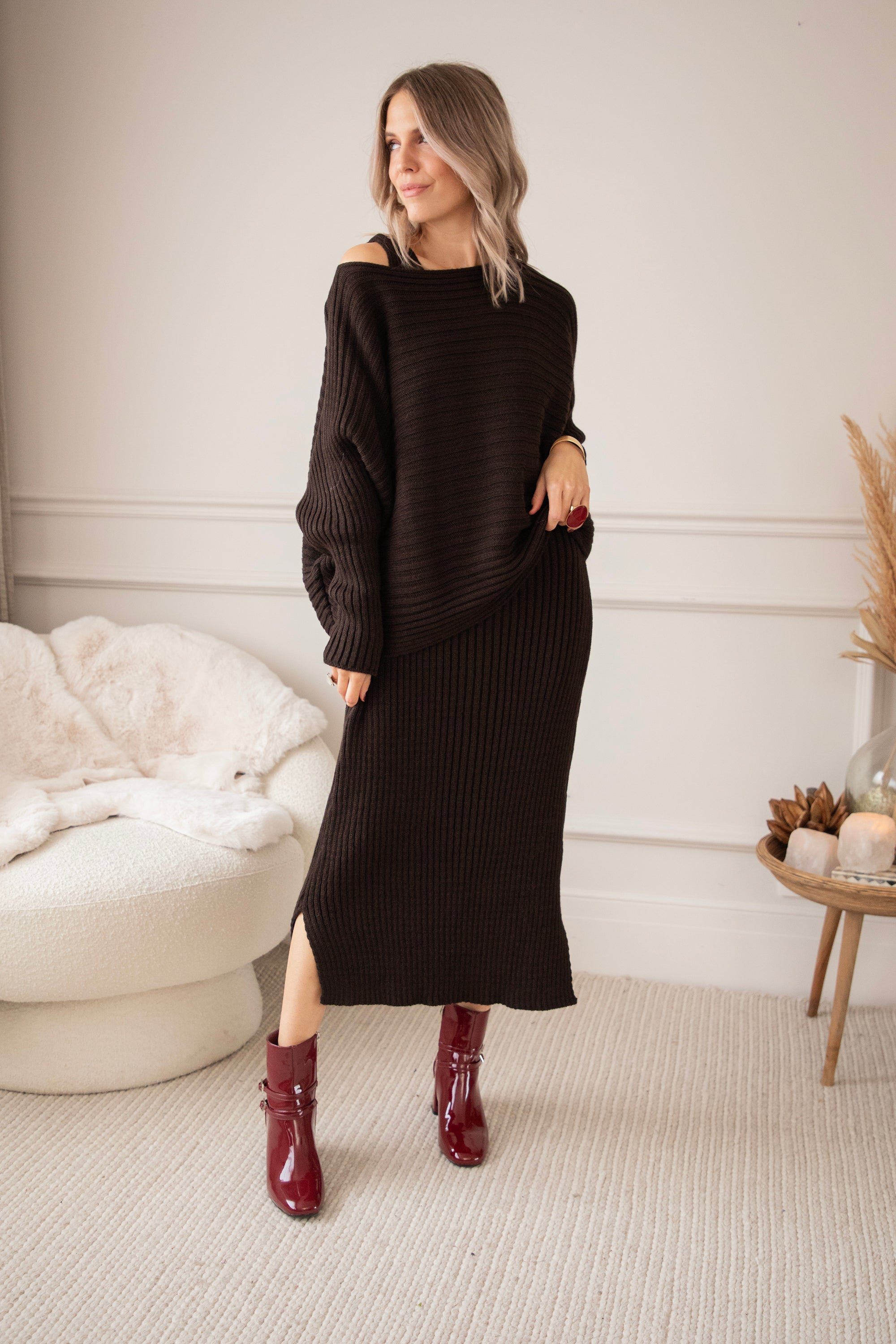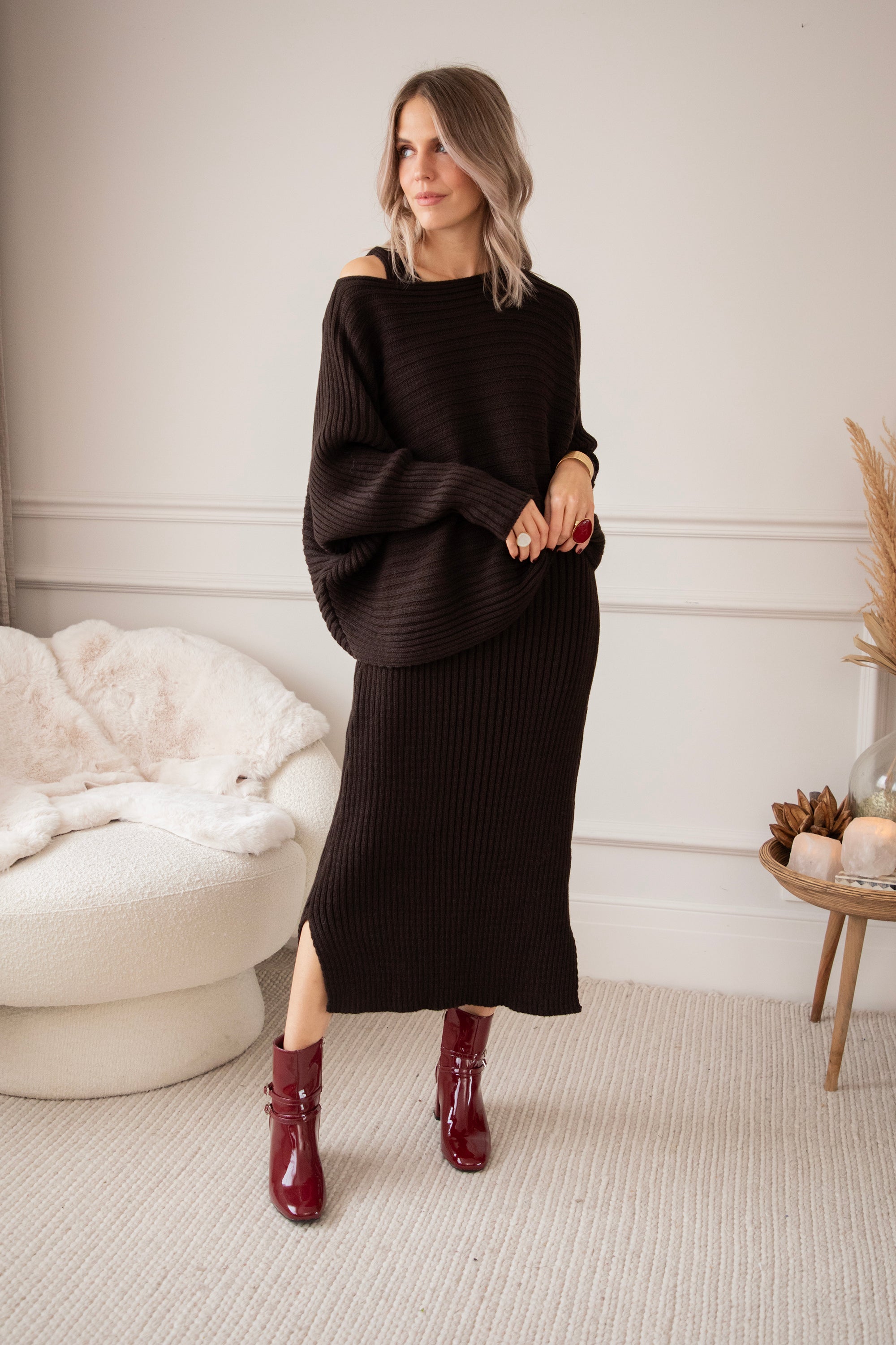 En weet je wat ik er zo fijn aan vind? Je kan er alle kanten mee uit! Heb je het te warm op een feestje of tijdens een dagje shoppen? Hop, sweater uit en je staat daar met een supermooie knit dress, instant dressed up vibes ✨ Maar met de trui erbij krijg je dat comfy, knuffelige gevoel waar we op dit moment allemaal nood aan hebben, toch? 🫶