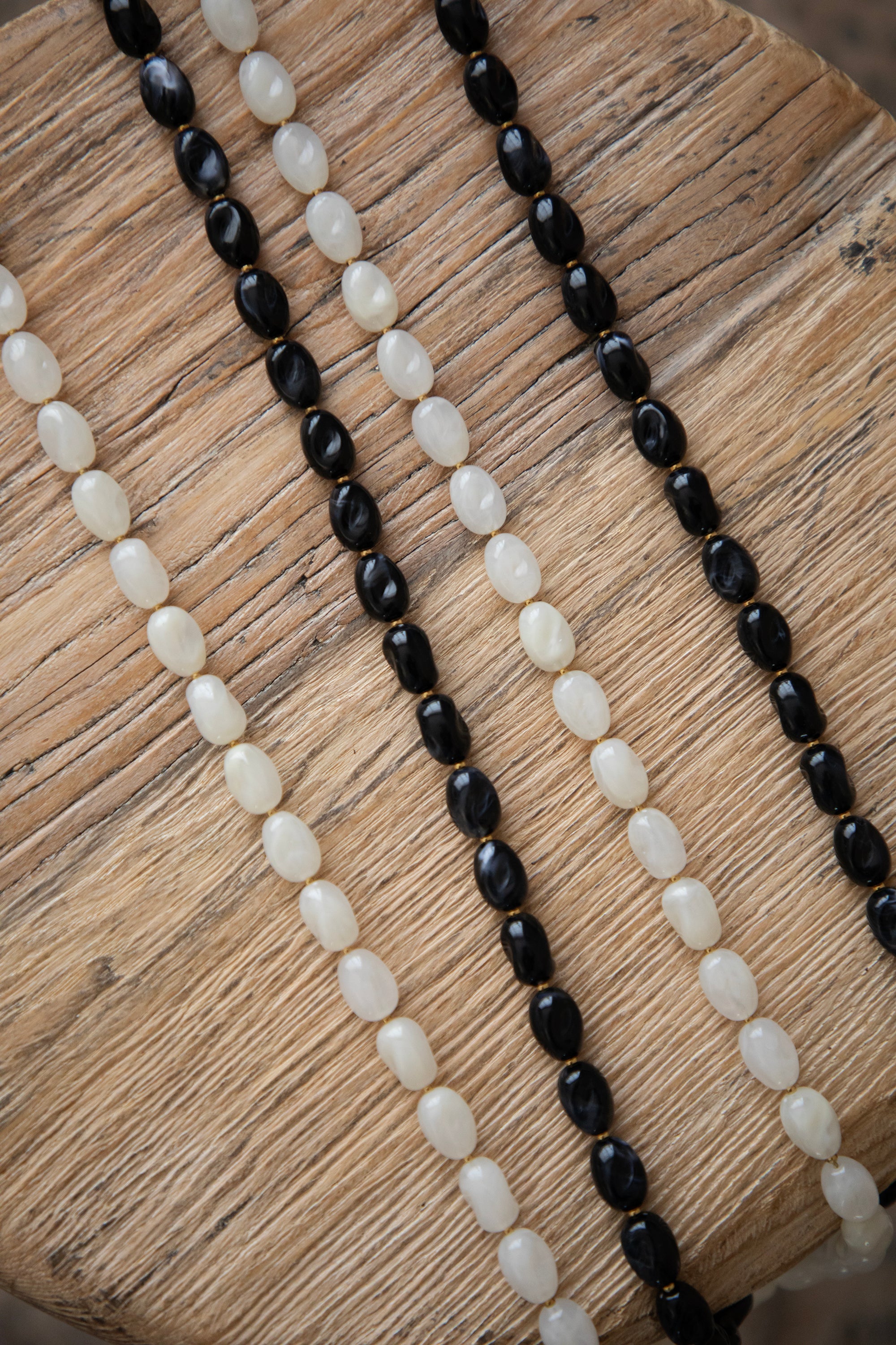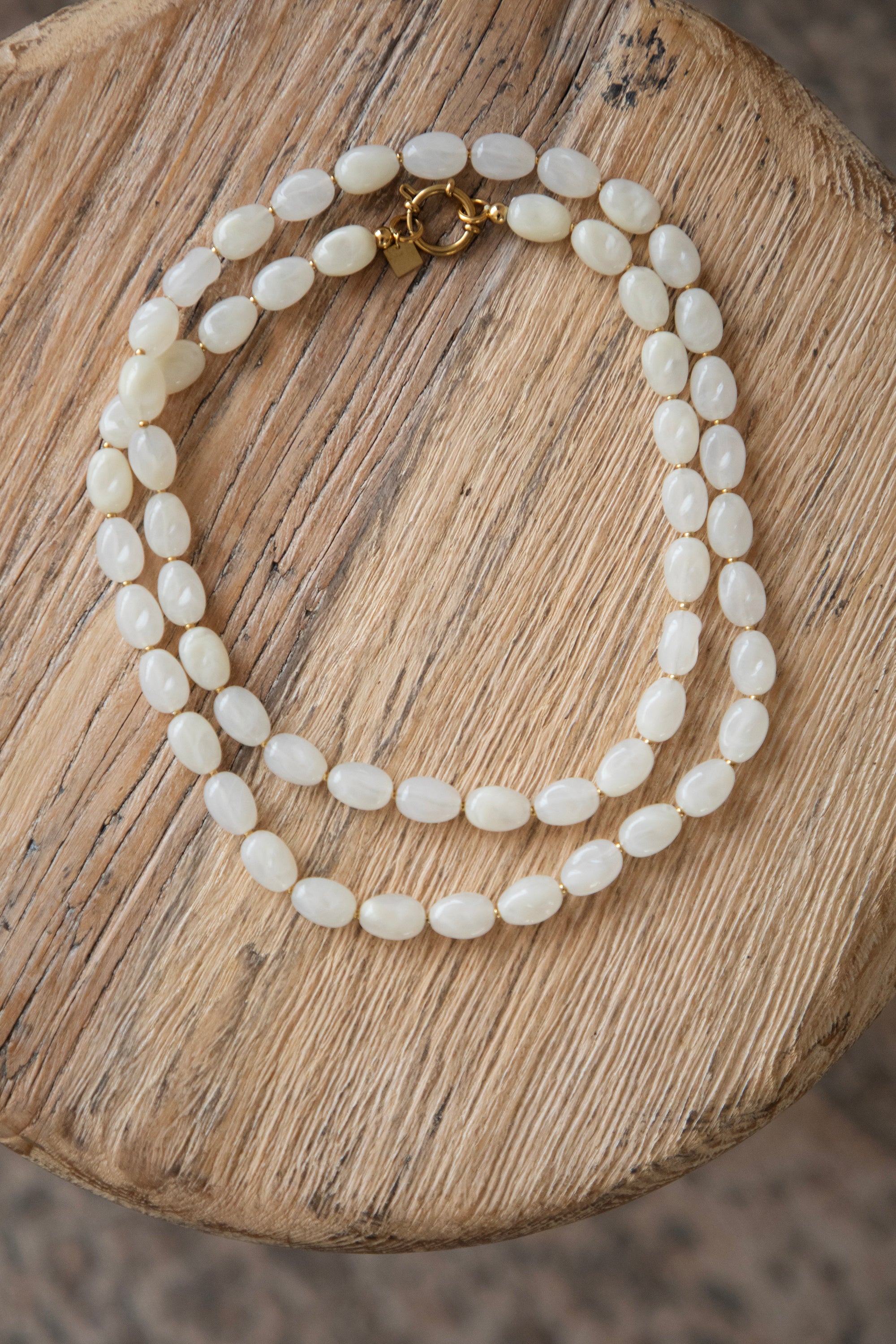 Oké girls… hoe charming is deze lange halsketting?! 😍 Helemaal gevuld met witte kralen met een parel-look! Oh zo elegant! Dit is zo’n ketting die je outfit in één klap een extra wow-factor geeft ⚡️
