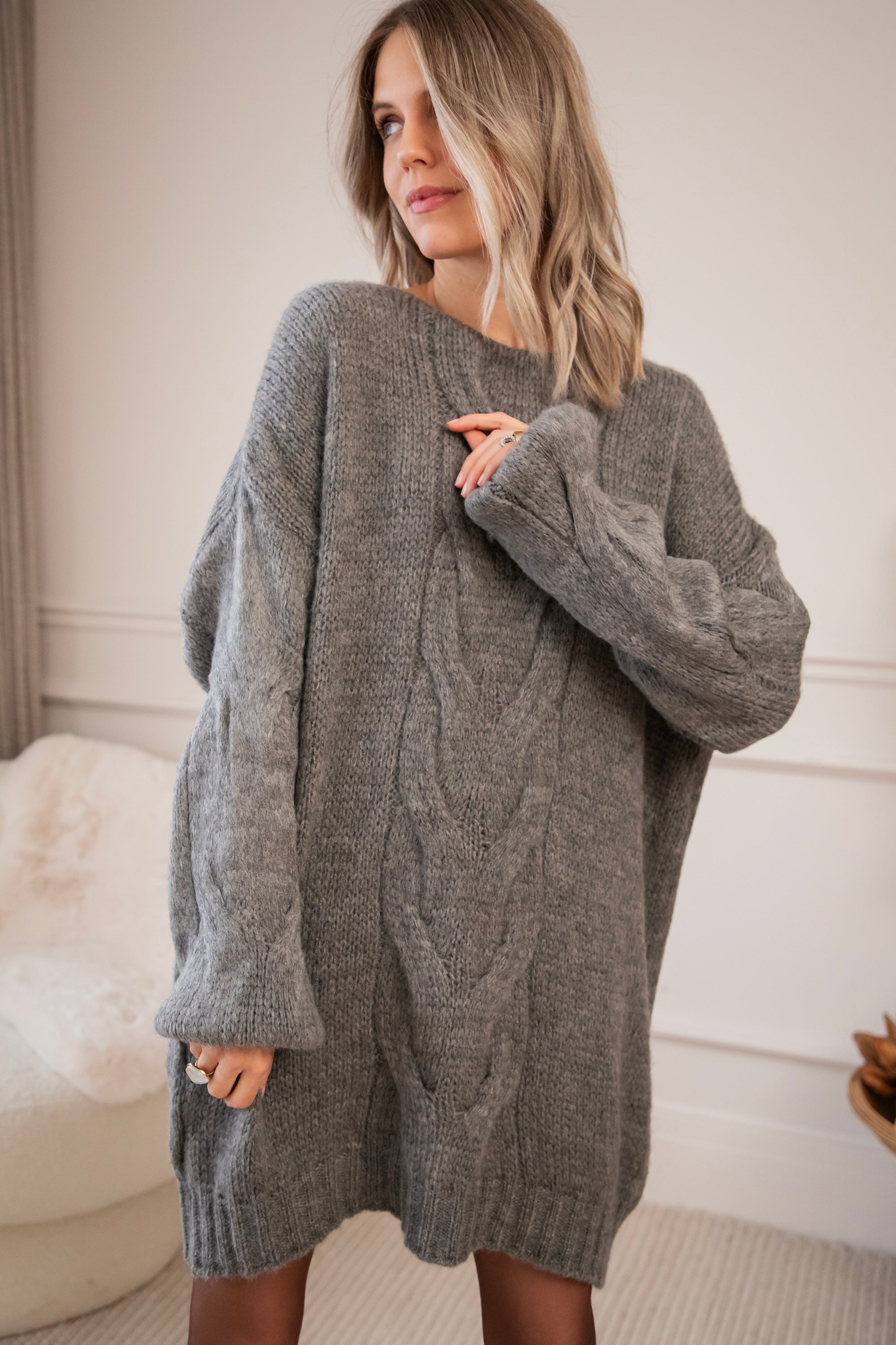 Coco Cable Dark Grey - Sweater Dress