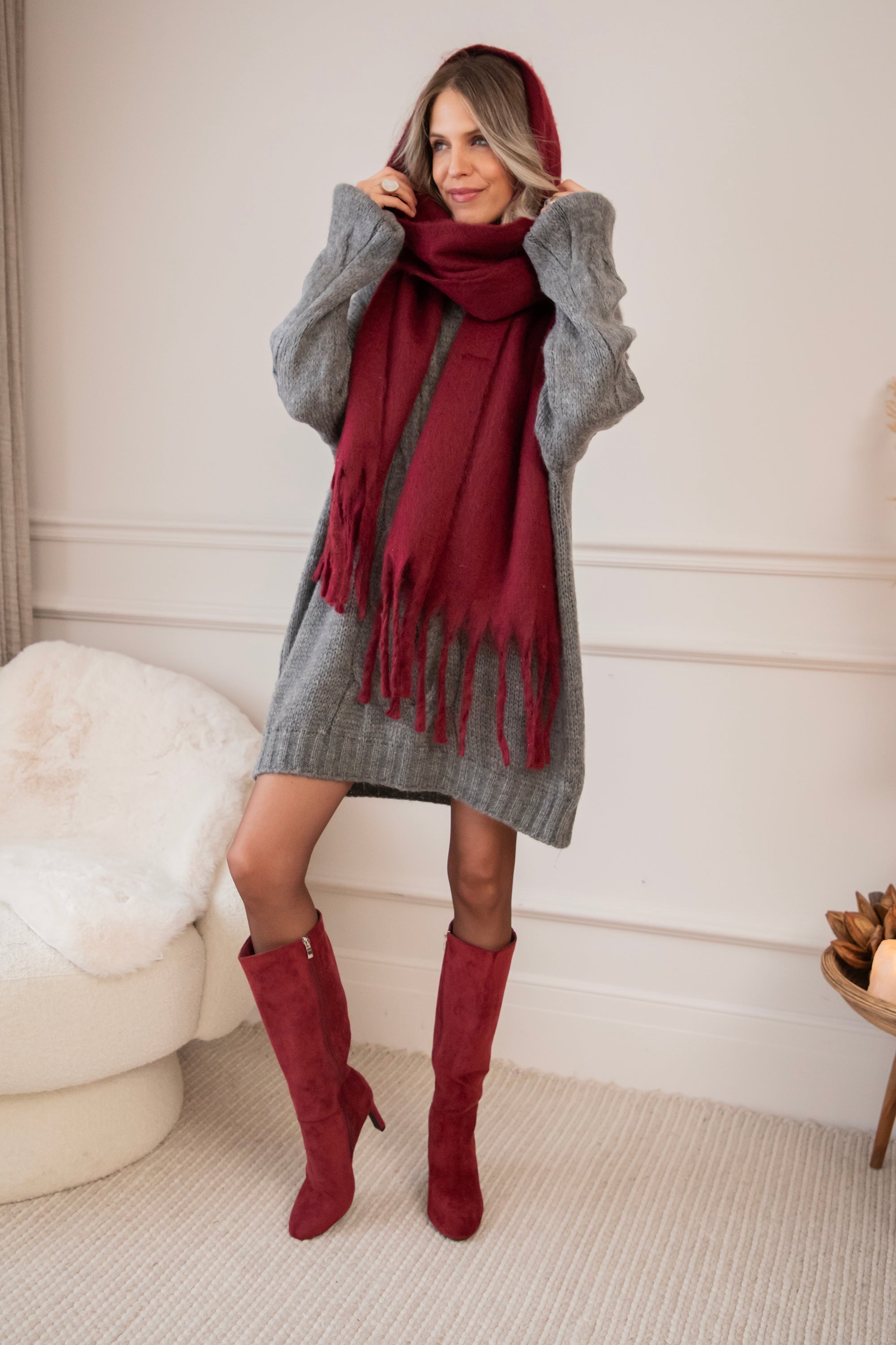Oooo meisjes, de Coco Cable is weer zo’n sweater dress waarvan ik denk: oké, deze gaat mijn kast in, no doubt! 😍 Deze is ietsje subtieler doordat er enkel in het midden een kabelpatroontje loopt maar daarom niet minder COZY 🥹 En laat me even zeggen: ze voelt lekker dik aan, echt zo’n warme winterknuffel. Heerijk! ❄️