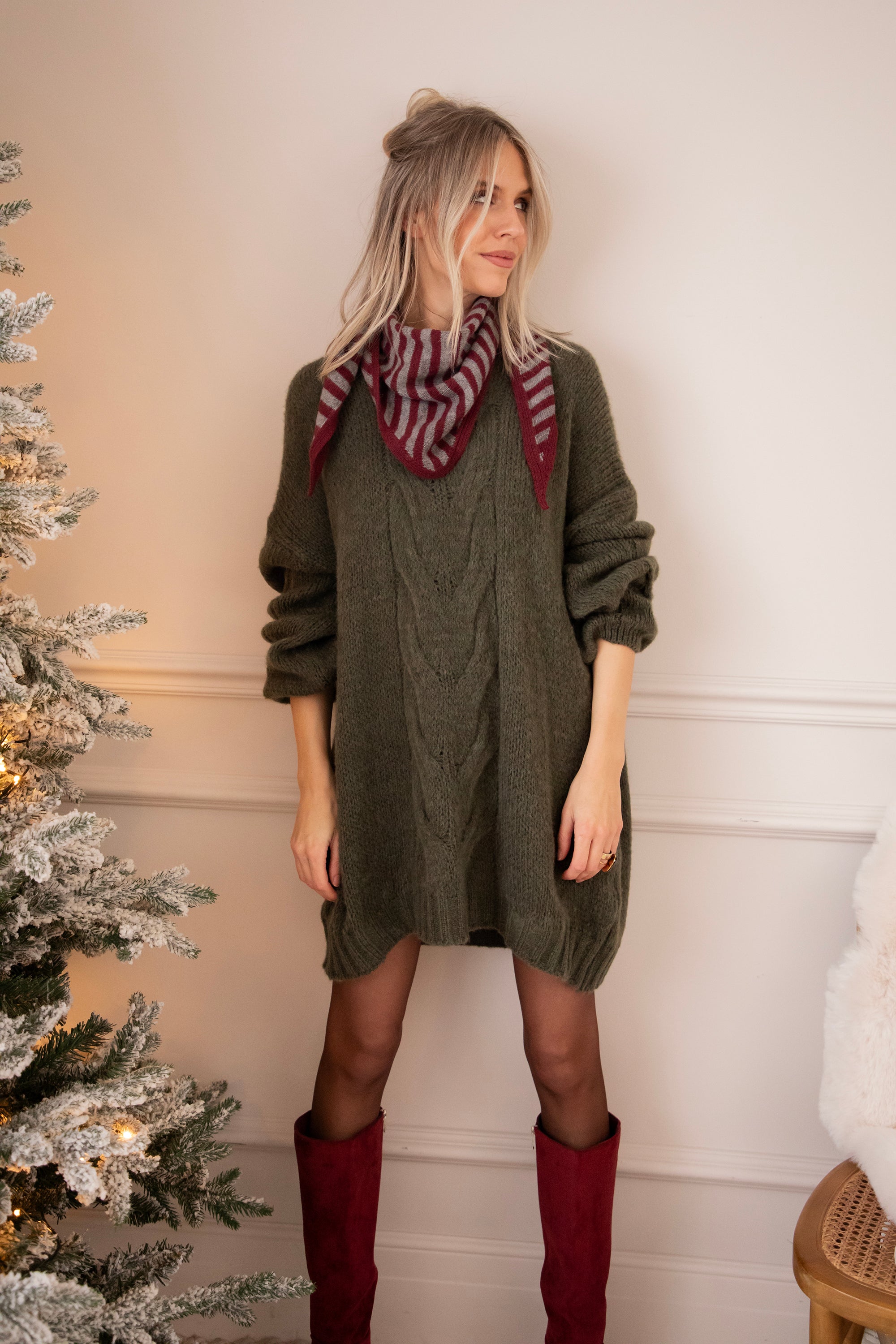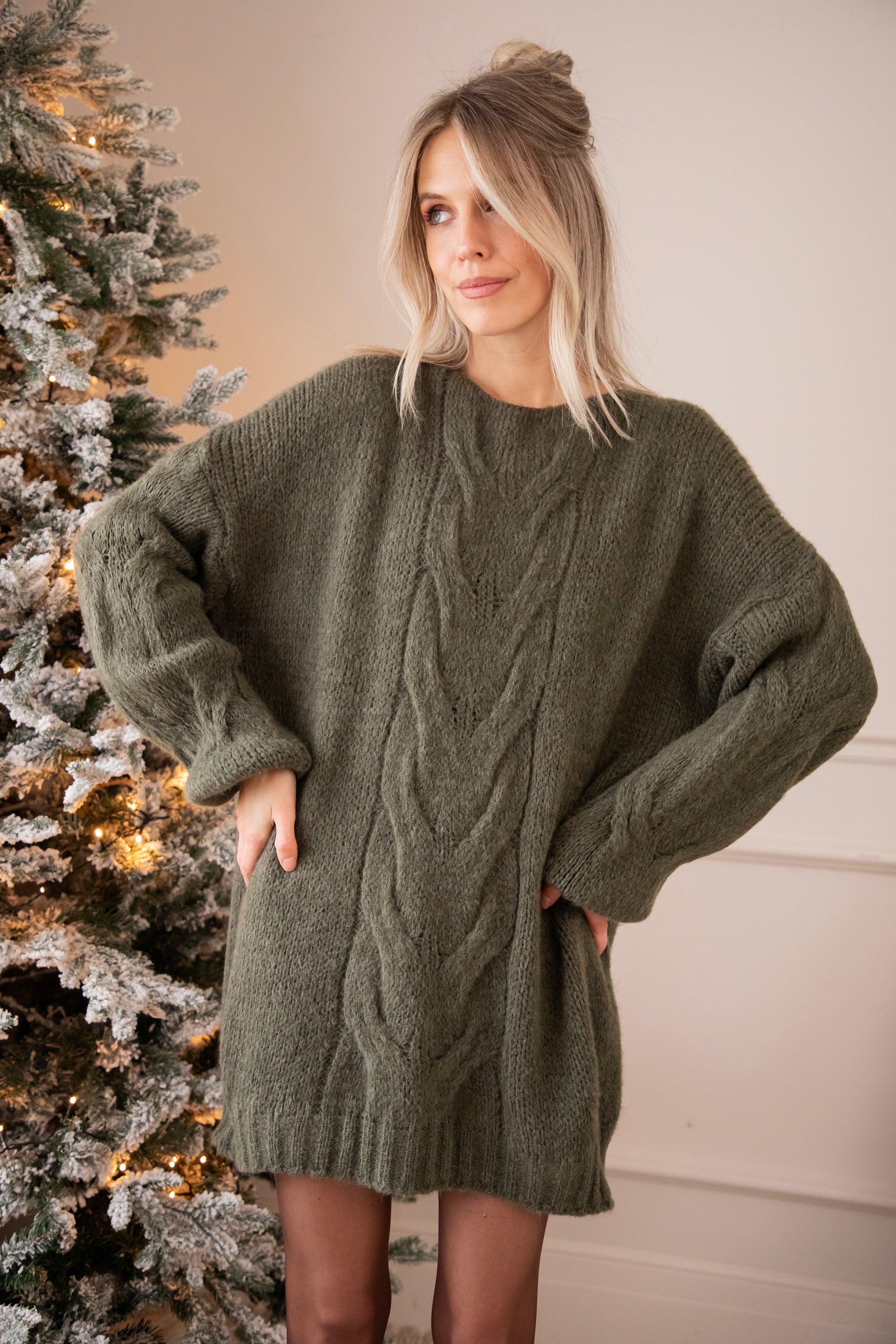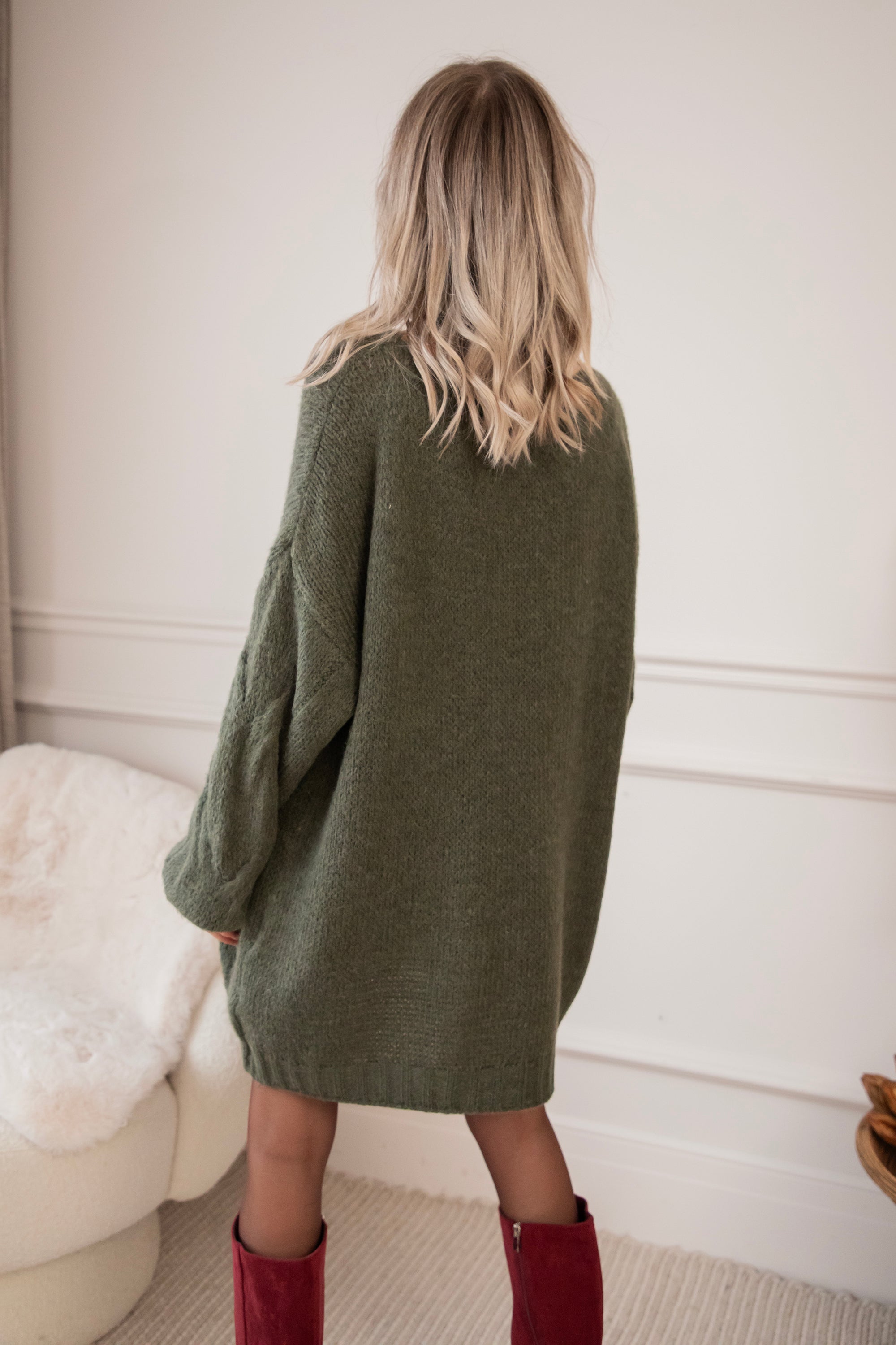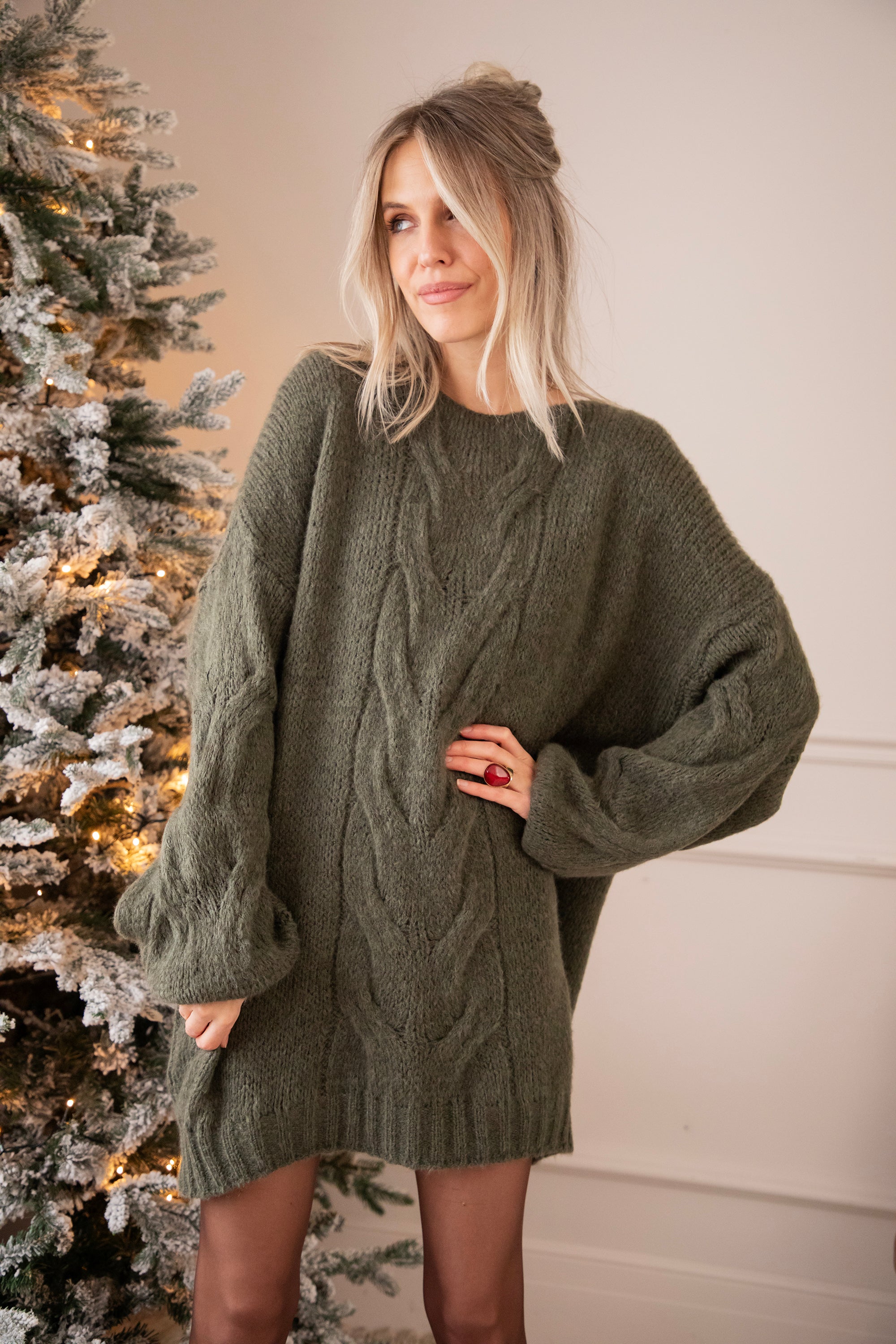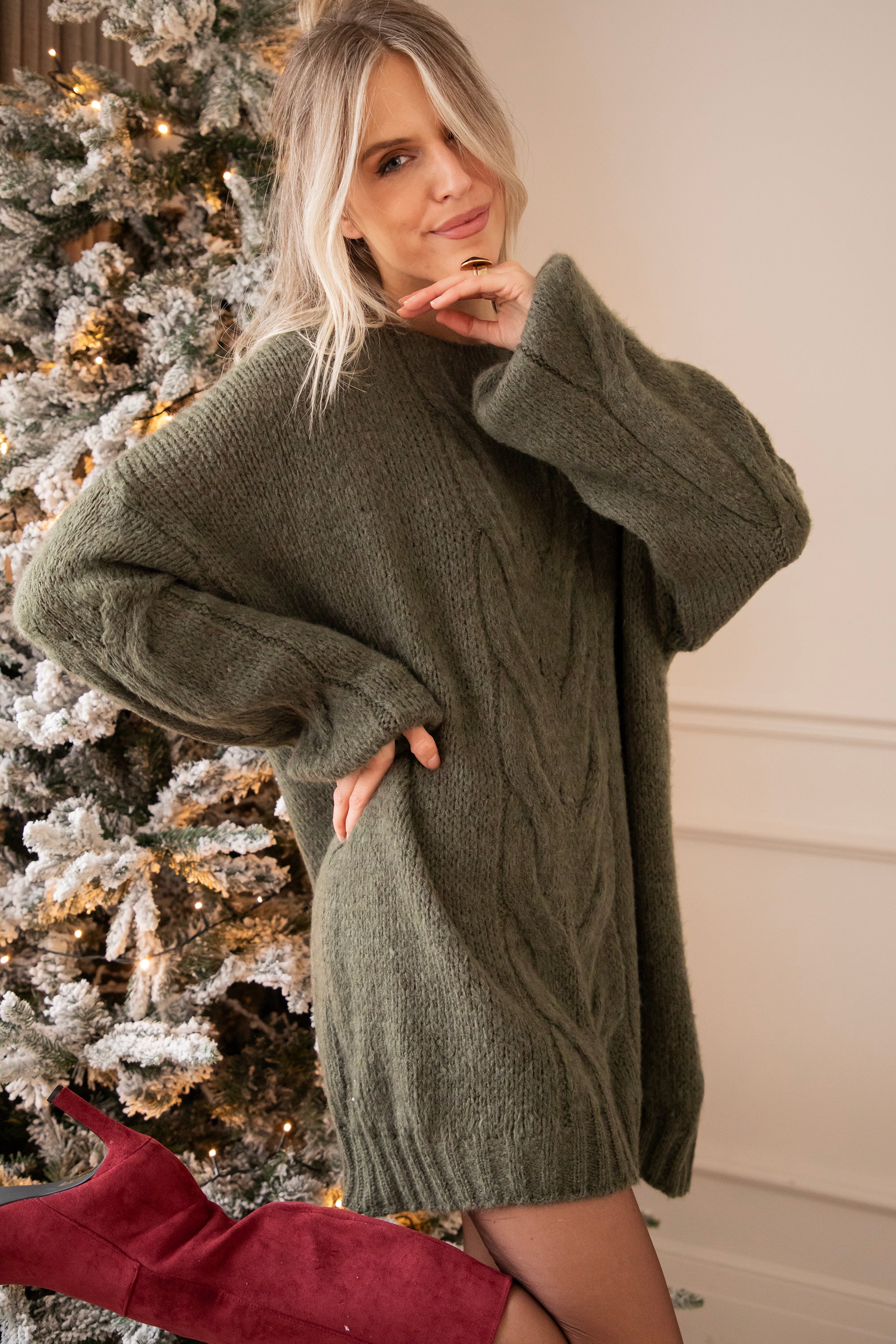 Oooo meisjes, de Coco Cable is weer zo’n sweater dress waarvan ik denk: oké, deze gaat mijn kast in, no doubt! 😍 Deze is ietsje subtieler doordat er enkel in het midden een kabelpatroontje loopt maar daarom niet minder COZY 🥹 En laat me even zeggen: ze voelt lekker dik aan, echt zo’n warme winterknuffel. Heerijk! ❄️