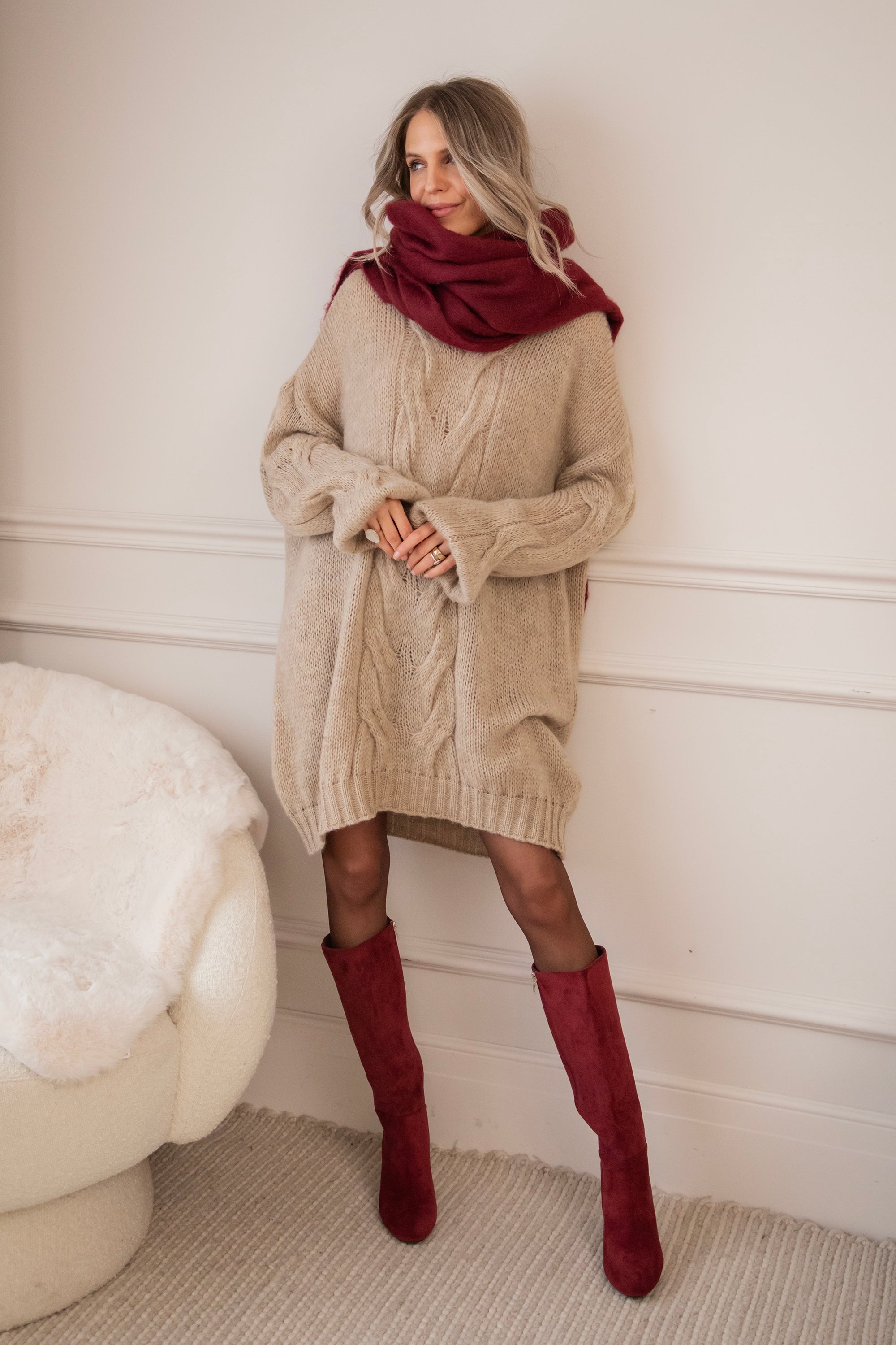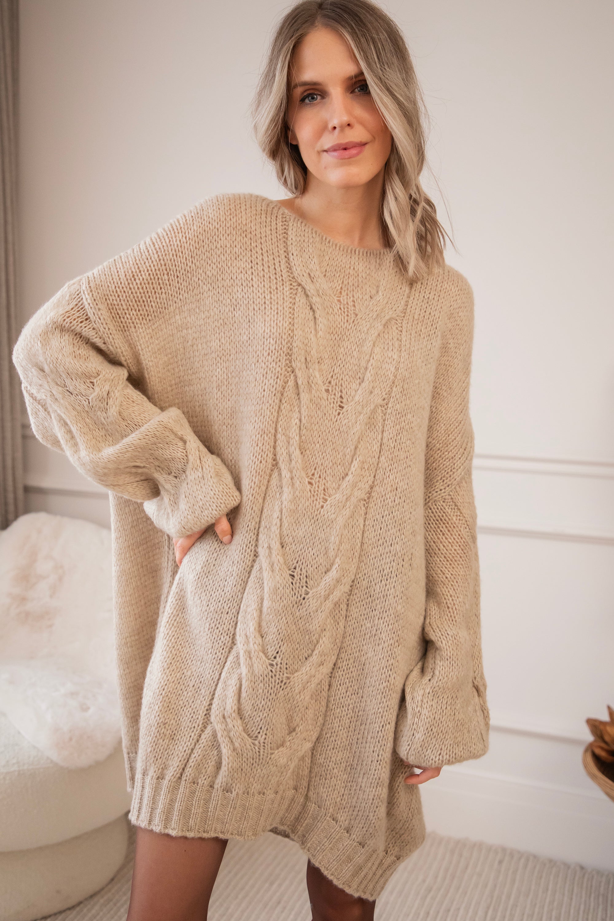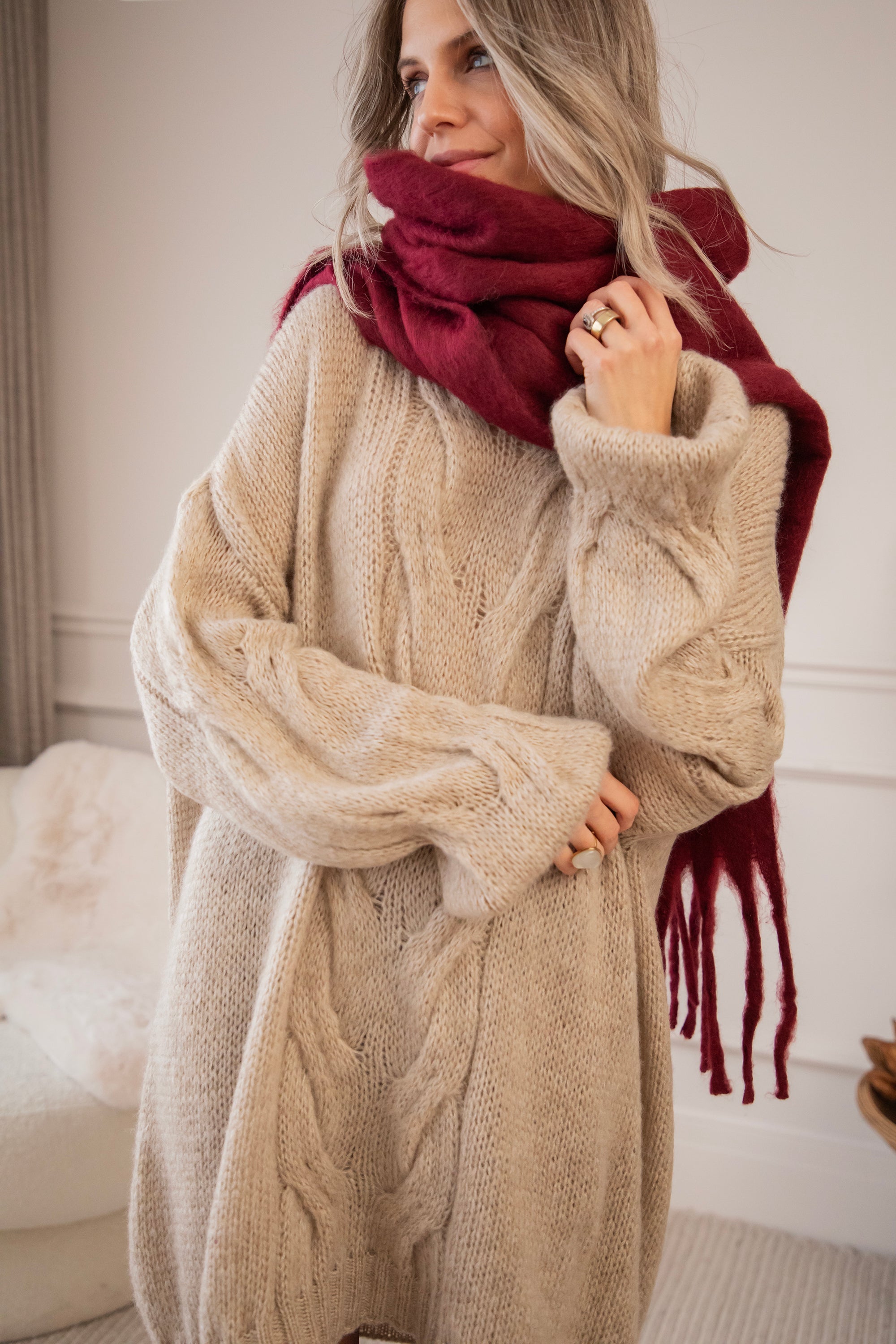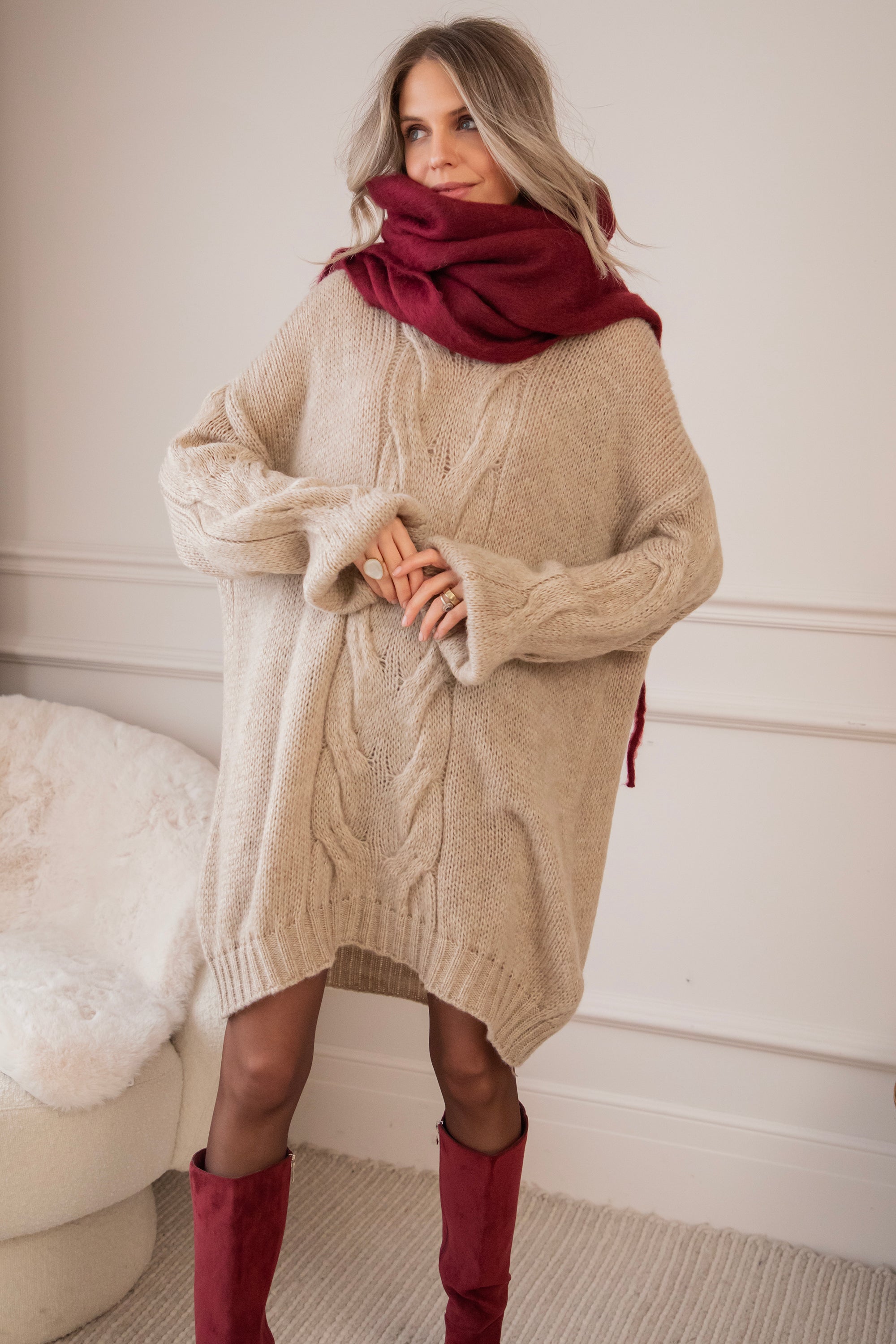 Oooo meisjes, de Coco Cable is weer zo’n sweater dress waarvan ik denk: oké, deze gaat mijn kast in, no doubt! 😍 Deze is ietsje subtieler doordat er enkel in het midden een kabelpatroontje loopt maar daarom niet minder COZY 🥹 En laat me even zeggen: ze voelt lekker dik aan, echt zo’n warme winterknuffel. Heerijk! ❄️