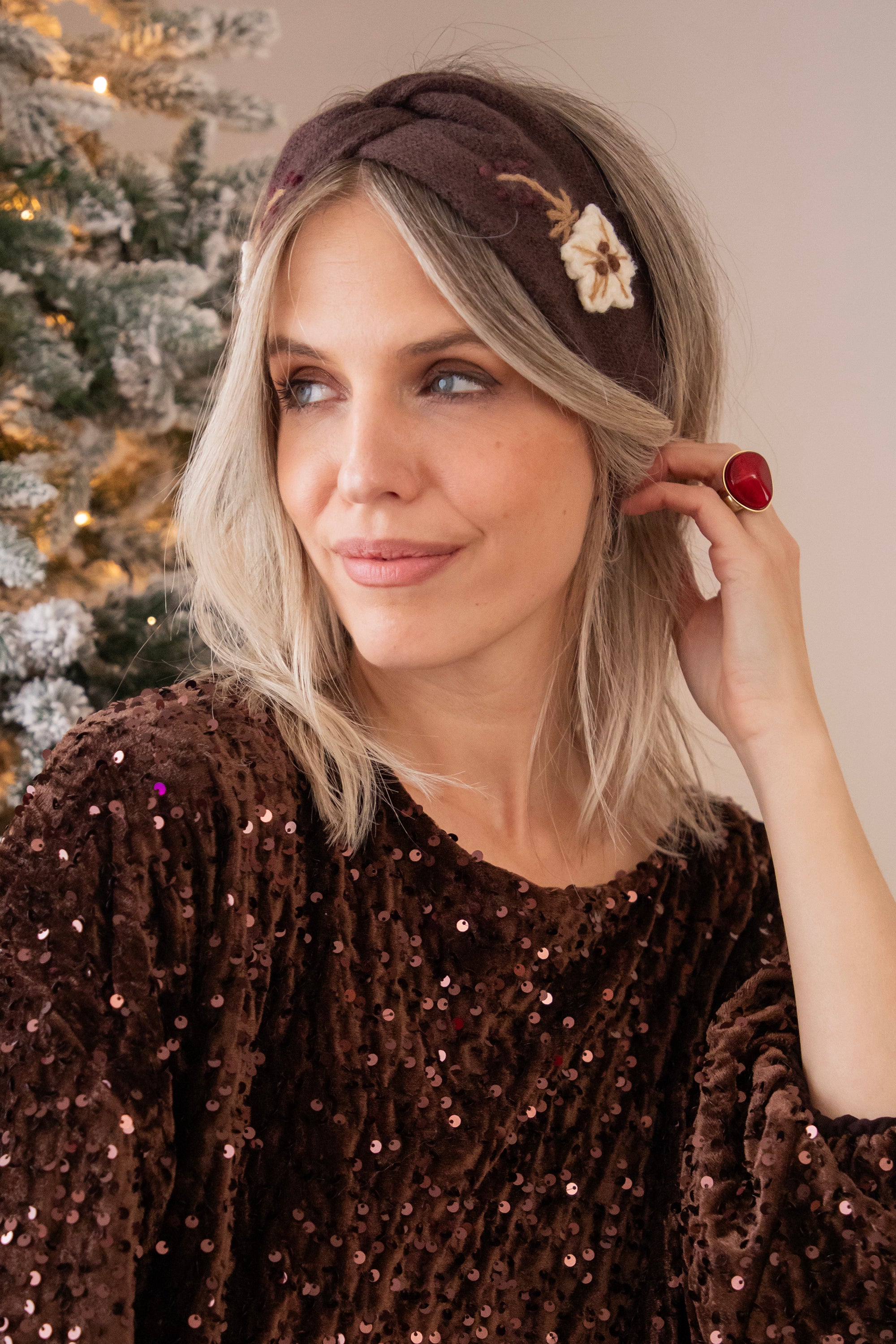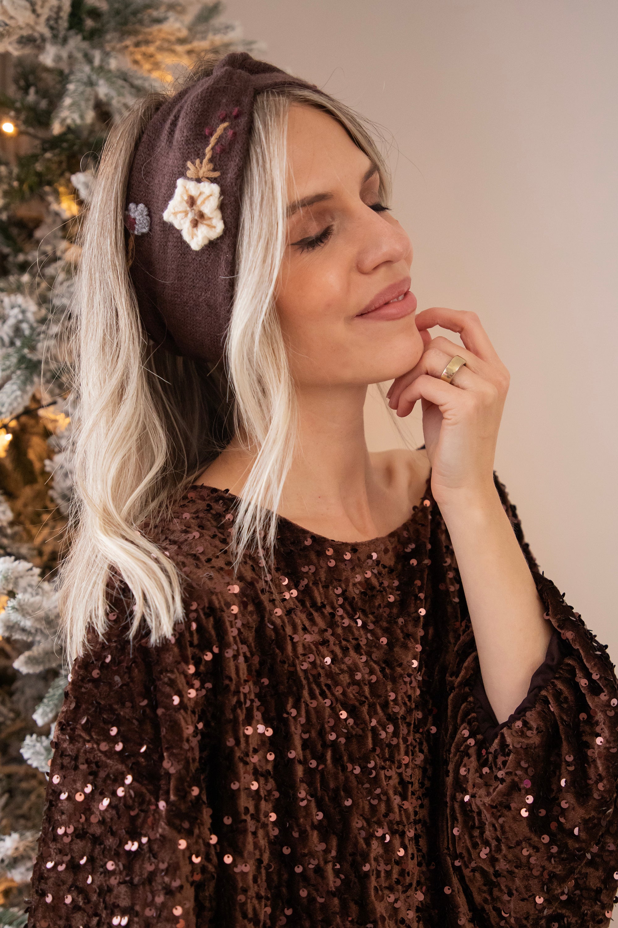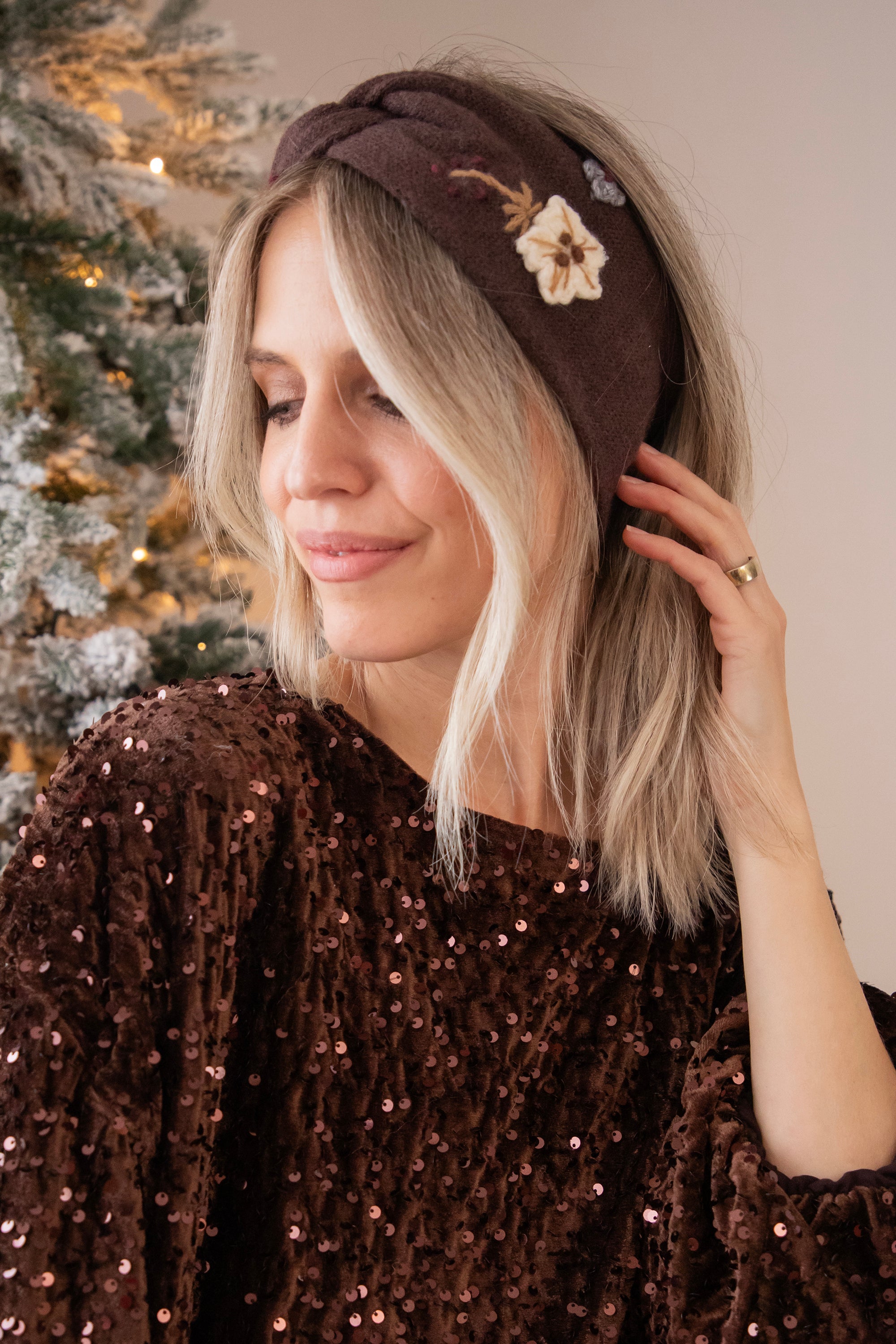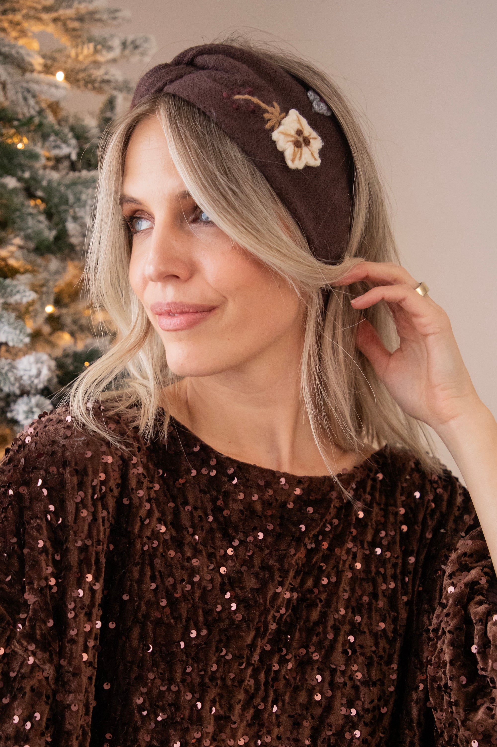 Ooooh girls, hoe schattig is deze gebreide haarband?! 🥹 Ik ben er echt helemaal verliefd op! Die kleine gebreide bloemetjes… stop it, SO cute! 🌺 Ze hebben zo’n wollige, knuffelige look en de combinatie van beige, grijs en camel maakt het helemaal van die zachte, cosy wintertinten waar ik dol op ben.