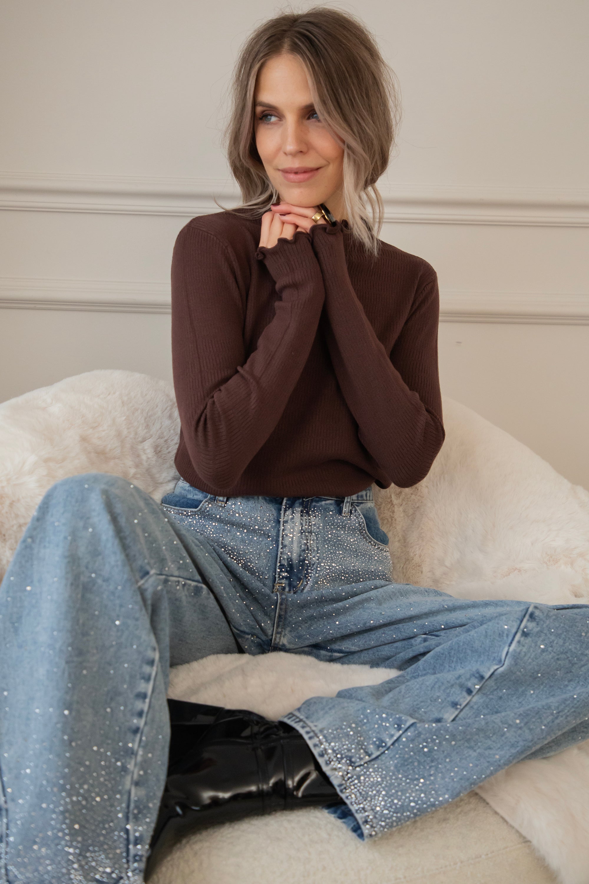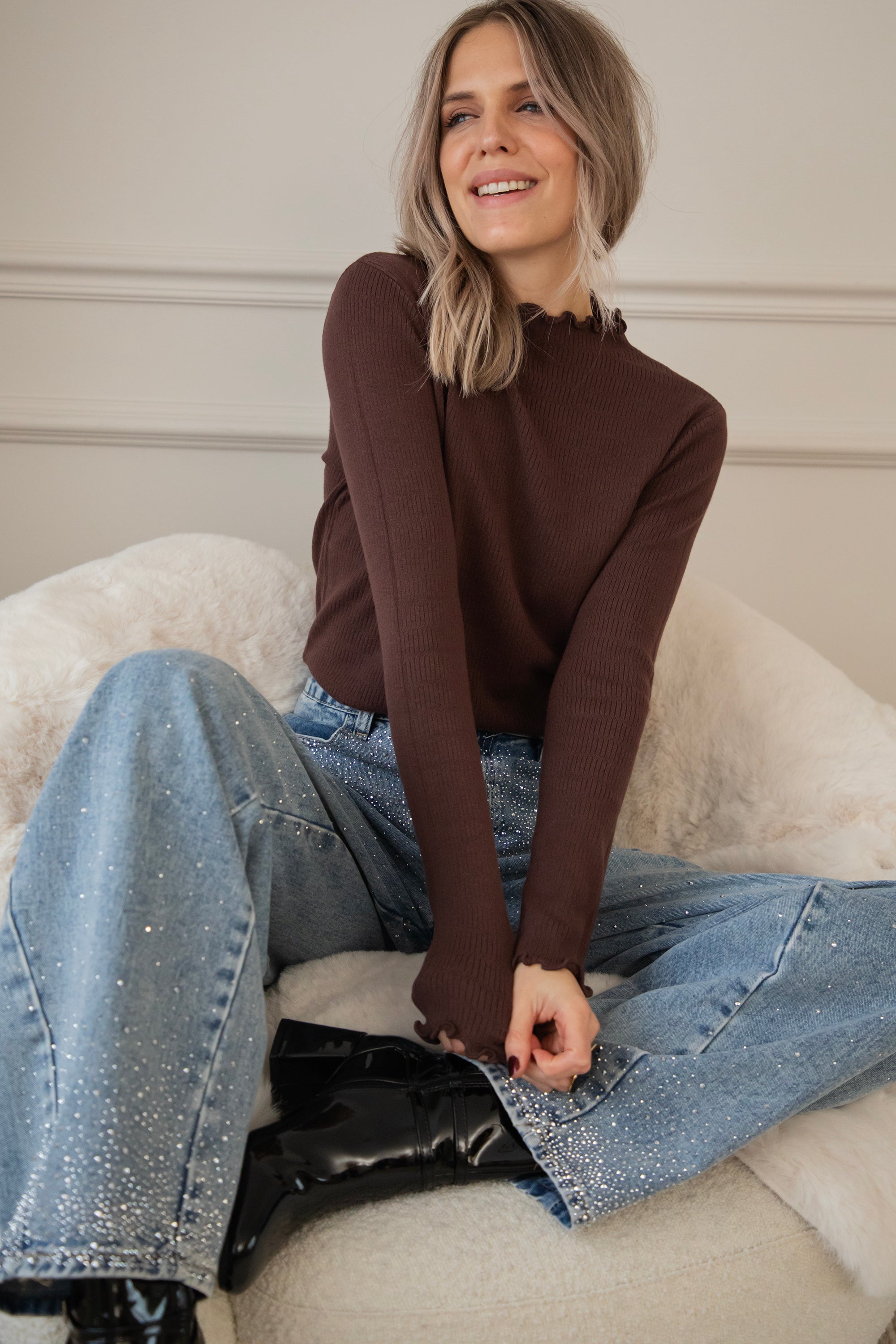 De Cute Collar Ruches zijn zo'n fijne basics dankzij de effen kleur, het hogere kraagje, de super fijne stretch en het gemak van het combineren 😍 Wat haar typeert zijn de subtiele ruches aan het kraagje en de mouwuiteindes 🤎