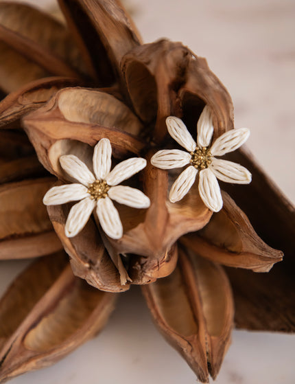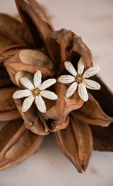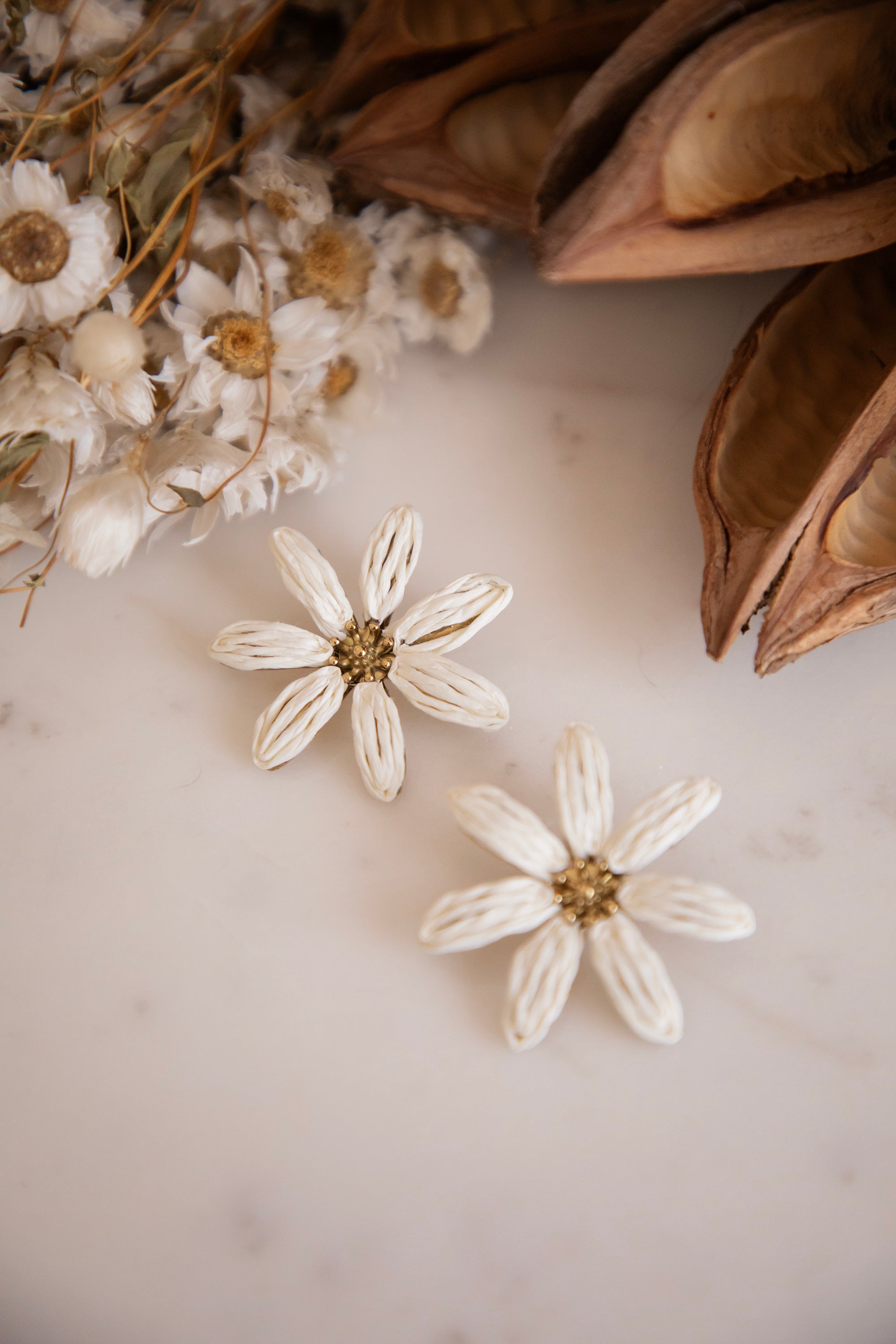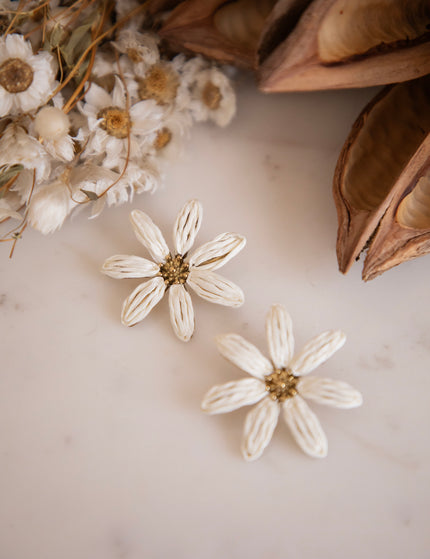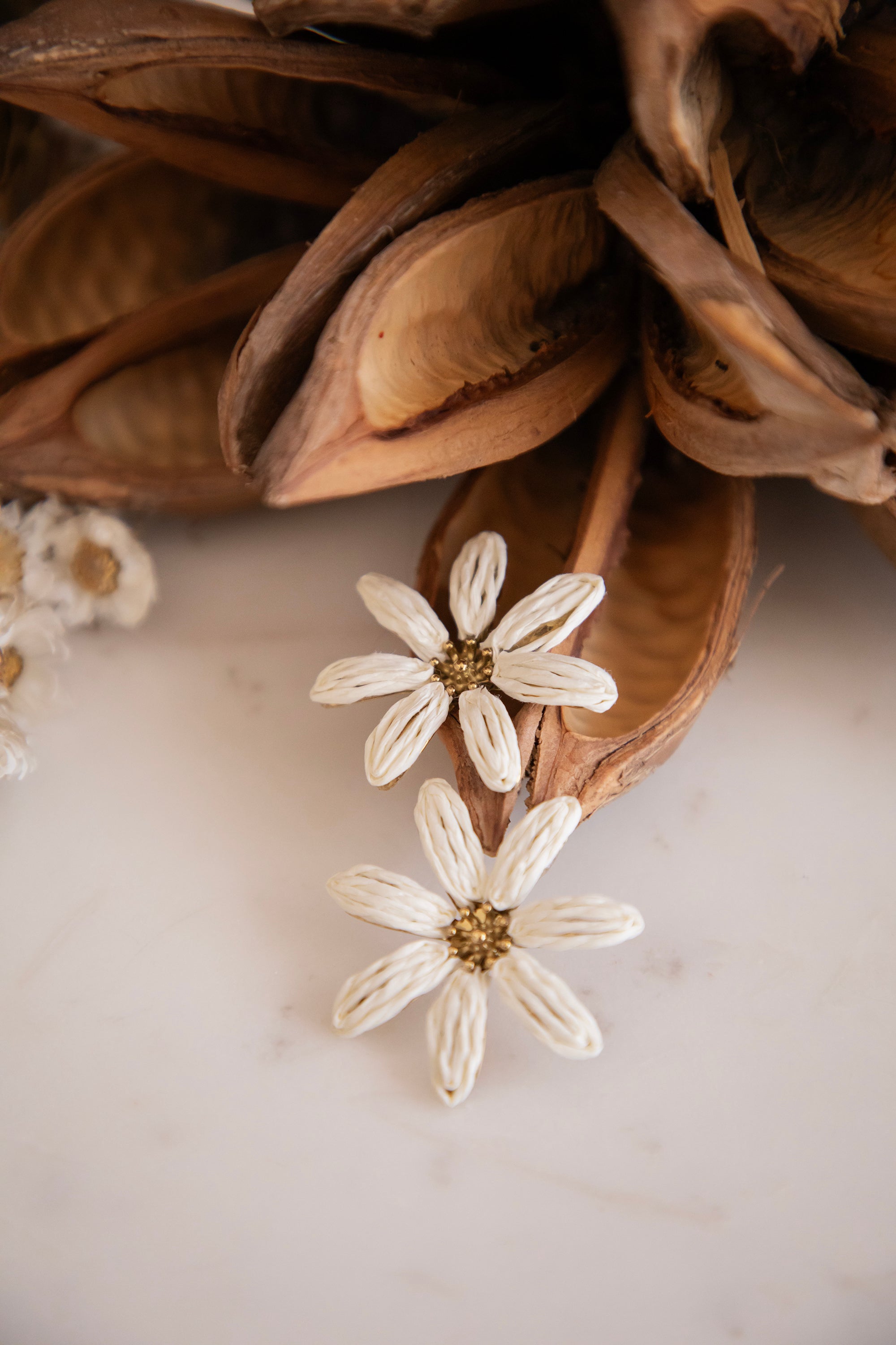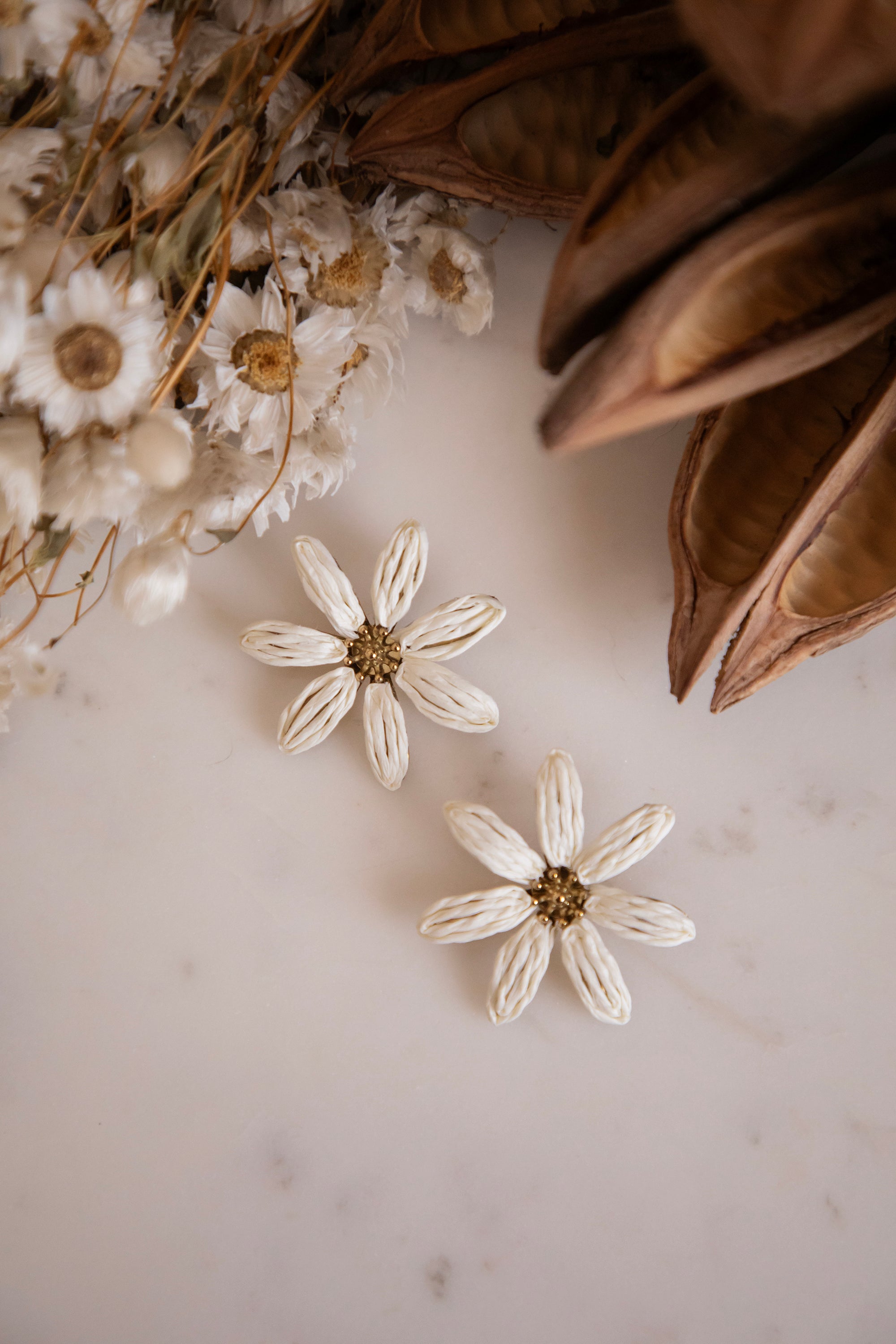 Oh wat een schattig paar oorbellen 🥹 We zien veel raffia oorbelletjes dit seizoen en ook mijn hartje hebben ze gestolen! Dit paar bedekt mooi je oor met haar rotan blaadjes en gouden details in het midden 🌼 Super schattig en zonnig! De blaadjes zijn achteraan verstevigd met goud metaal voor een mooie stevige vorm. Zo blijven ze perfect op hun plaats zitten!