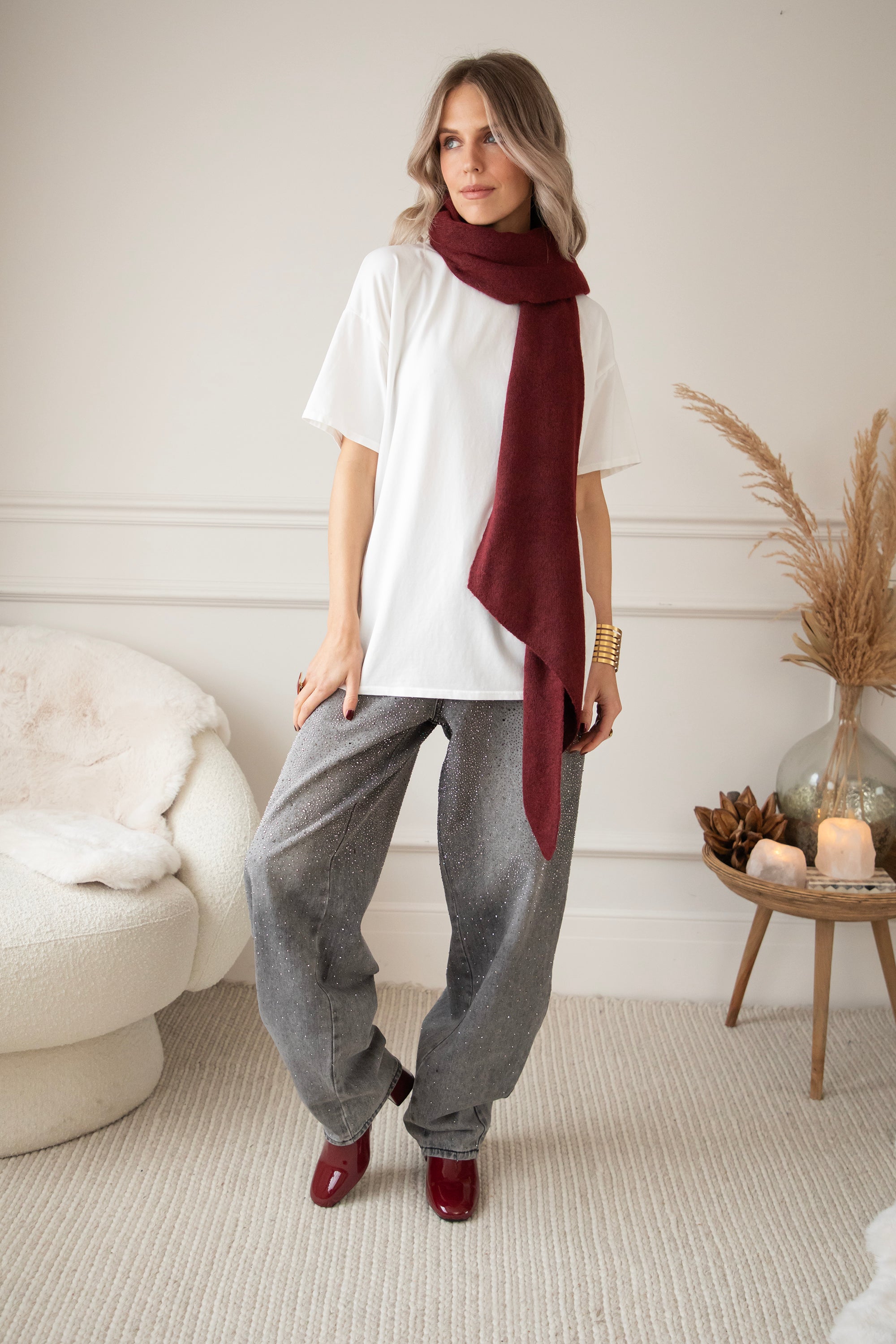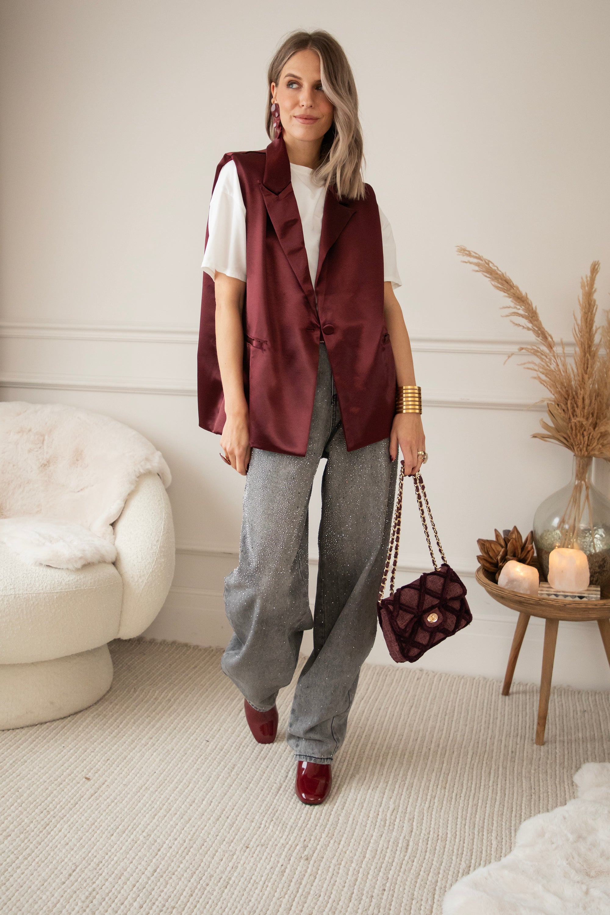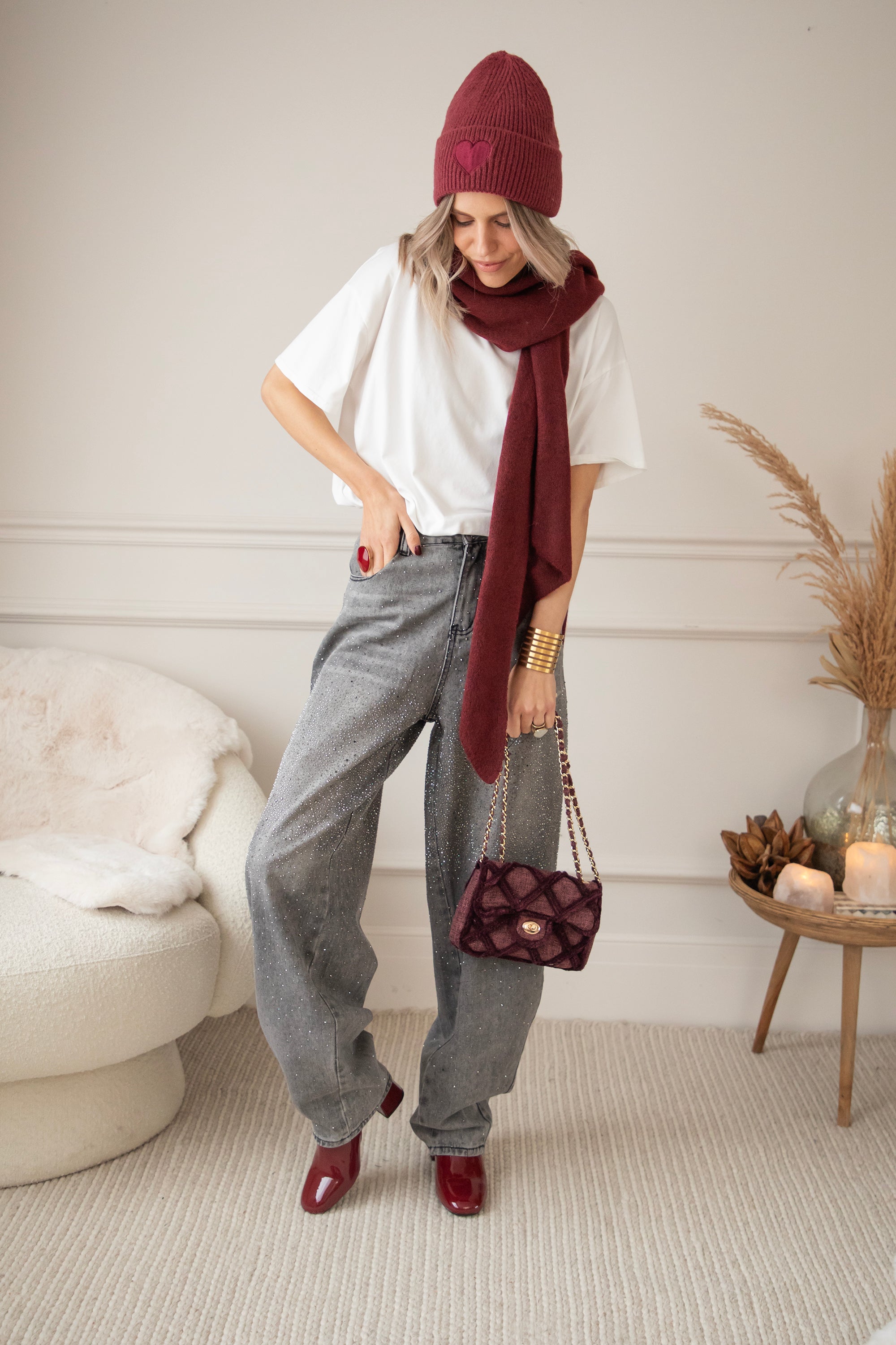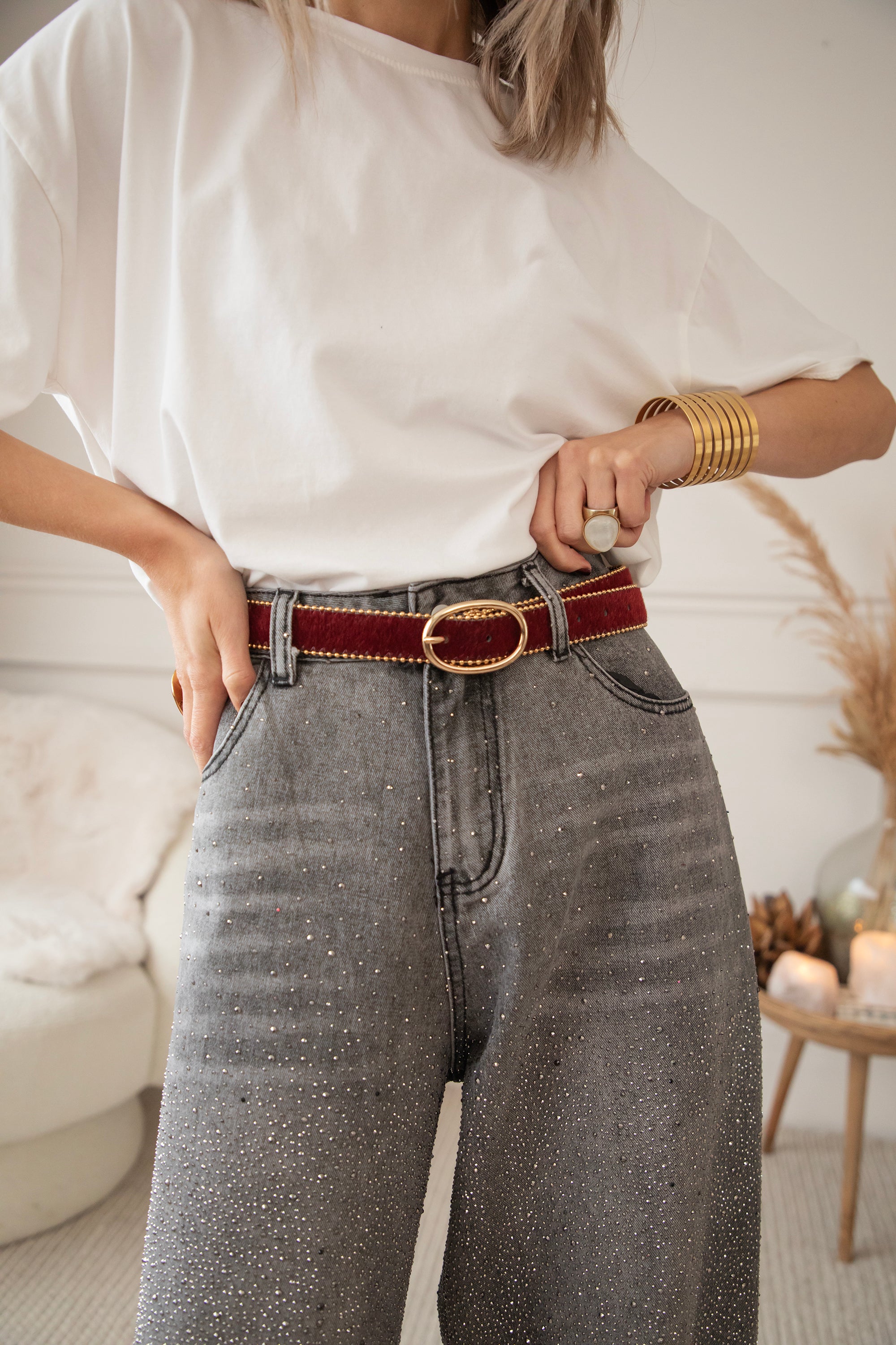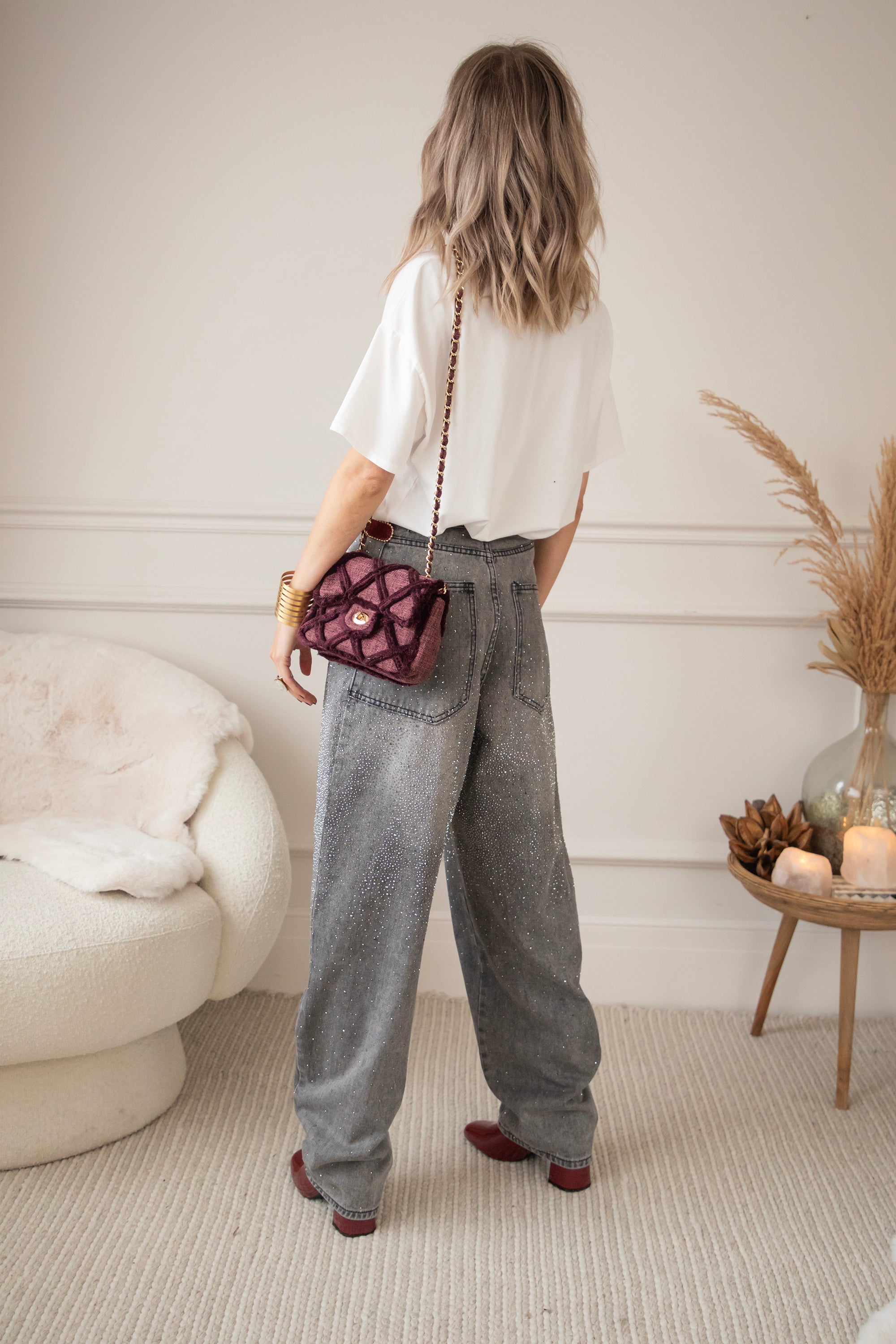 Ohhh, deze jeans is echt een feestje om te dragen! 😍 De Dazzling Denim Jeans is een barrel jeans met een hoge taille en kleine sprankelende diamantjes op de pijpen, zowel aan de voorkant als de achterkant. A little bit of sparkling magic! ✨