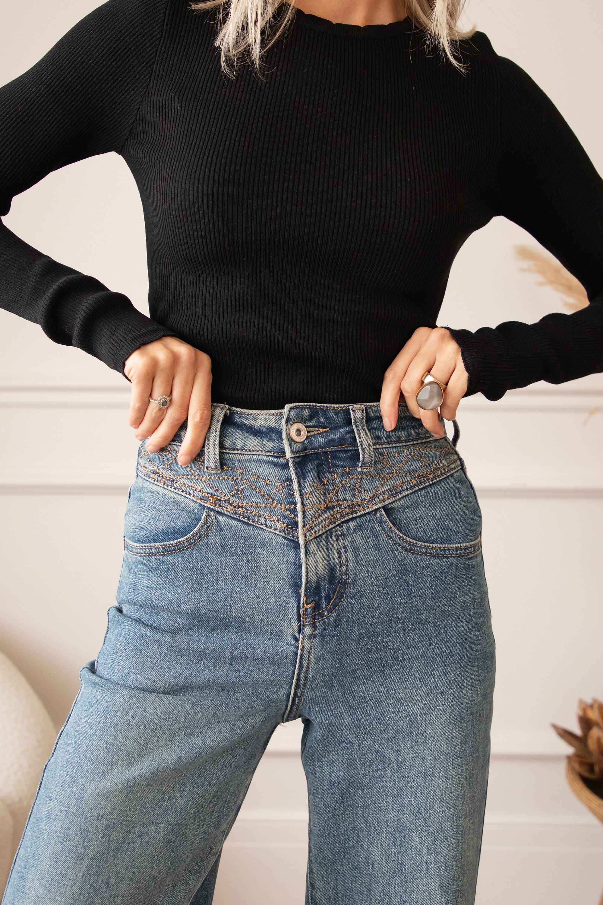 Denim Detaille zal je nog herkennen van een vorig seizoen! Nu komt ze in een iets coolere blauwe tint 👖 Wat haar typeert is de prachtige geborduurde boho taille in een beige tint 🤍 Een prachtig de-taille hihi