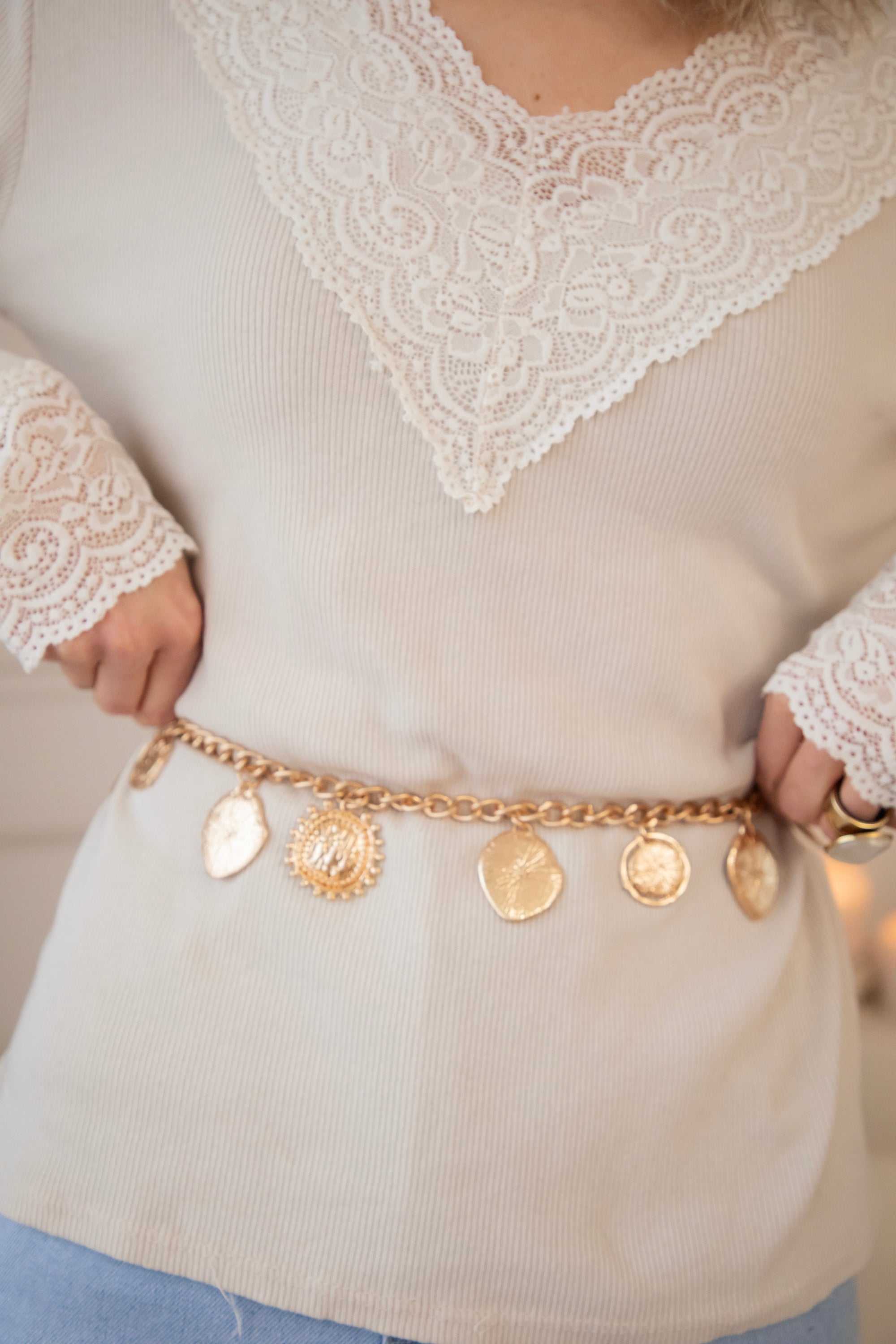 De Earthy Elements riem is zo’n accessoire dat je outfit meteen dat tikkeltje extra geeft. Classy, maar met karakter ✨ Chain belts blijven helemaal on trend, zeker in combinatie met zachte stuks zoals effen longsleeves met kant of een romantische embroidery blouse.