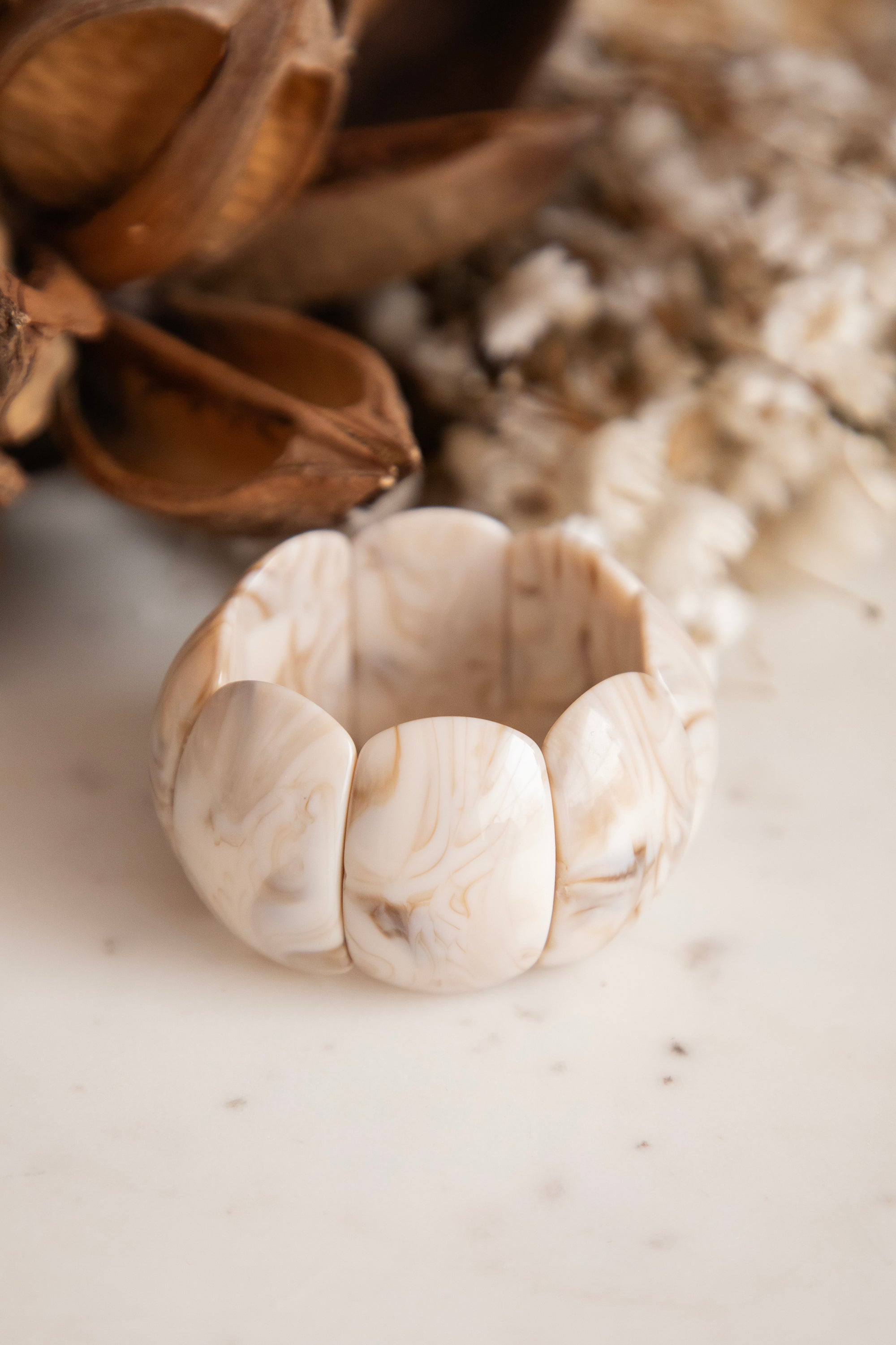 Meet Elastelle, een elastische armband met grote, opvallende schakels in een prachtige marmeren look. Ze straalt één en al bohemian charm uit en is de perfecte eyecatcher om je zomerse outfit af te maken ✨