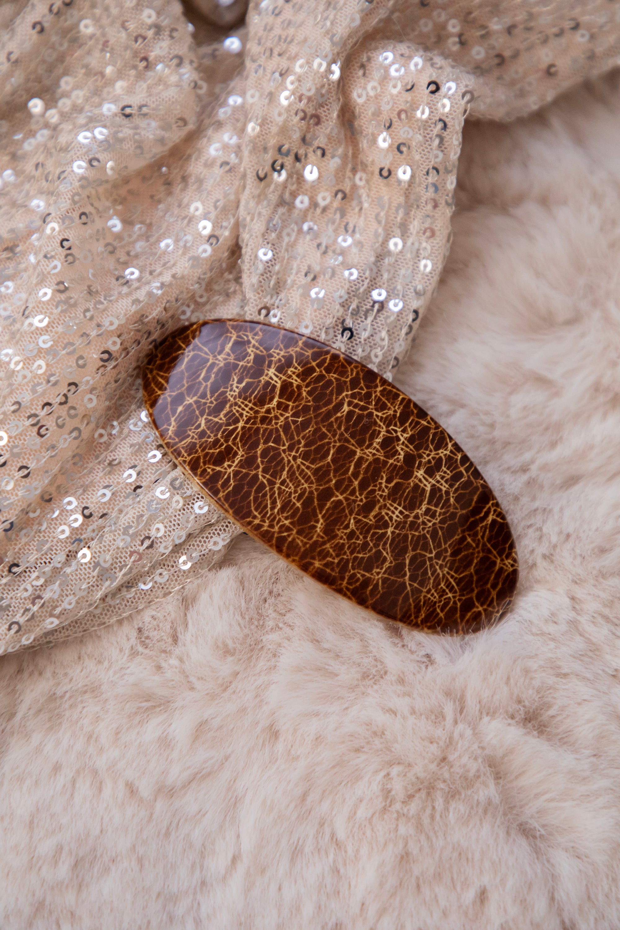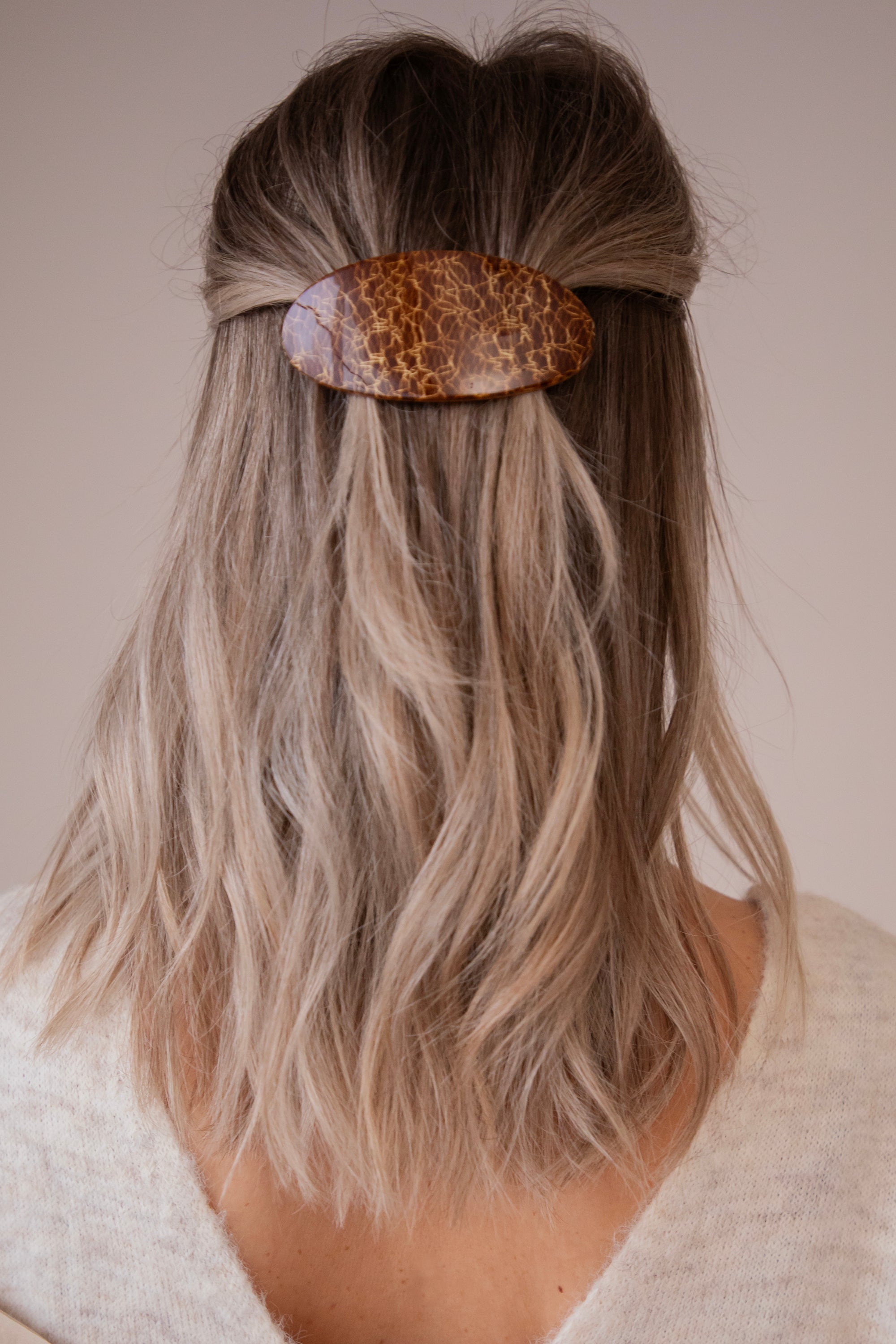Say hello to your new hair crush! 🤩 Deze brede bruine haarspeld met gouden bliksemschichten is zo’n detail dat je look meteen dat extra punch geeft. Super cool én classy tegelijk! ⚡️