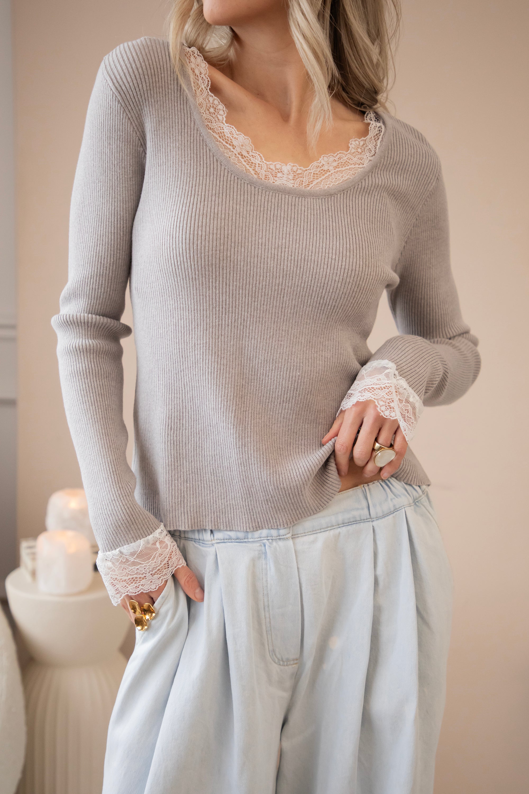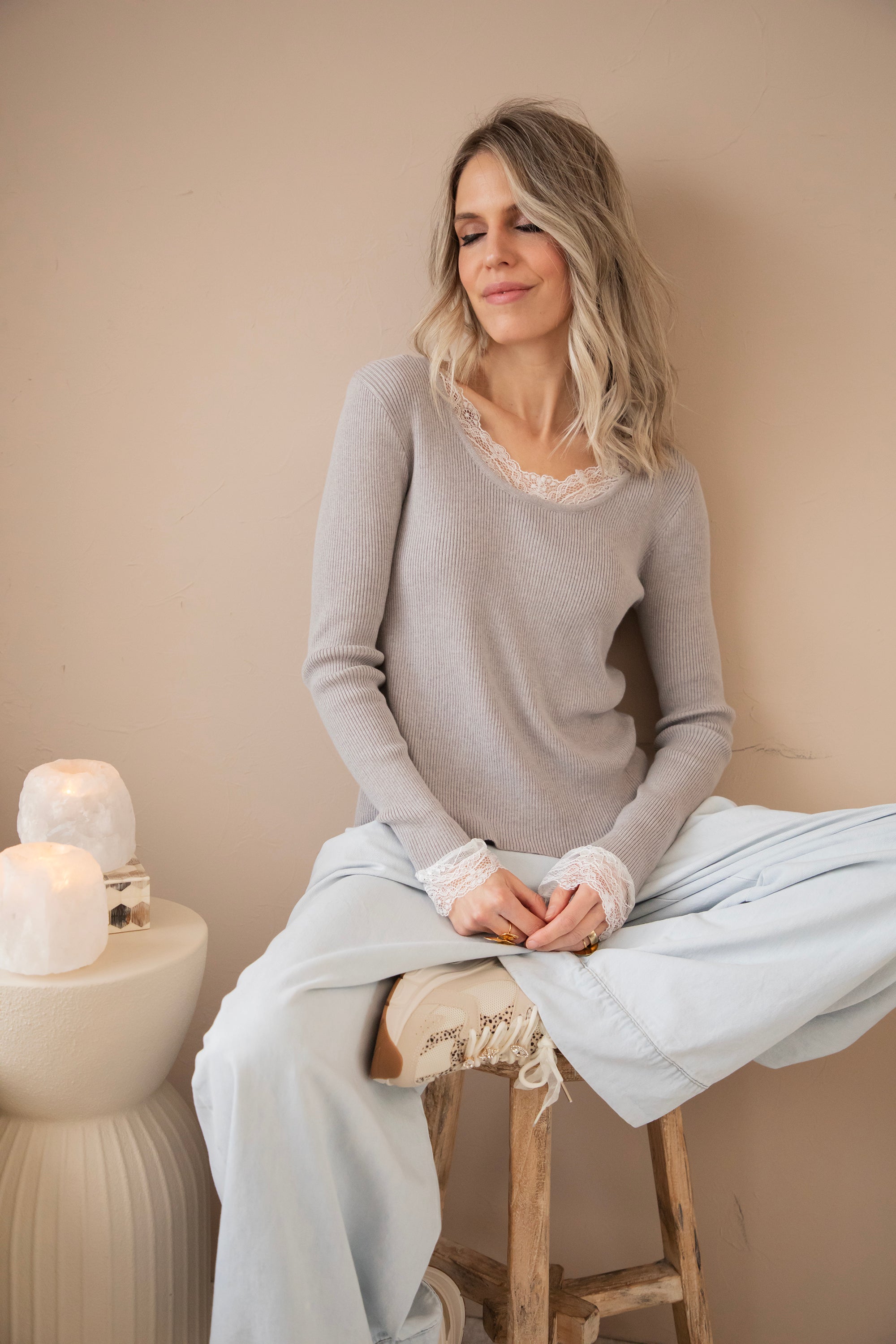 Dit is zo’n longsleeve die helemaal ellemilla ademt 😍 Een ribgebreide basic, maar met de mooiste romantische kanten accenten aan de hals en de mouwuiteindes. Subtiel, maar juist daardoor zo elegant 🎀 Leuk detail: bij dit kleurtje kleuren ze wit voor een iets opvallender contrast 🩶