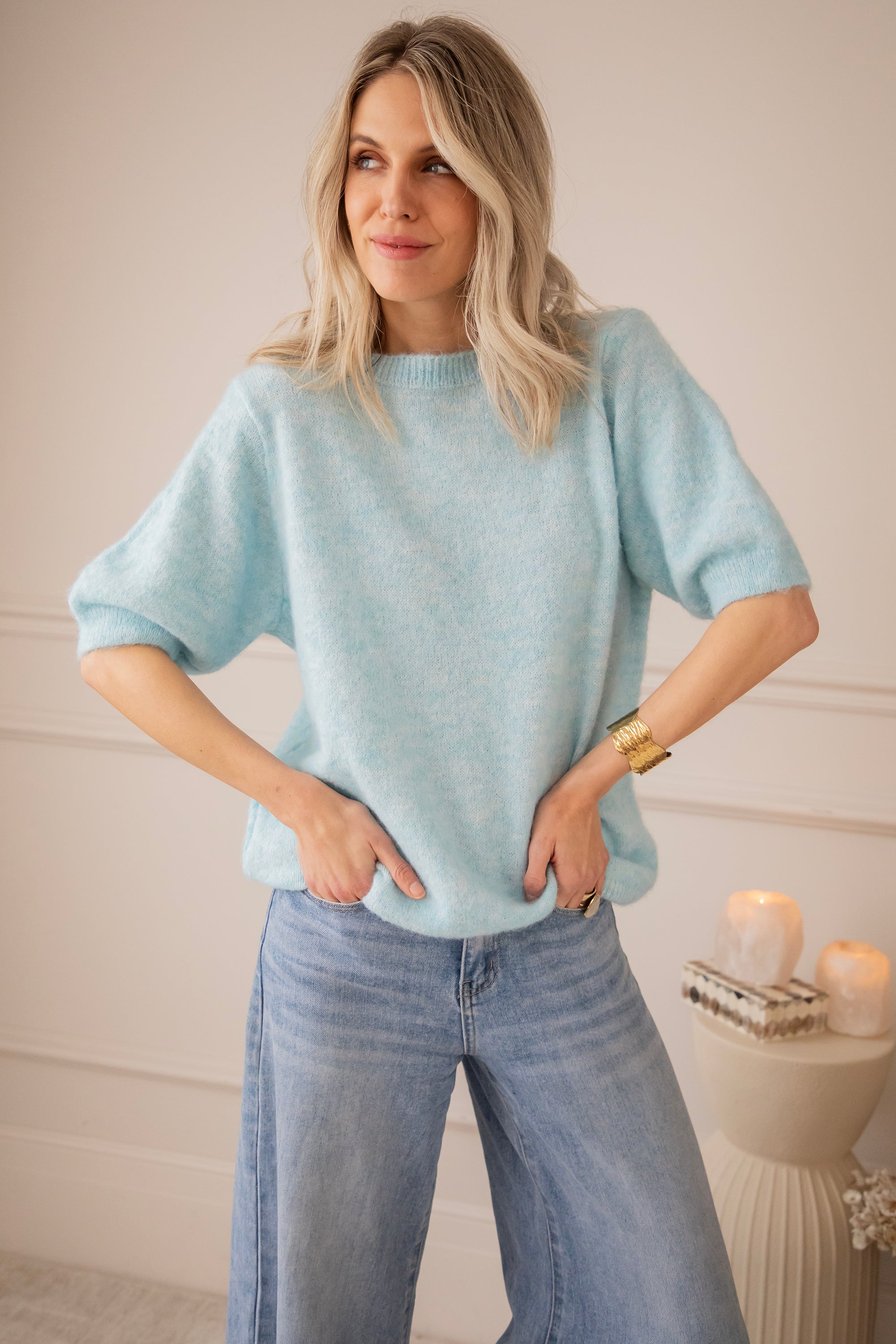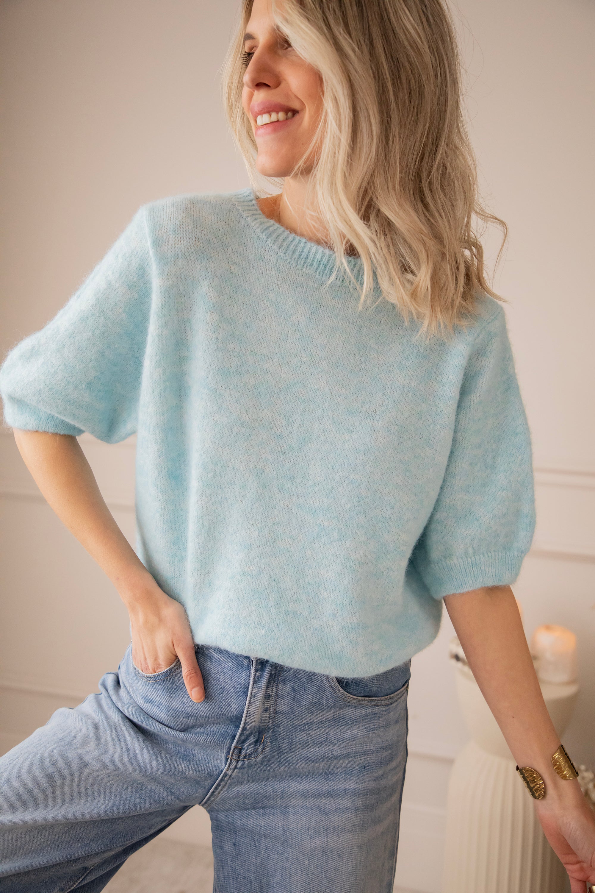Emily is een luchtig knit truitje met de schattigste korte pofmouwtjes 🌿