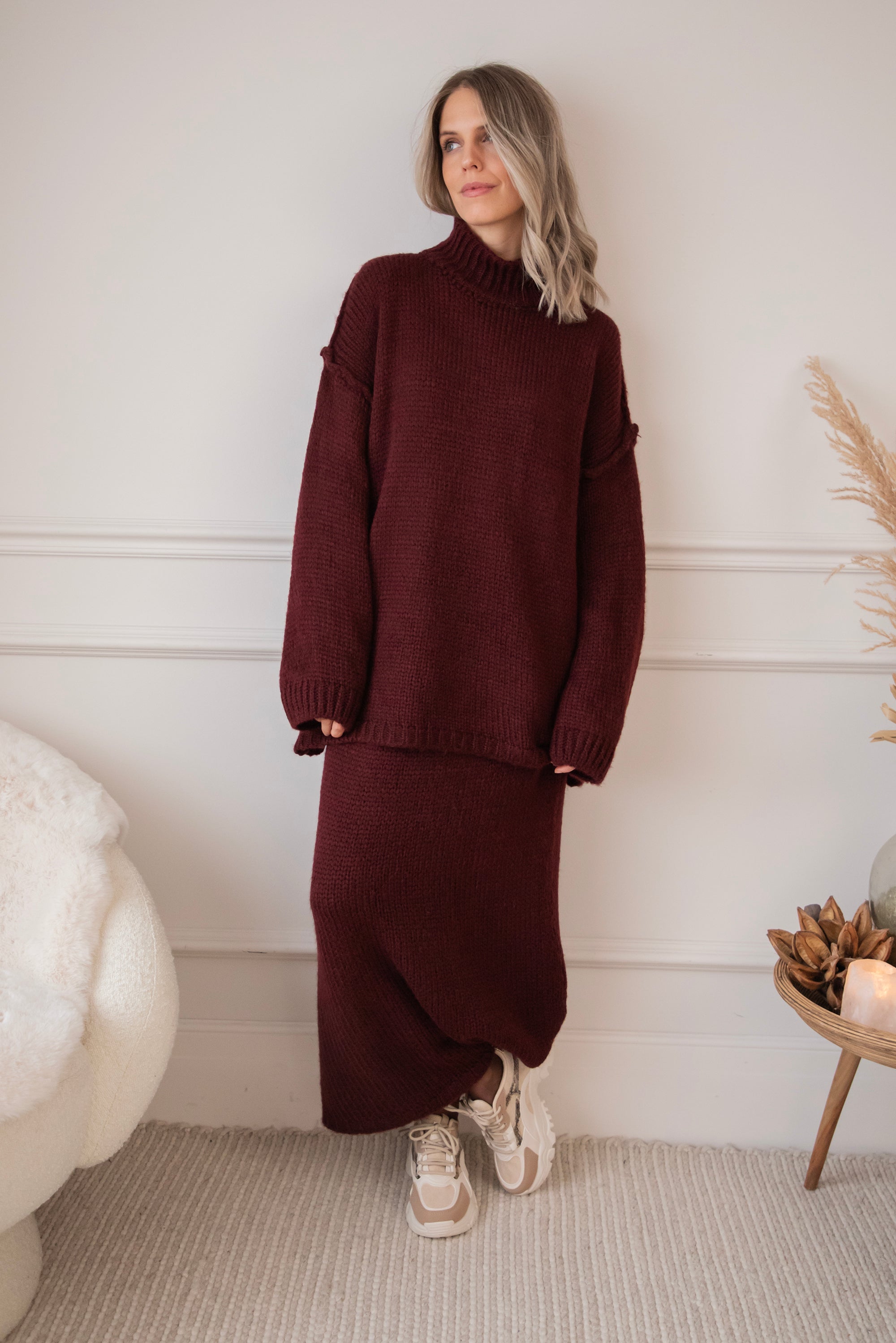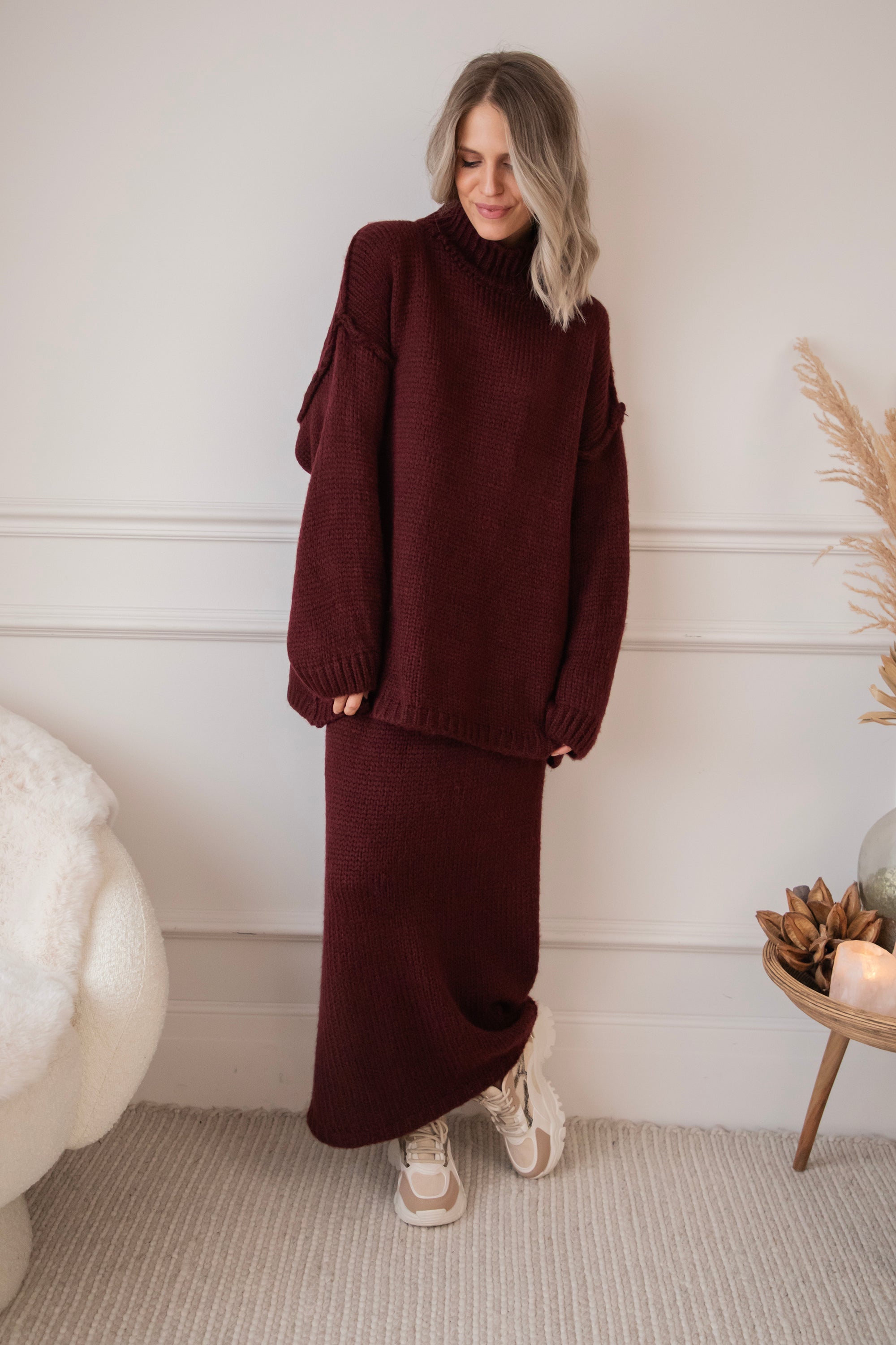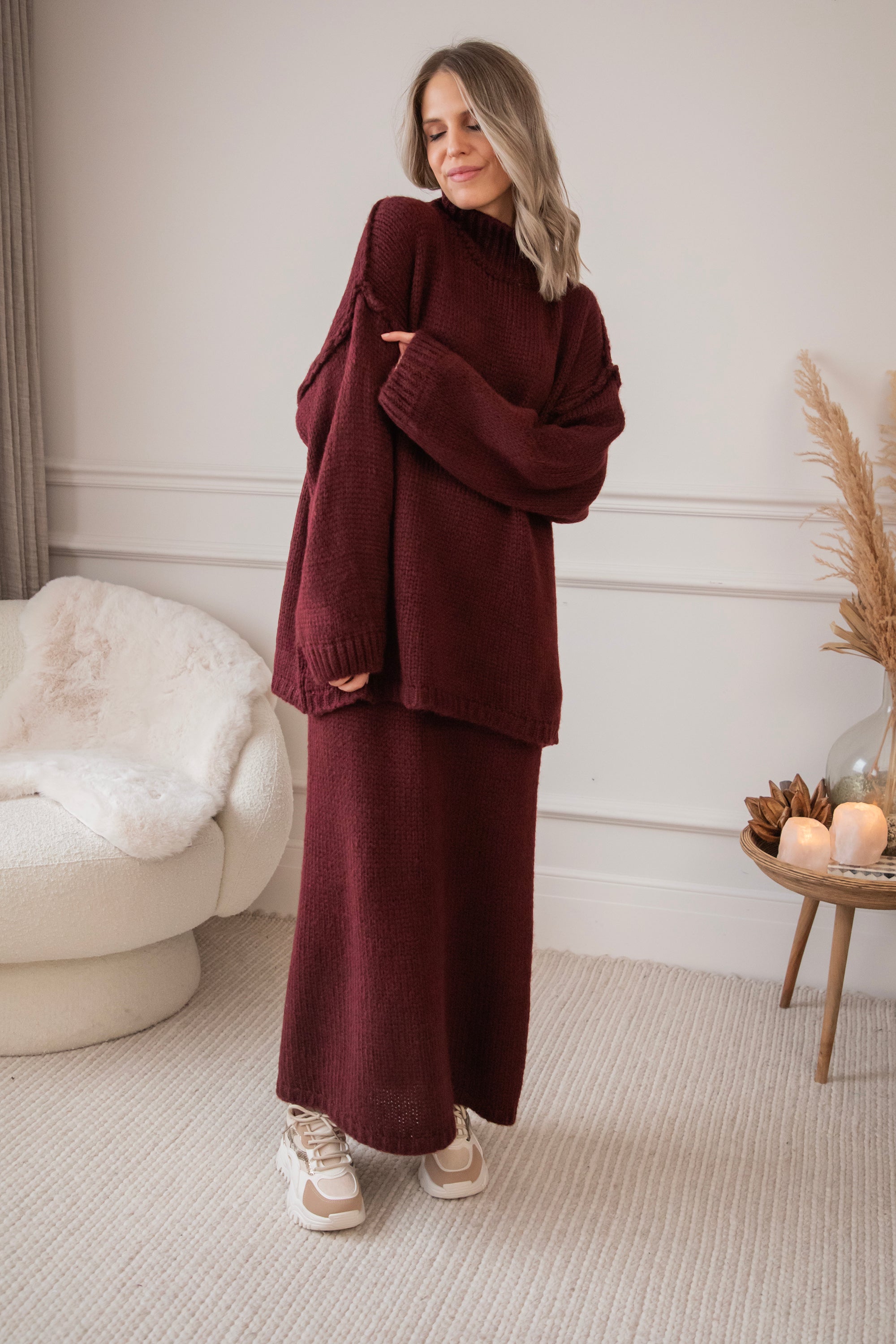 Femmy is echt één van mijn favoriete combi sets voor deze winter ❄️ Dit is 100% winterproof, dus koud weer? Geen probleem! 😍 De set bestaat uit een lange, baggy trui en een maxi rok, beide gemaakt van dat heerlijke zachte acryl breiwerk 🧶 Het voelt zo comfy en warm, echt een set die je omarmt op de koudste dagen.