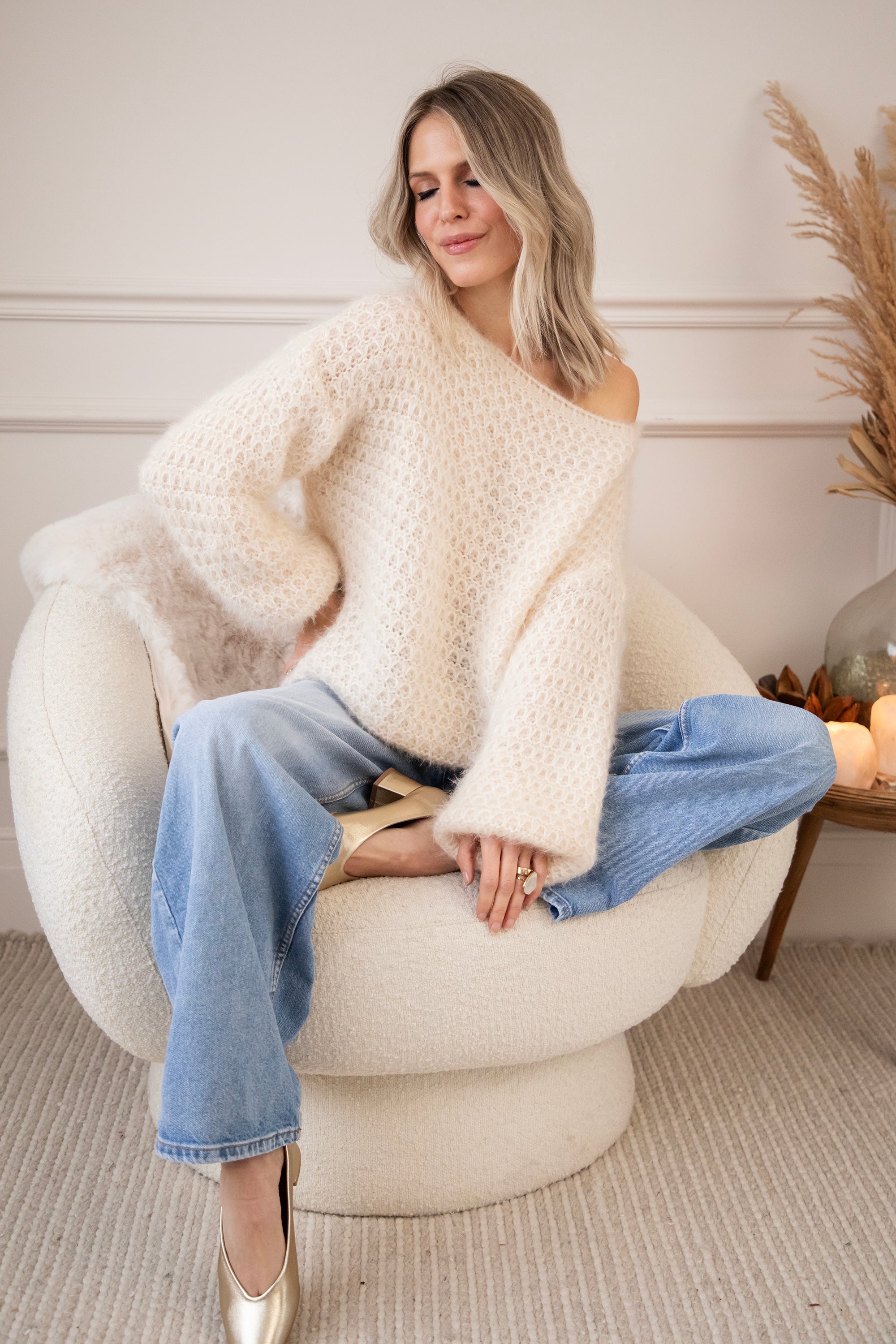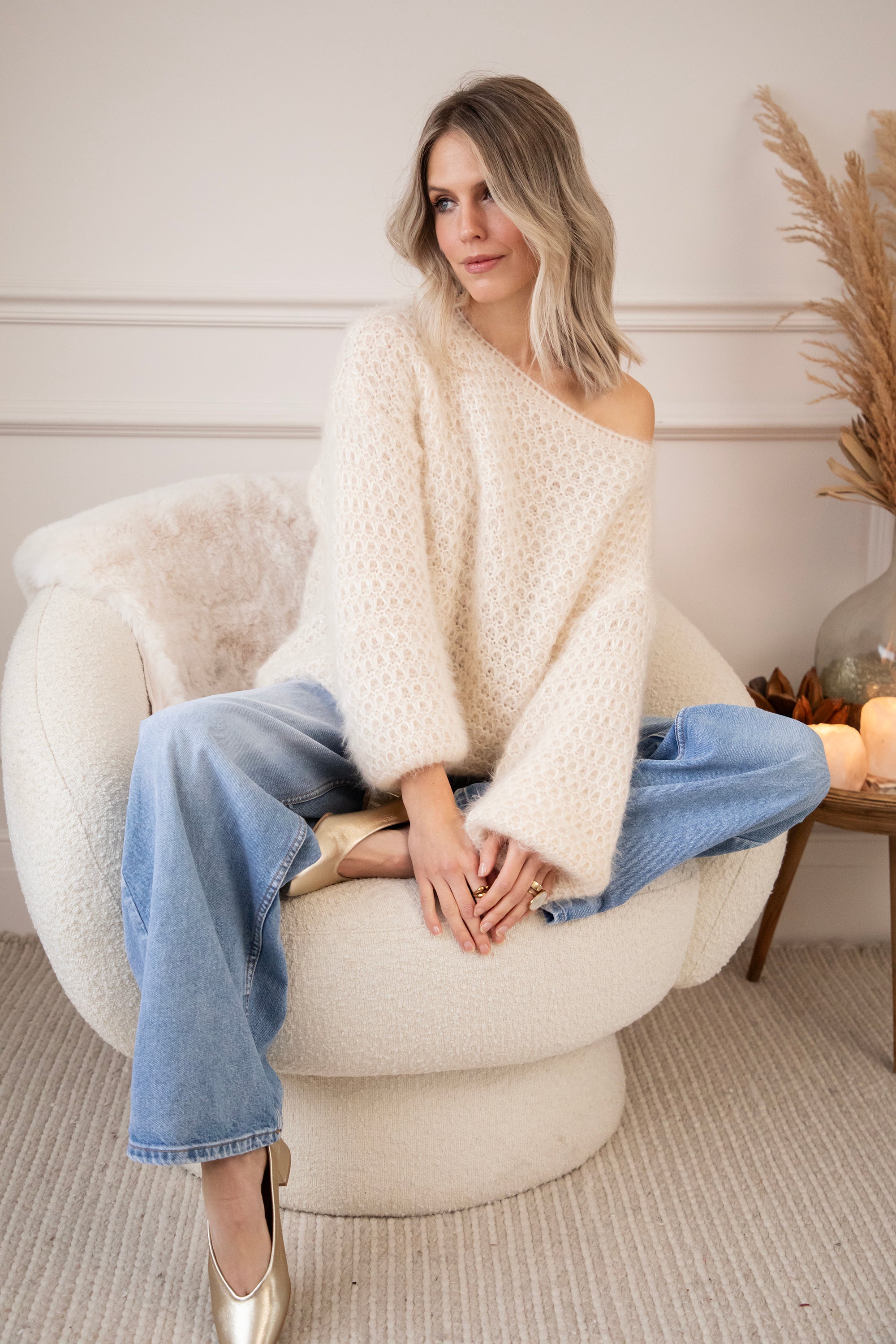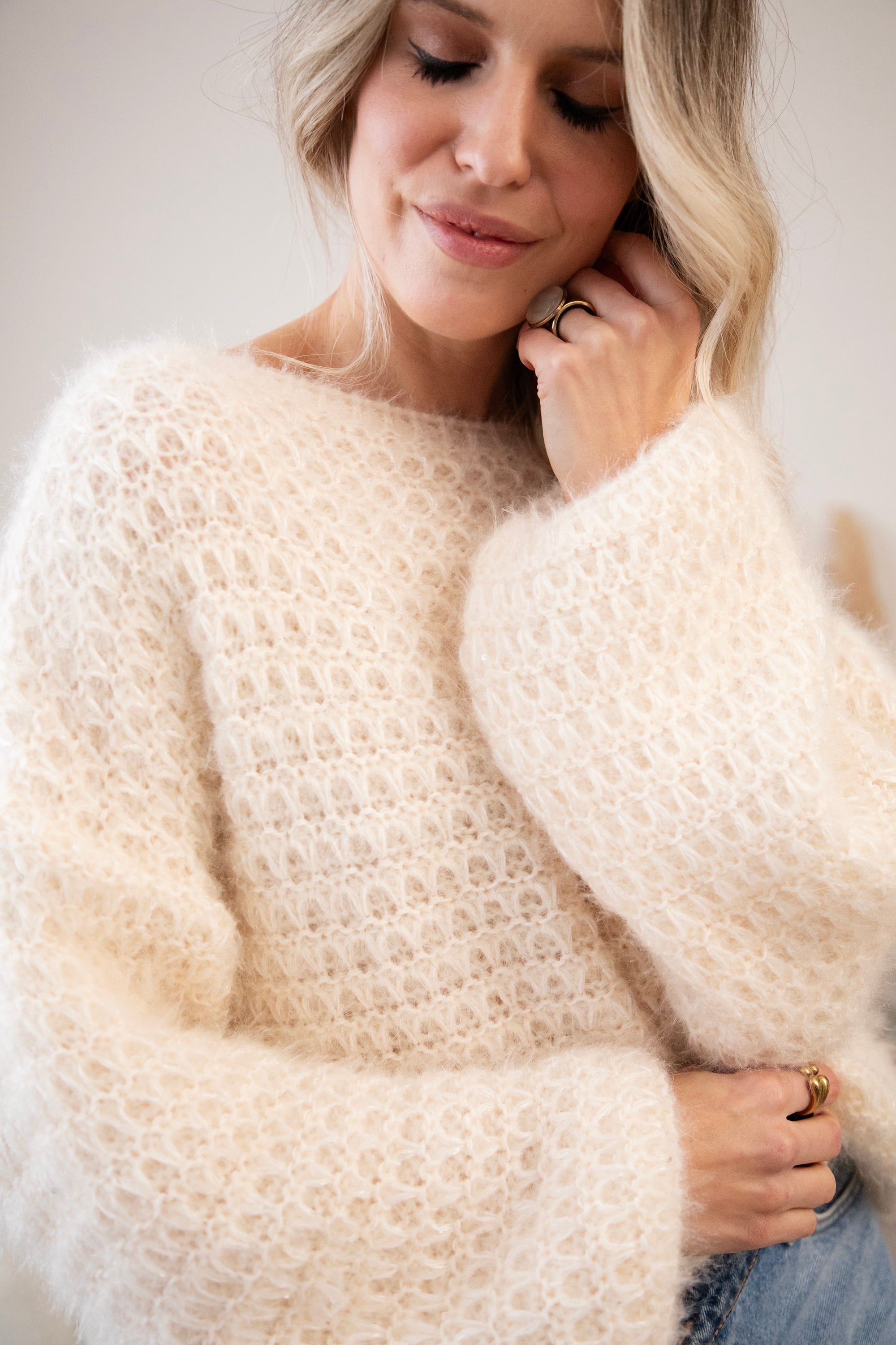 Deze fluffy trui is een ellemilla FAVORITE! 🤍 Ze heeft een subtiel geruit reliëfpatroon en een heerlijke baggy fit waardoor ze mooi poft, zowel in het lichaam als in de mouwen. Extra leuk detail? In de stof zitten mini pailletjes verwerkt die hier en daar zachtjes meeschitteren ✨ Niet te opvallend, maar net genoeg voor dat vleugje glam. Super zacht, cozy én een tikkeltje sparkly!