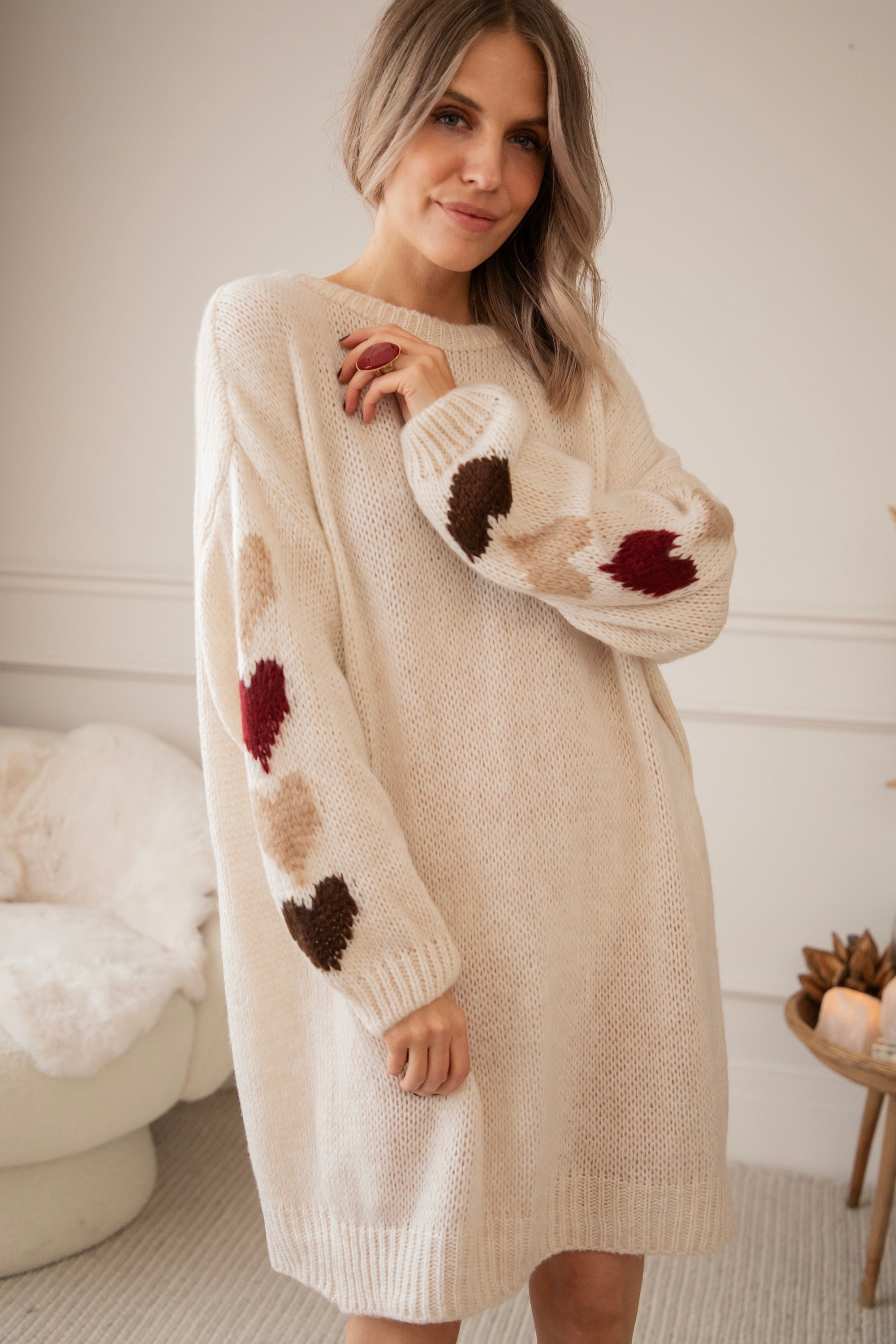 Heart On My Sleeve Café Au Lait - Sweater Dress