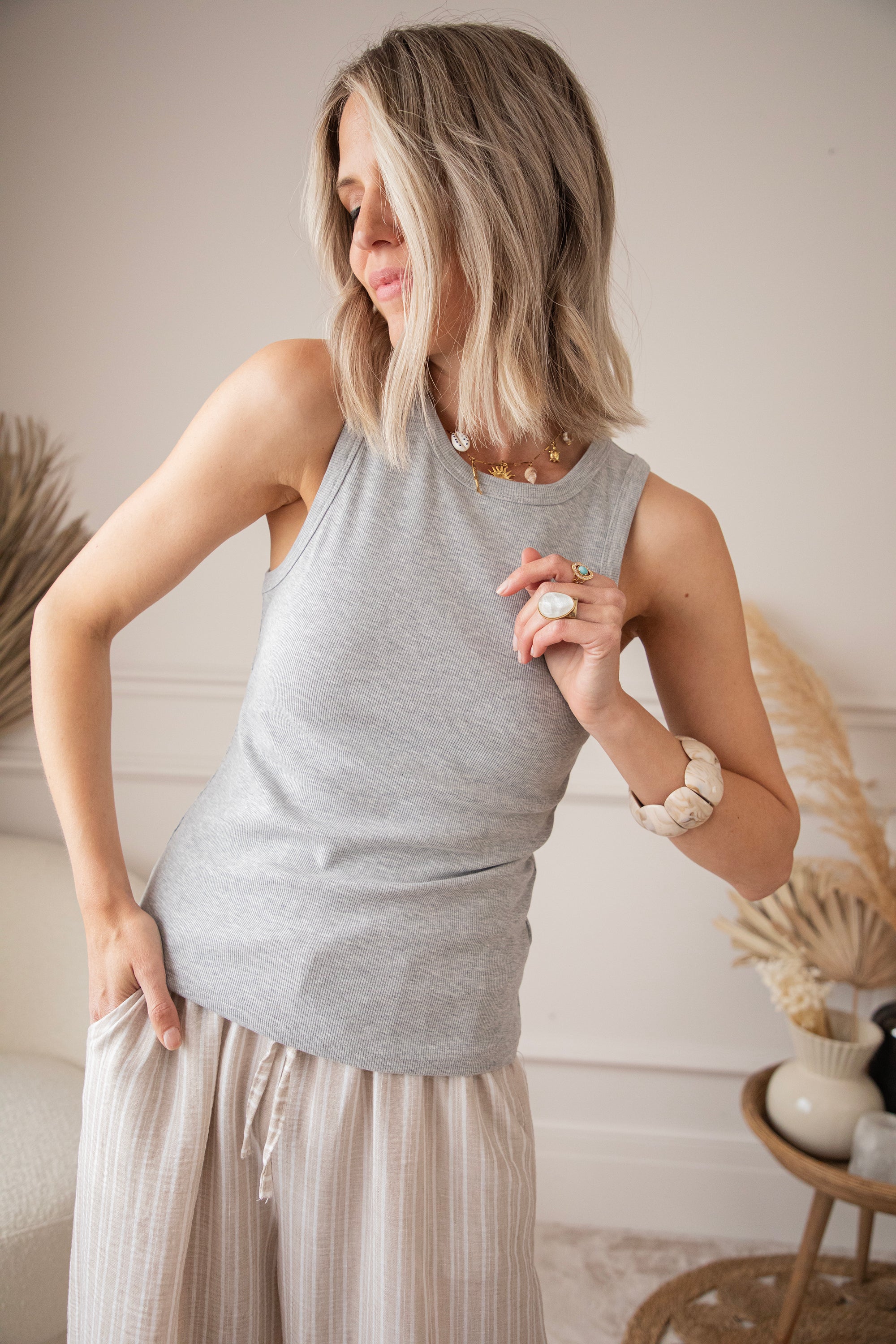 Simpel, zacht en oh zo combineerbaar… dit basic rib topje is echt een must in mijn kast en al-tijd present in de ellemilla collectie!