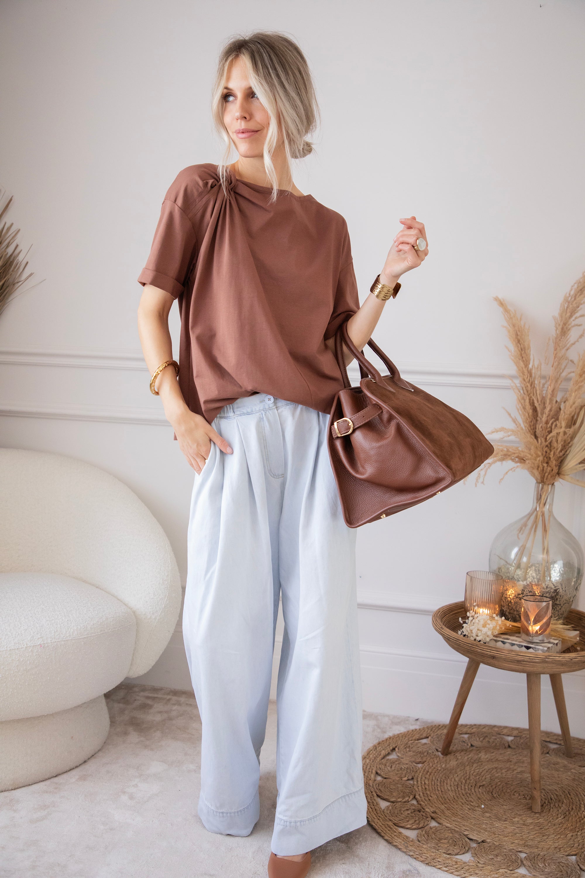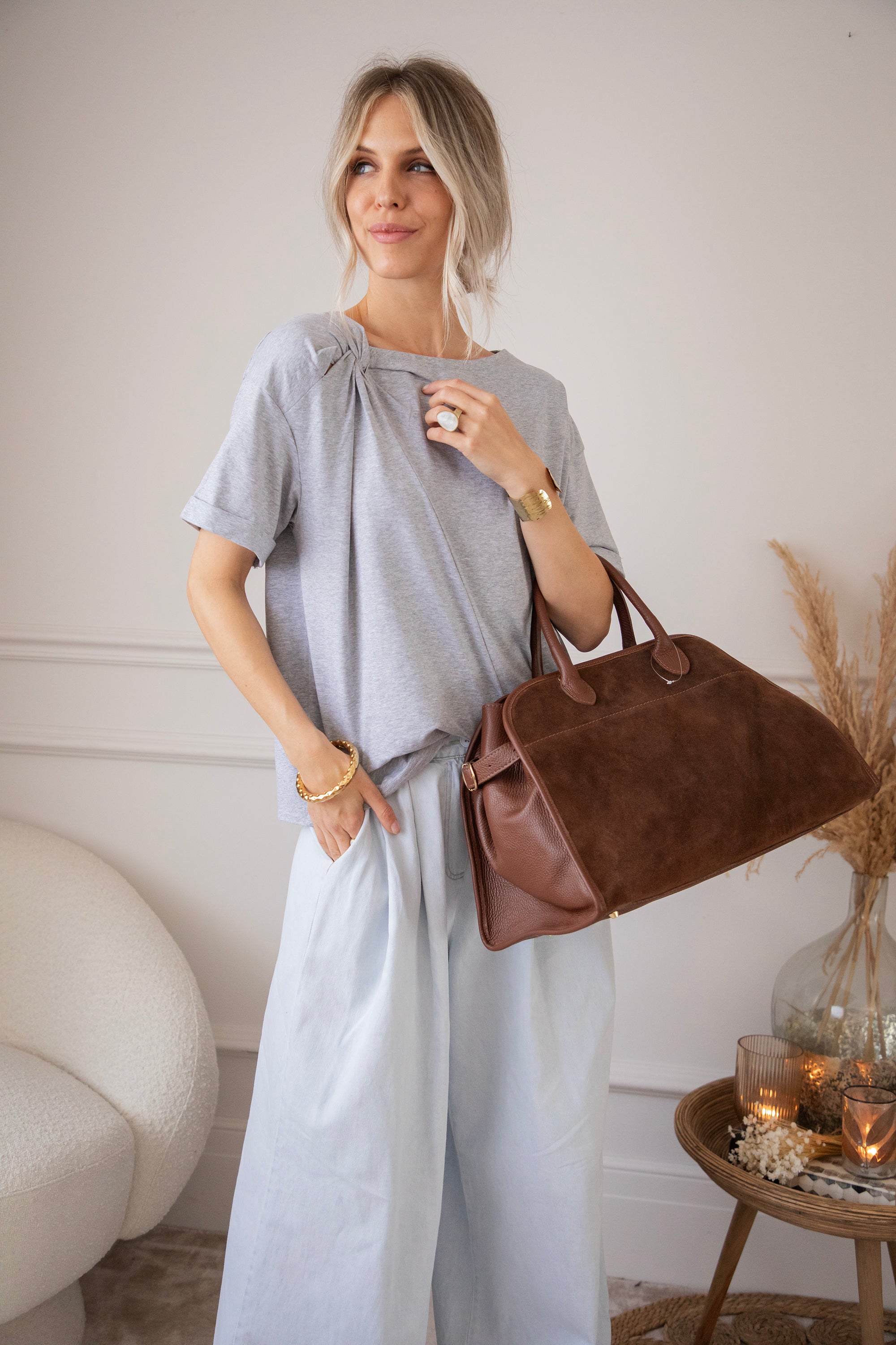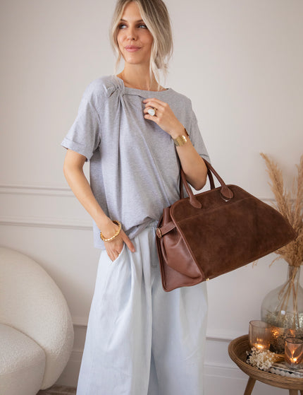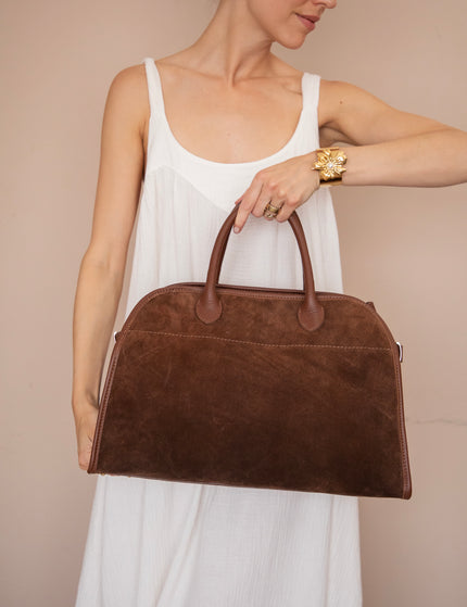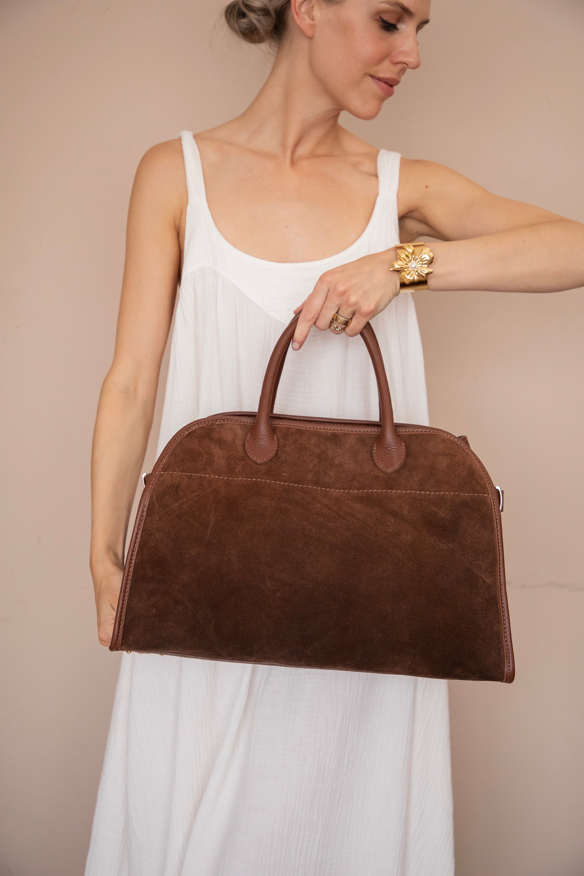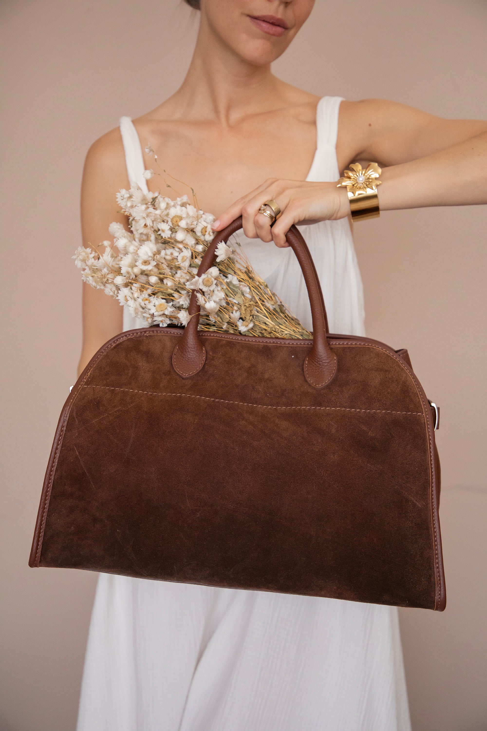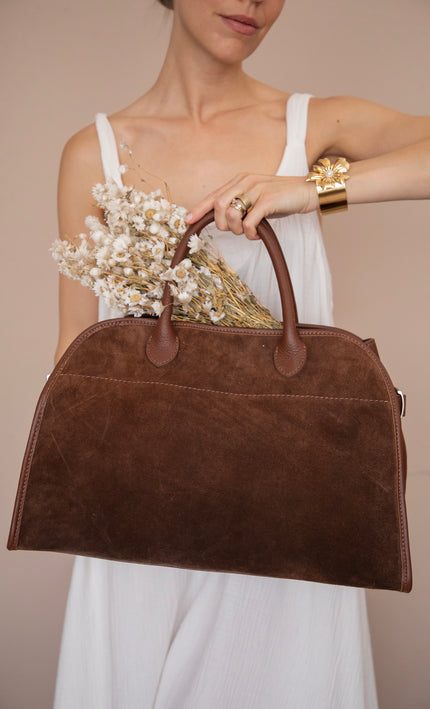 Soms wil je gewoon een groter formaat bij je hebben, ik vind dat zelf altijd zo classy staan. Dit exemplaar combineert het beste van beide werelden: de handvaten en zijkanten hebben die typische leather look, terwijl de rest van de tas een chique suède bekleding heeft. De gouden riempjes maken het helemaal af en geven de tas die extra fancy touch! ✨