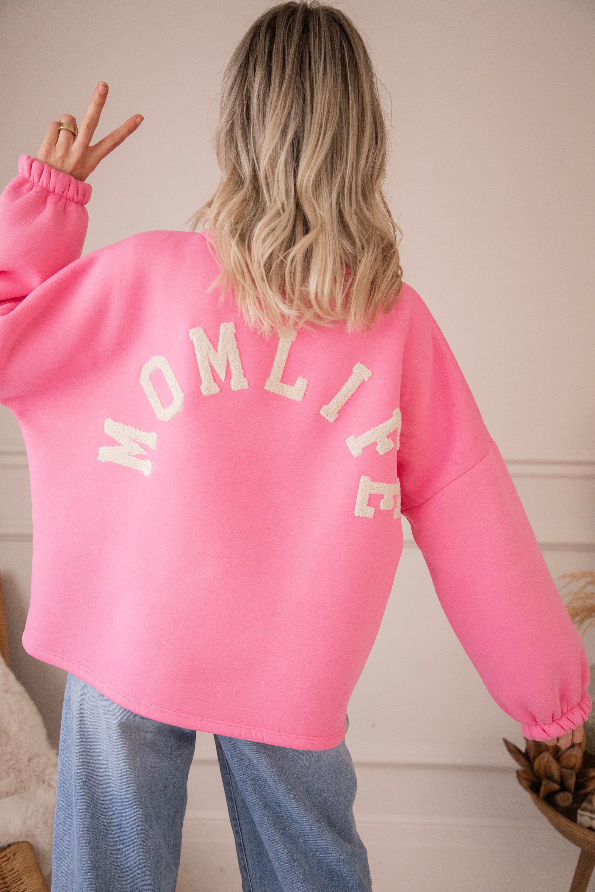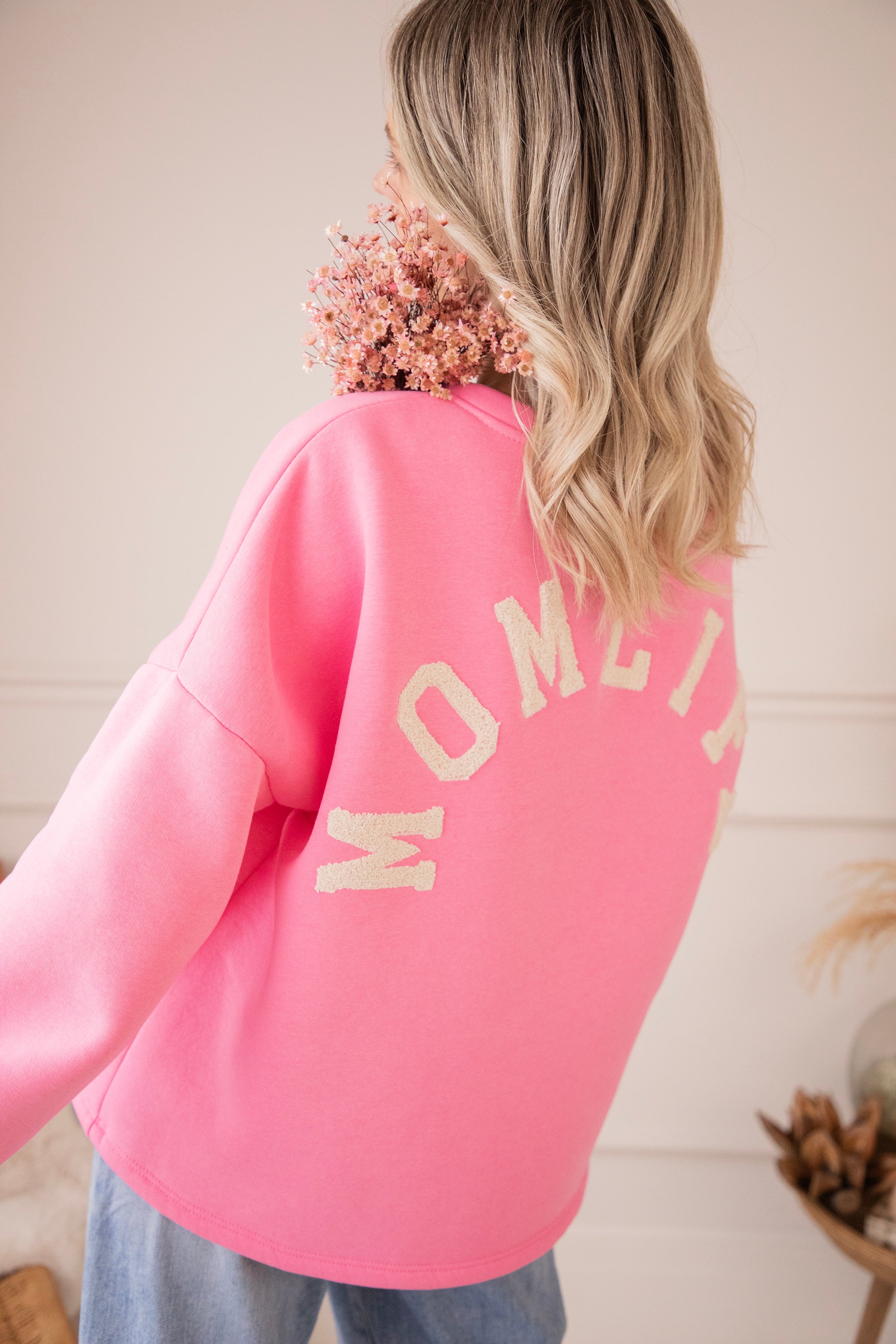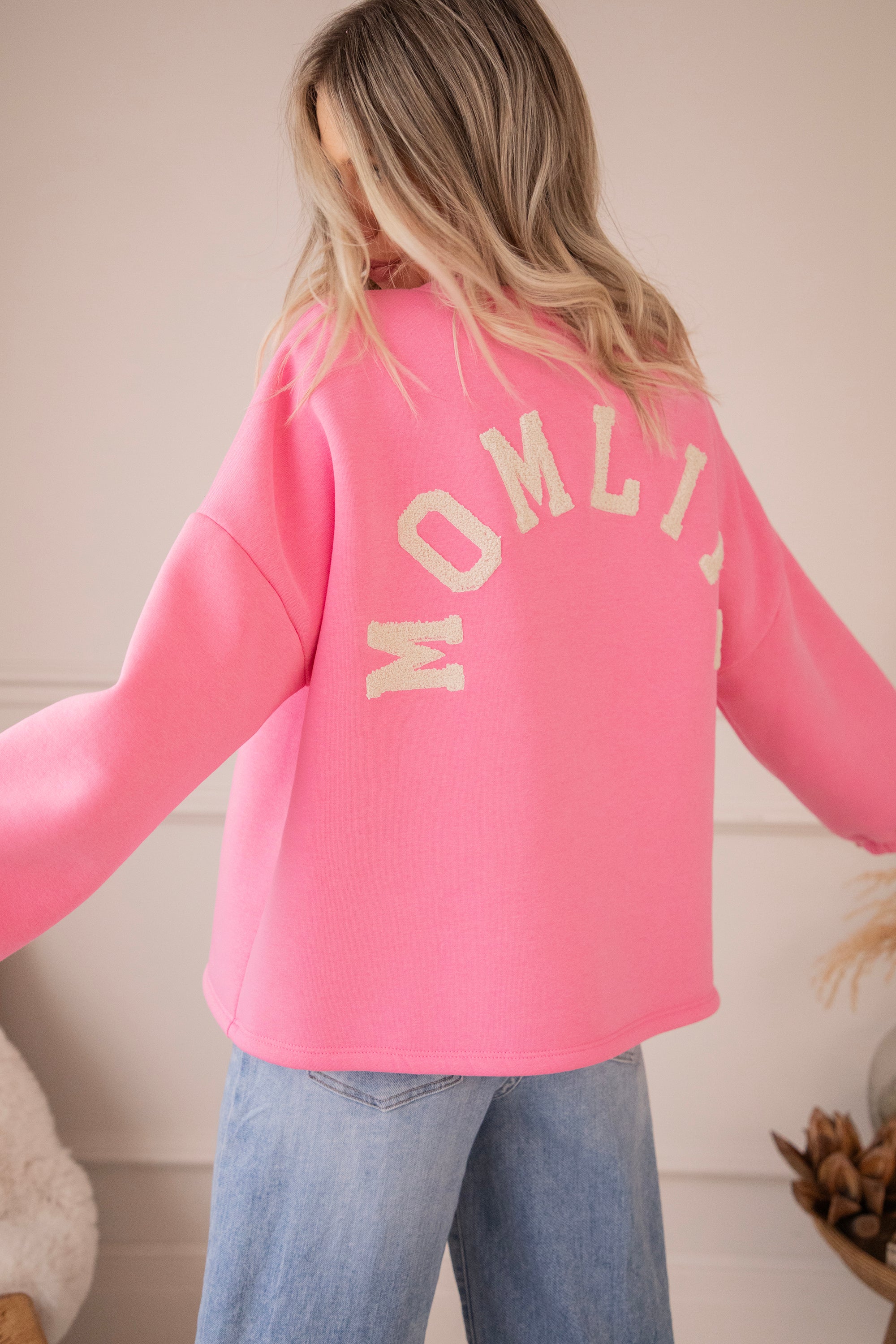Onze Lily sweater in een girly roze tint met MOMLIFE in beige teddy letters 🤍 Simpel, warm en zo to the point.