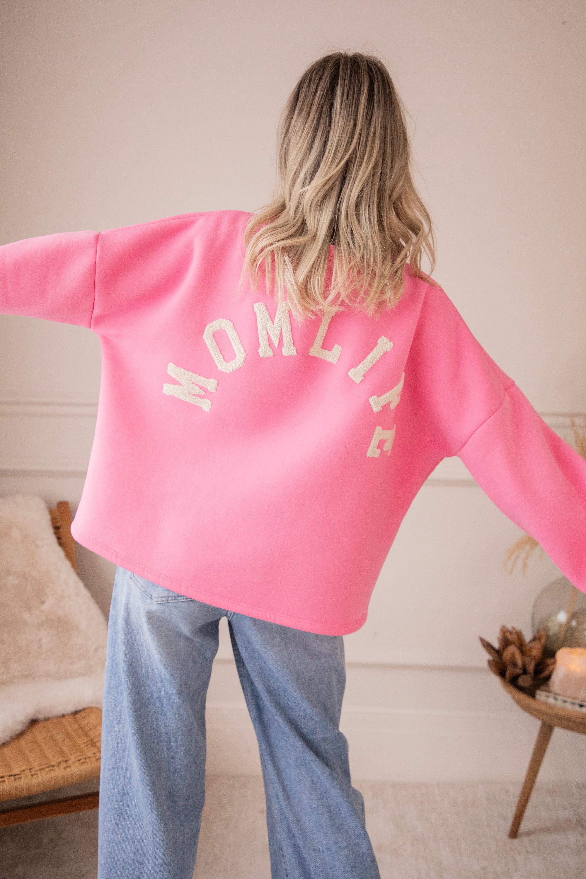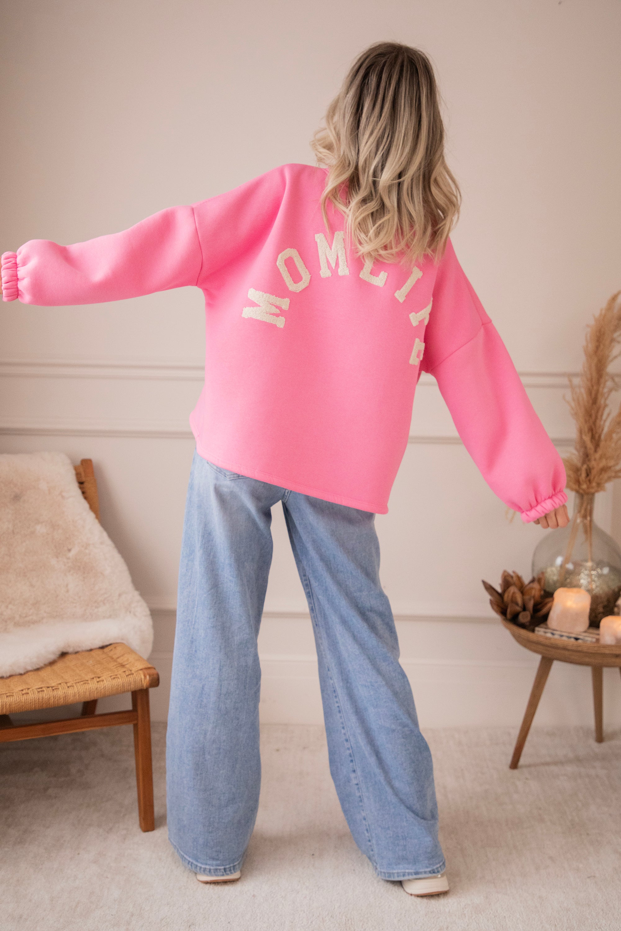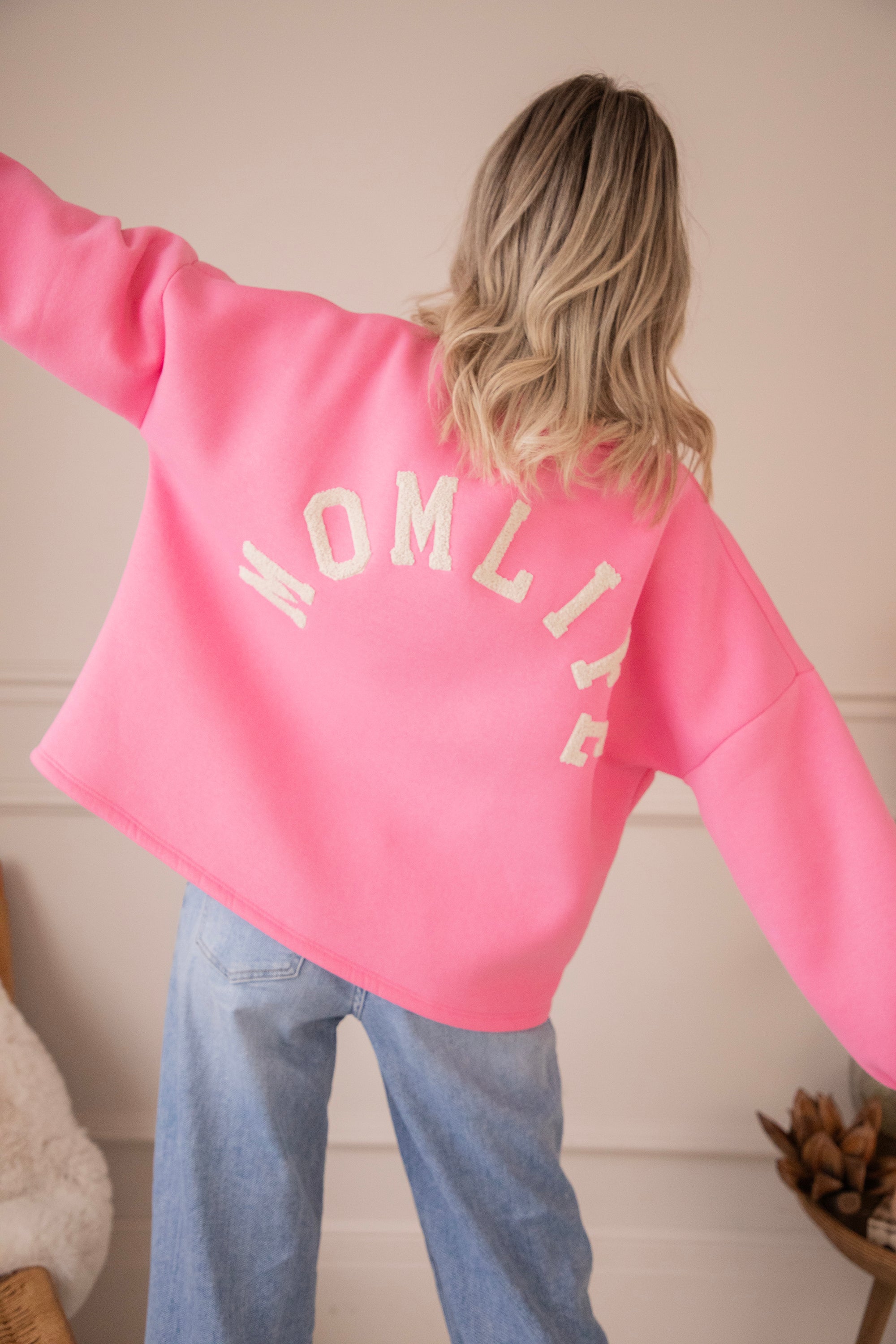 Onze Lily sweater in een girly roze tint met MOMLIFE in beige teddy letters 🤍 Simpel, warm en zo to the point.