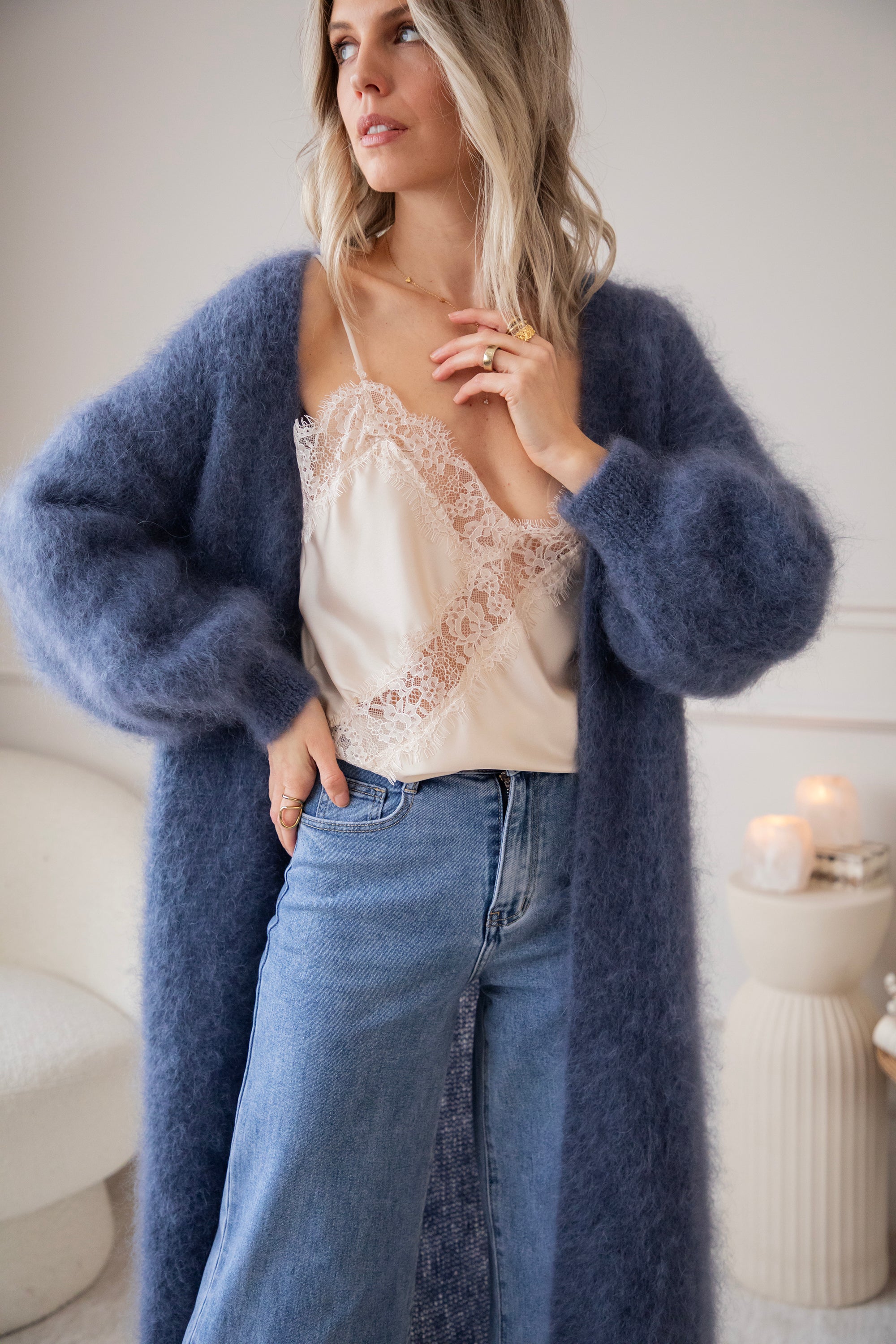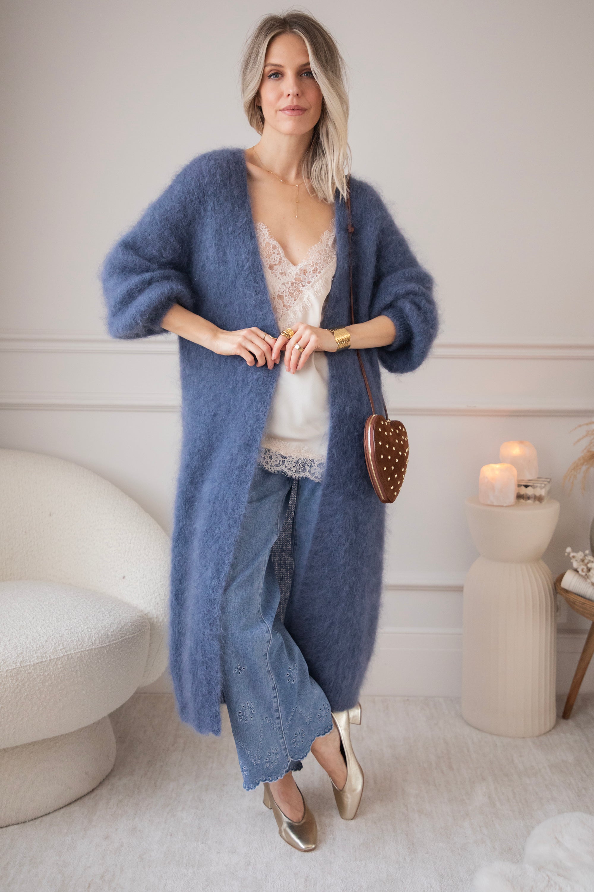 Met haar lange pasvorm, extra ruime mouwen, cozy gebreide stof en die diepe donkerblauwe kleur weet deze knit iedereen te charmeren 💙