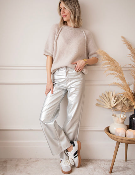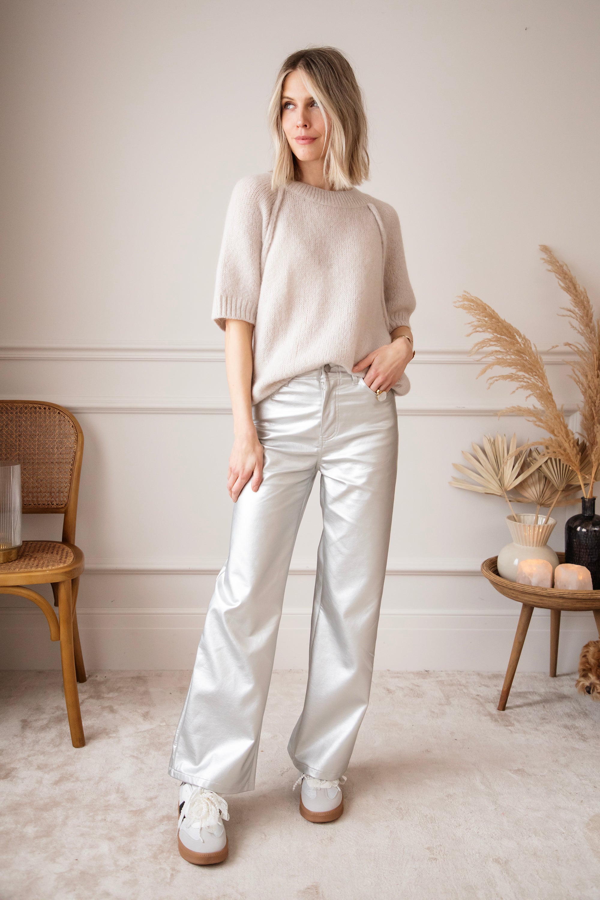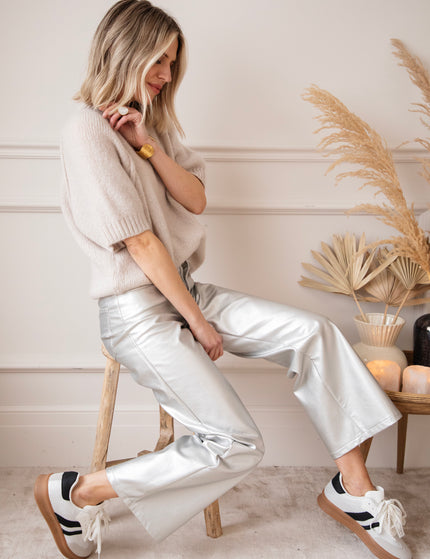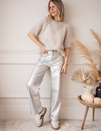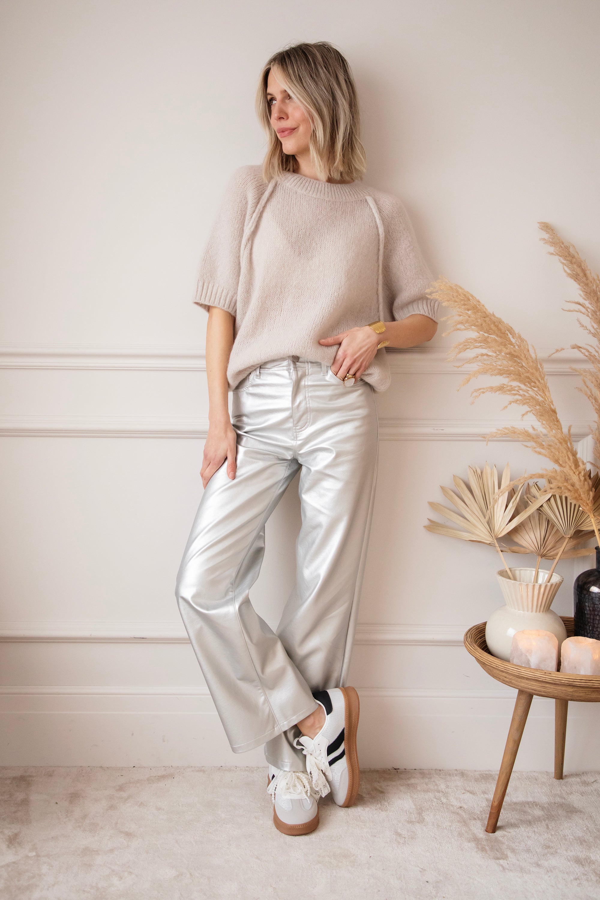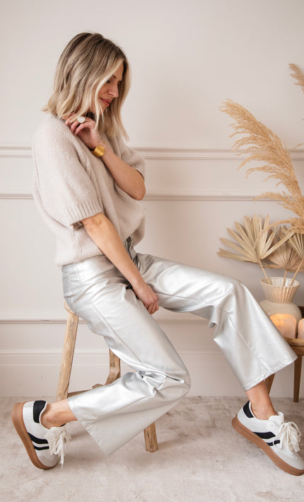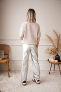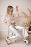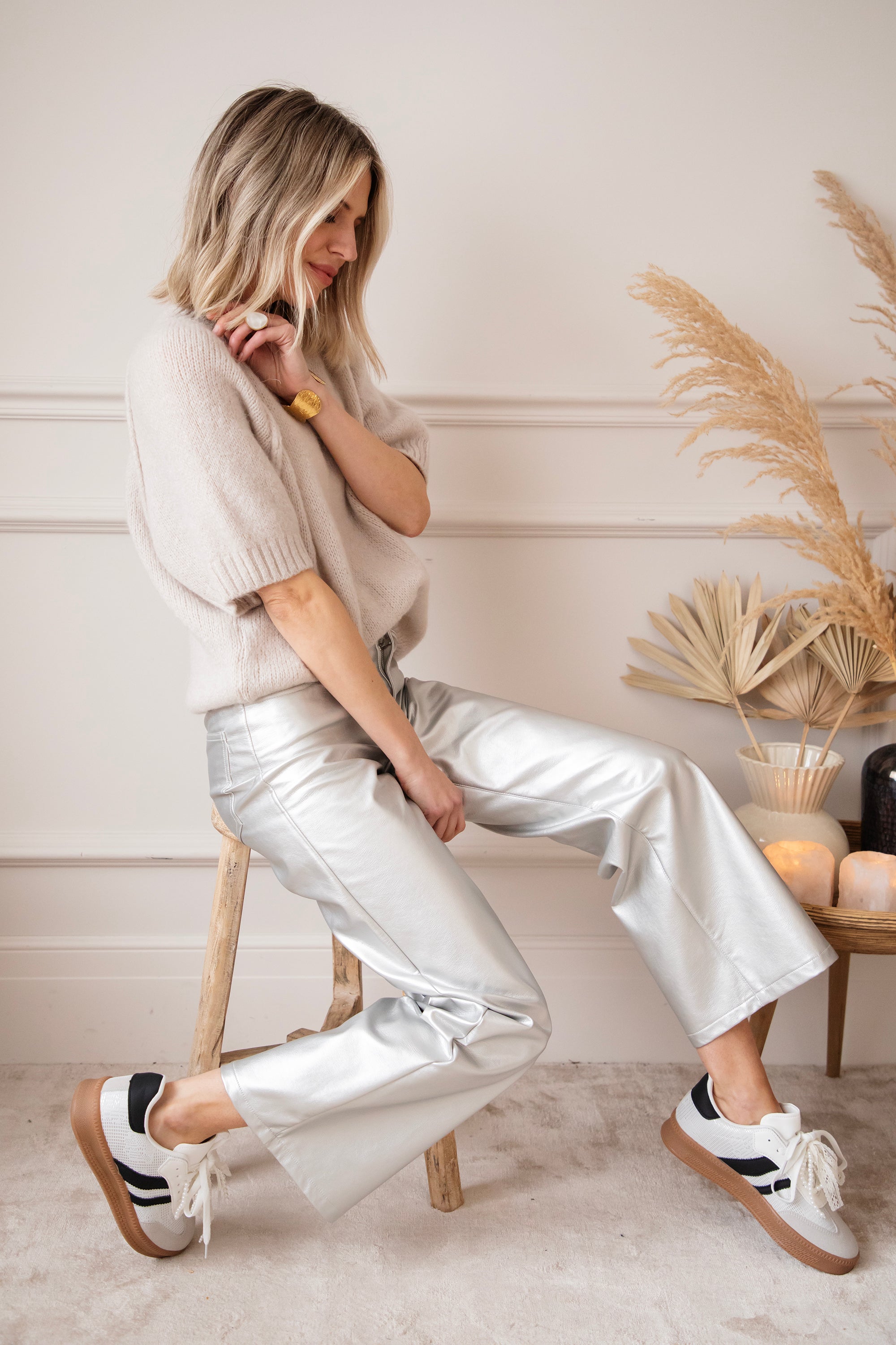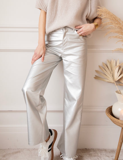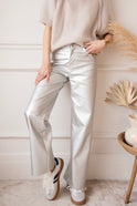 Say hello to your new favorite statement basic: de zilveren coated PU broek die elke outfit een instant upgrade geeft!