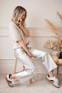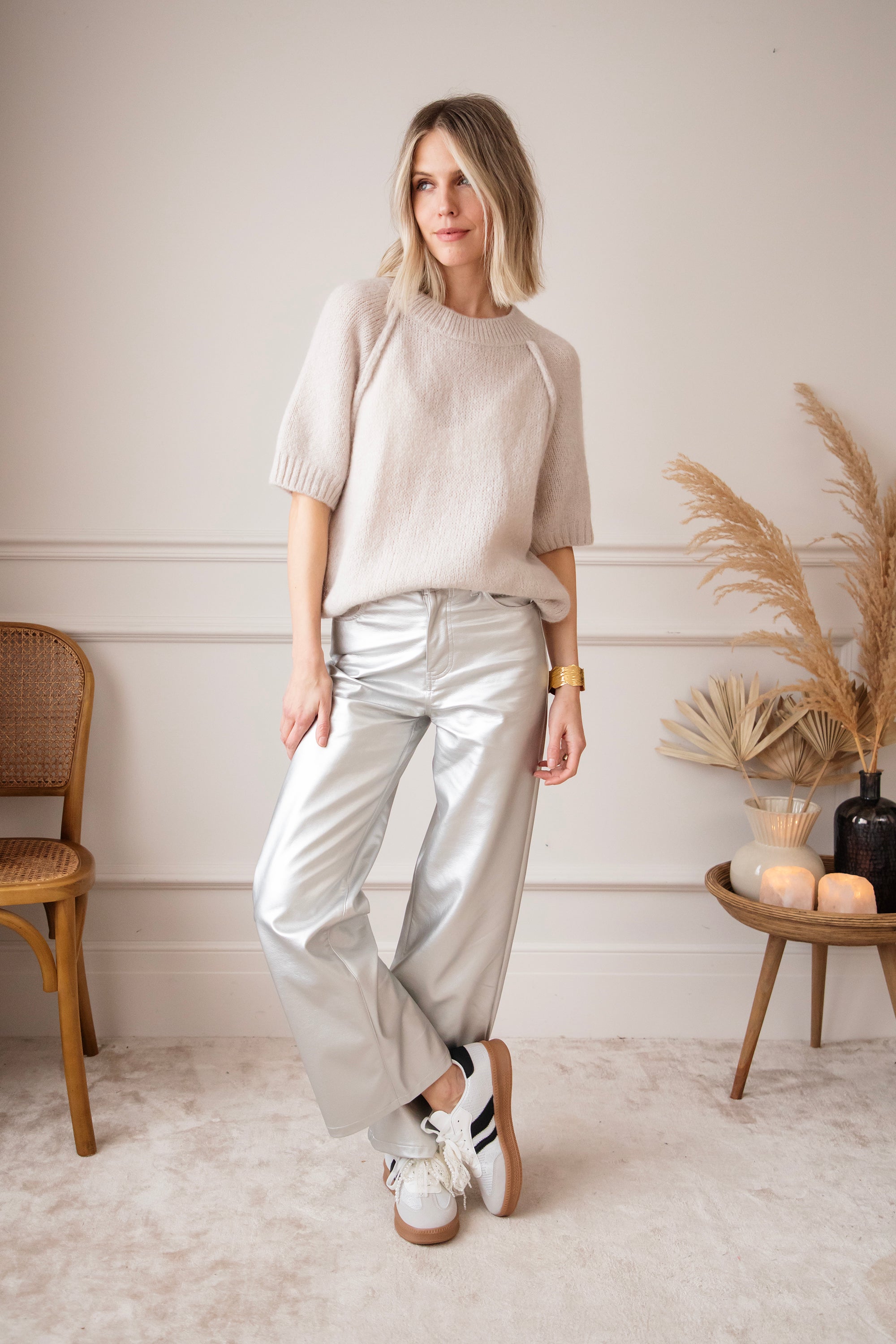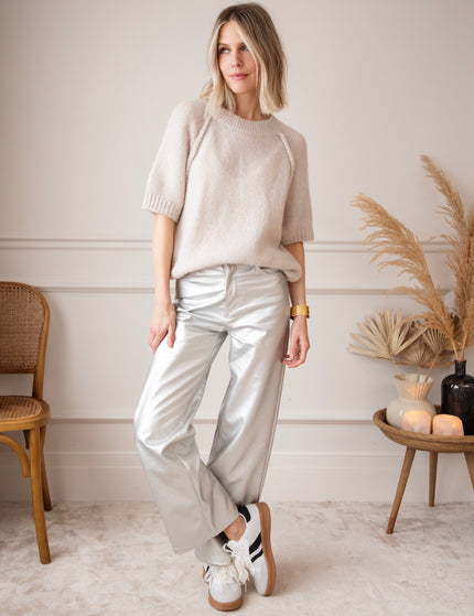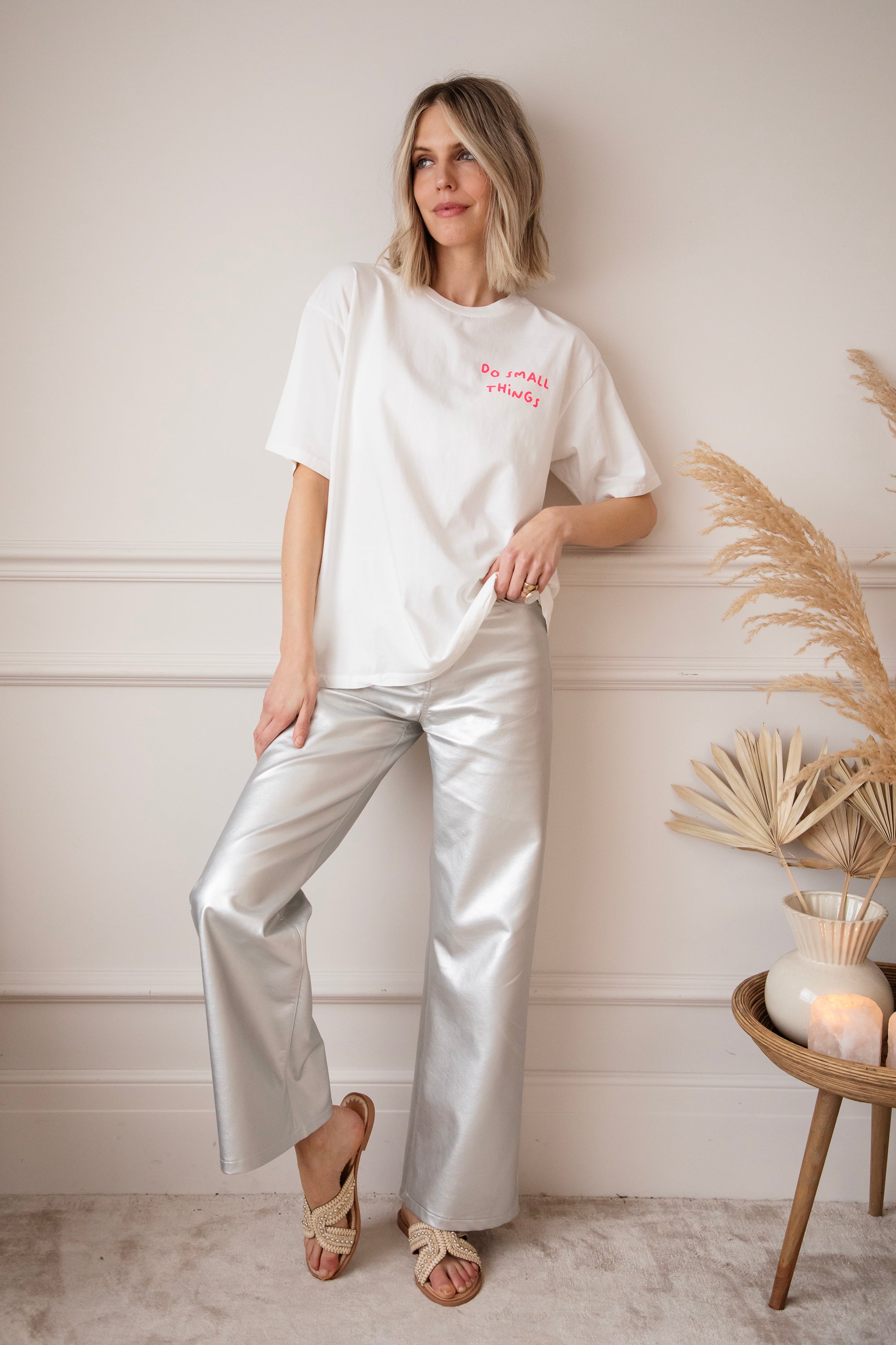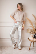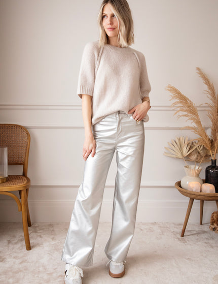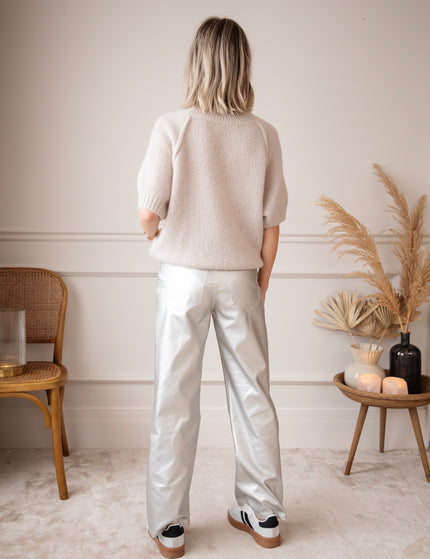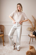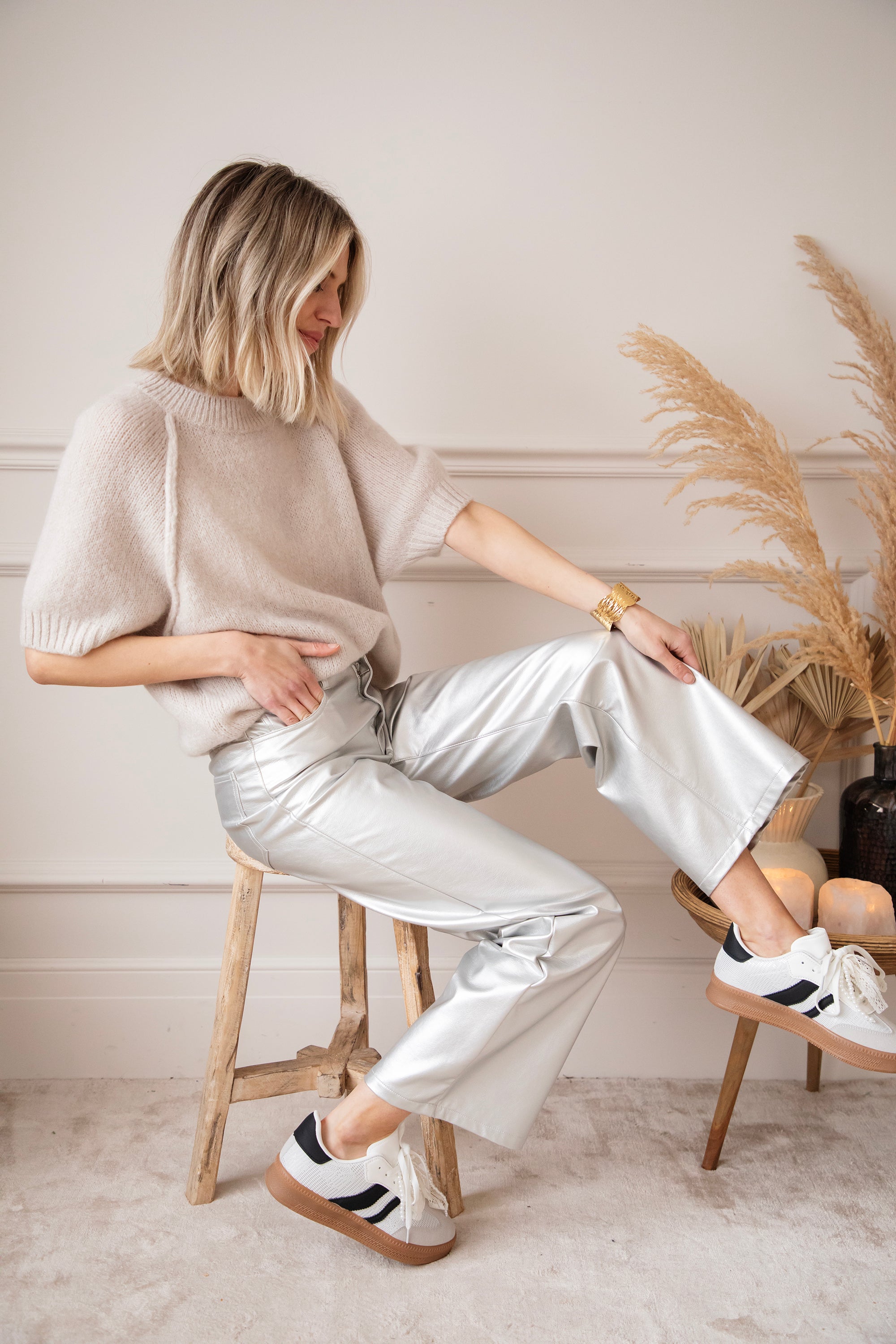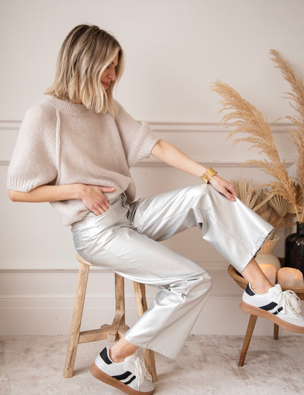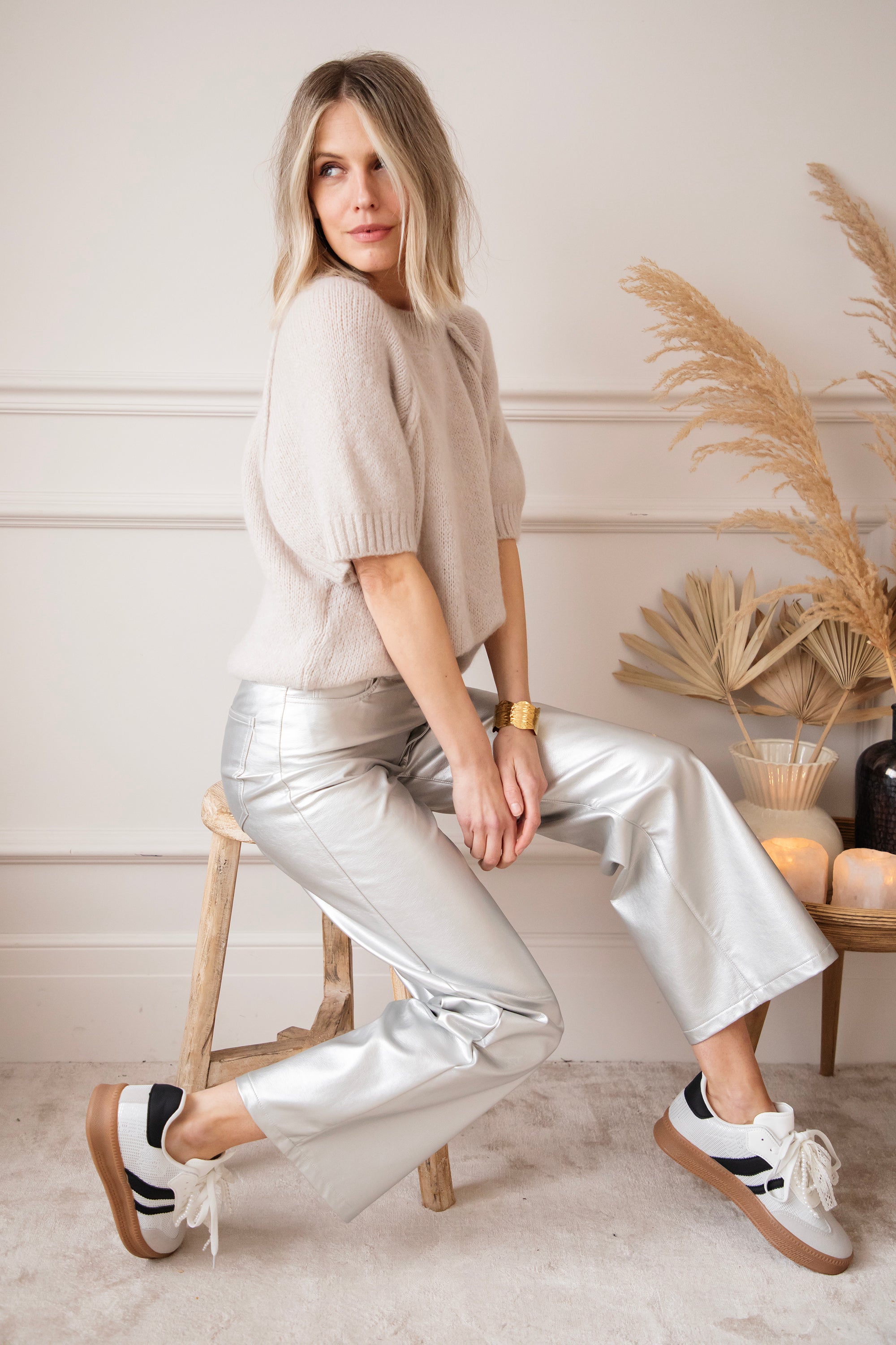 Say hello to your new favorite statement basic: de zilveren coated PU broek die elke outfit een instant upgrade geeft!