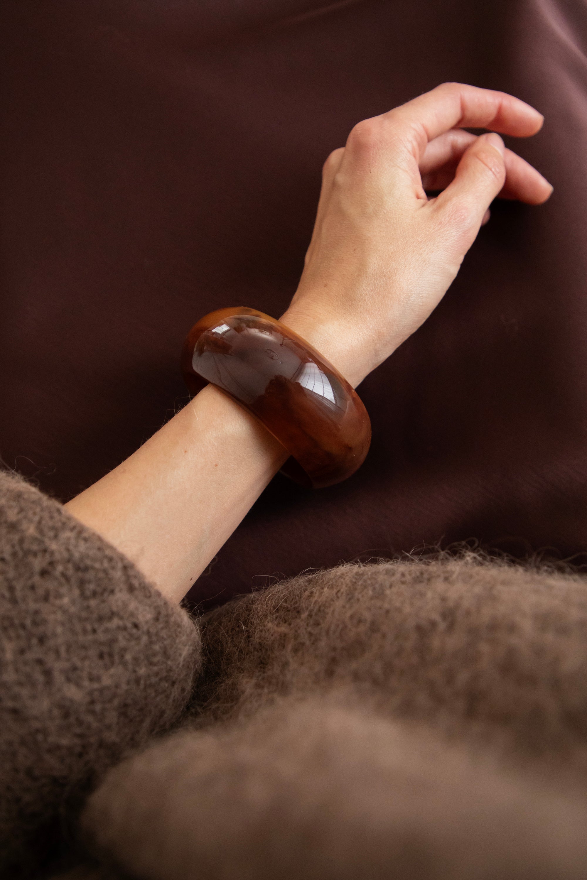 Elke bangle heeft z’n eigen subtiel marmerpatroon, waardoor geen enkel exemplaar hetzelfde is. Zo leuk! Ze geeft meteen wat extra pit aan je outfit of je nu voor casual gaat of wat meer dressed-up.