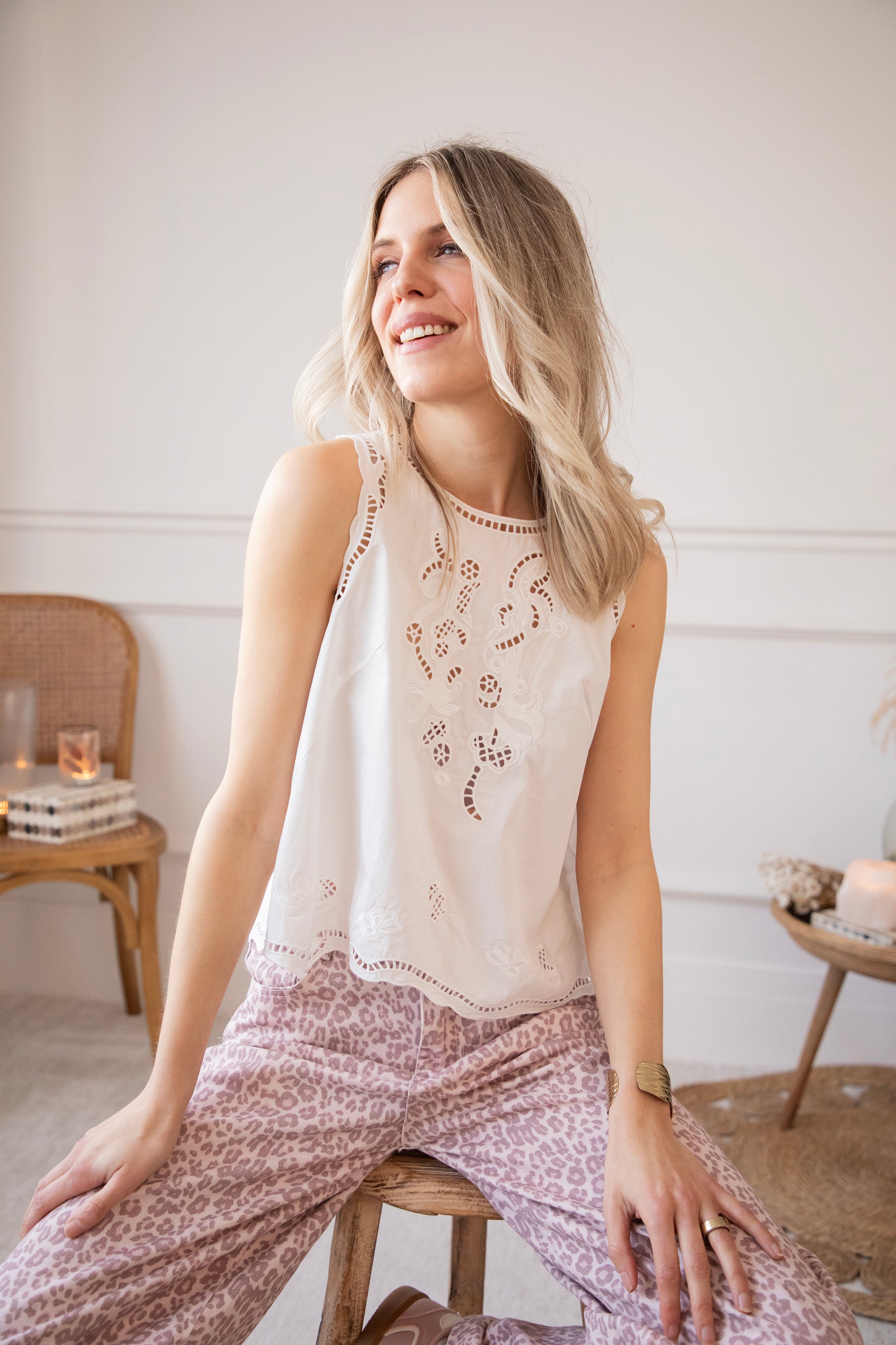 Oehhh ons Marianne is zoooo’n schattig topje 🥹🌷 Zo fris en fruitig met haar wijduitlopende fit, subtiele opengewerkte kantdetails en fijne reliëf figuurtjes 🎀 Ohhh iedereen verdient zo'n girly piece in haar kast vind ik 🥰