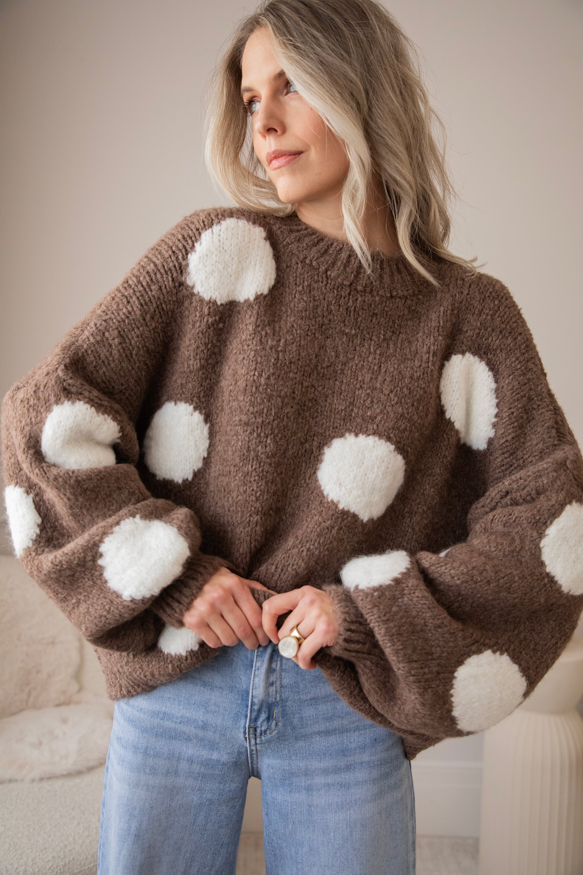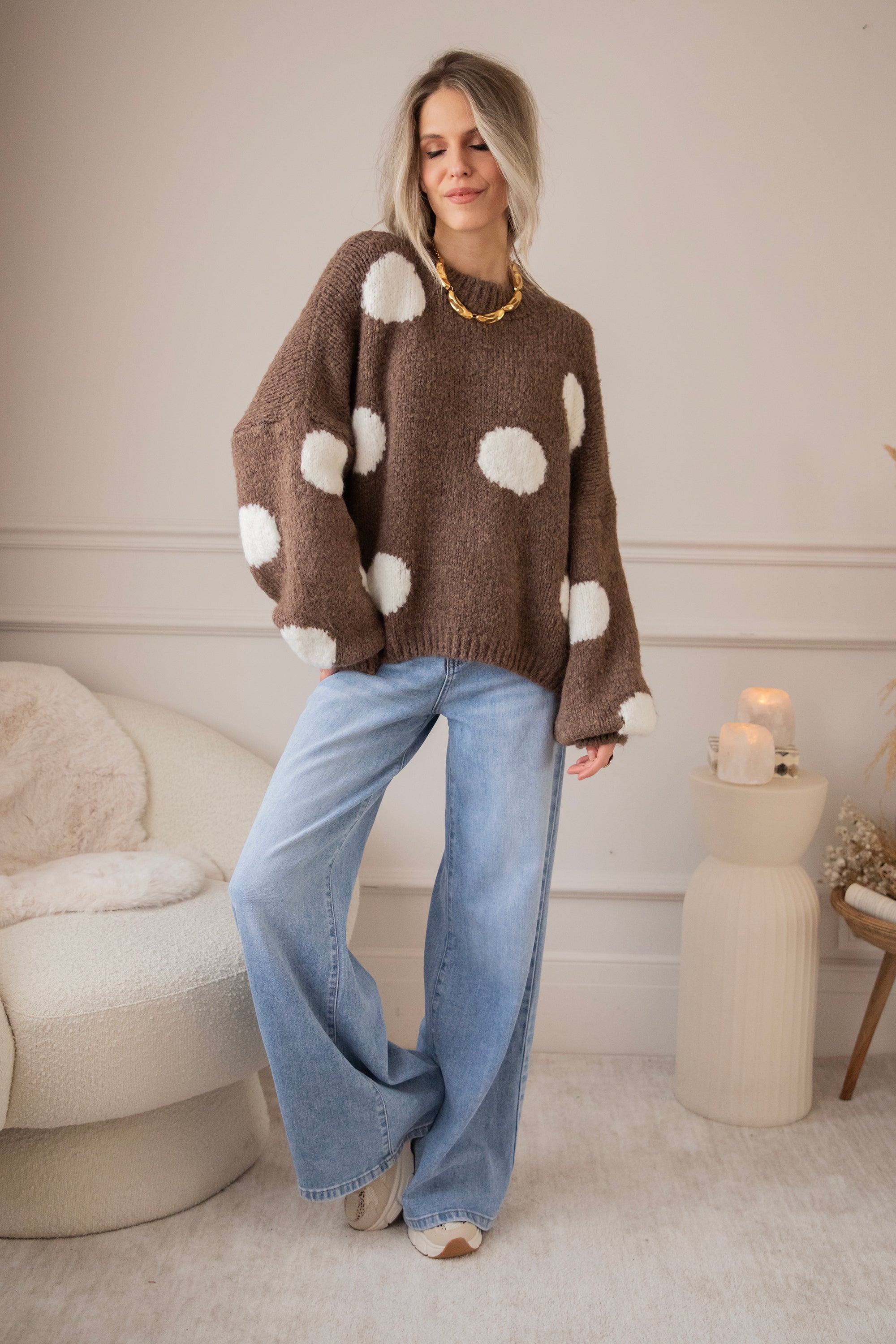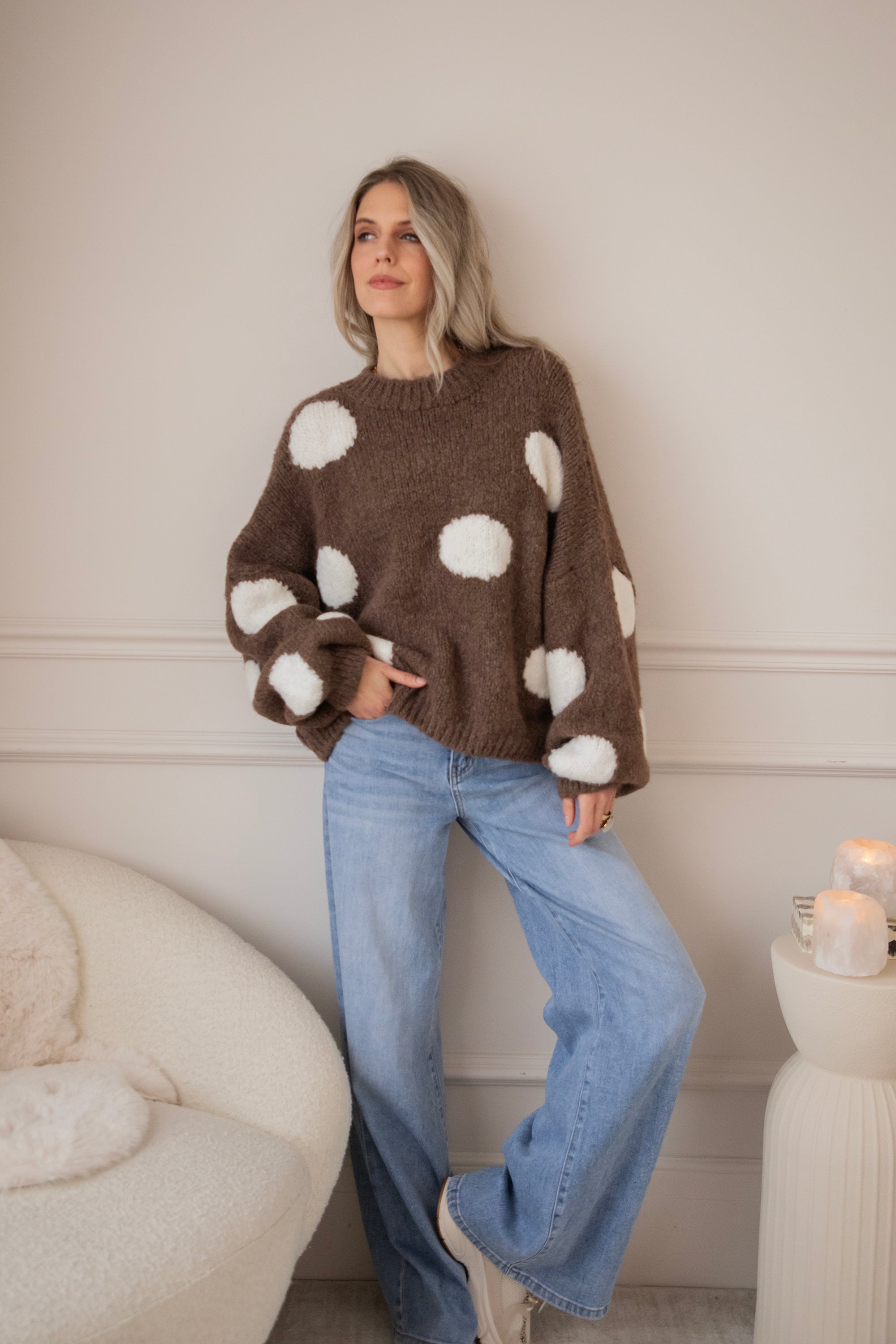 Oehhh ja hoor… de dots zijn helemaal terug dit seizoen! En als we het doen, dan doen we het goed, maxi dots it is hihi 🤩 Deze heerlijke trui komt met een ongelofelijk zacht en dikke knit, daar dan die witte maxi dots op, ja het is een eyecatcher op alle vlakken 💥