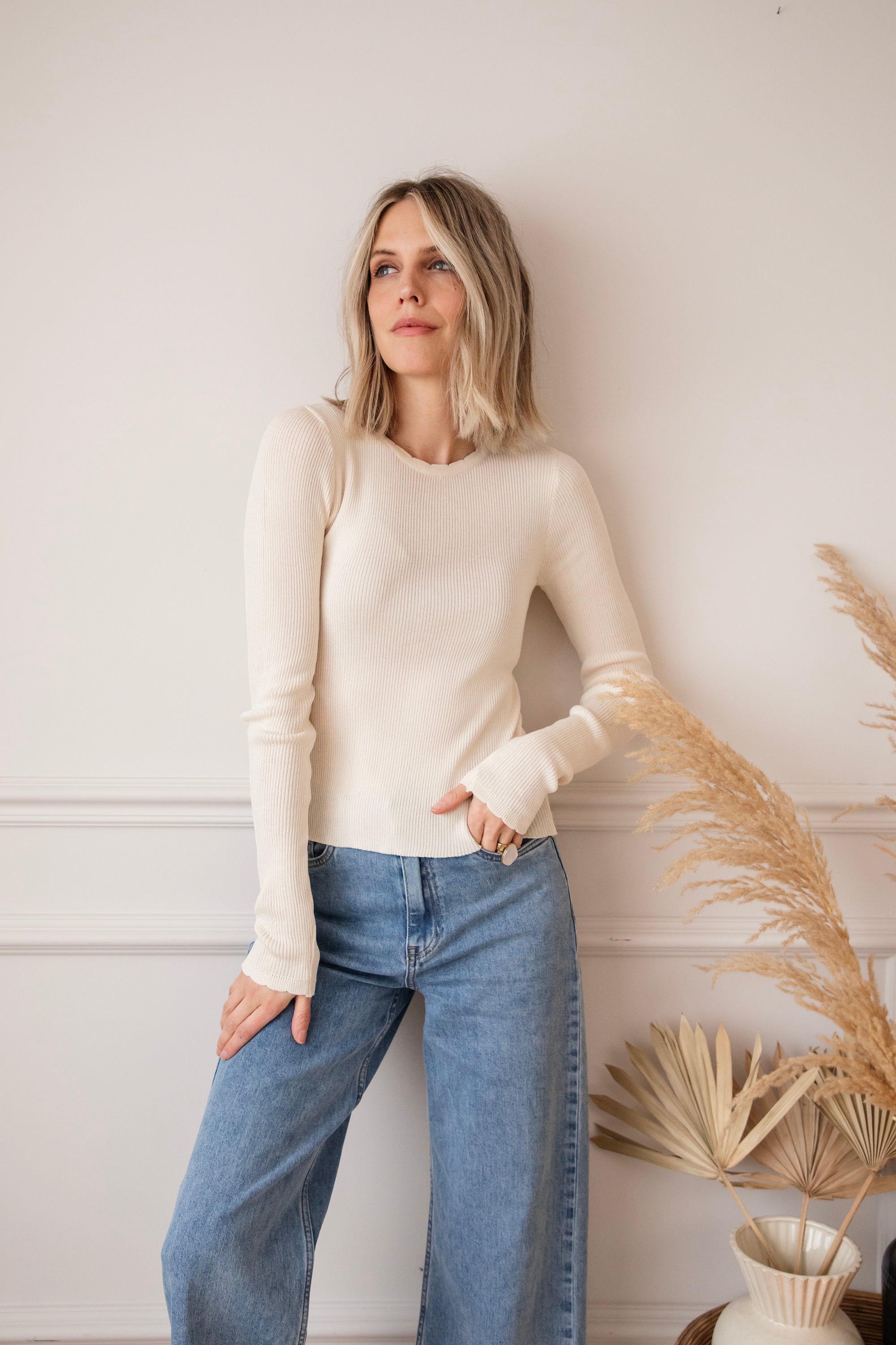 Dit ribgebreide exemplaartje rekt ongelofelijk goed mee. Daardoor zal ze jouw bovenlichaam mooi omarmen. Ze is prachtig om op zichzelf te dragen, maar ook het ideale layering piece voor de frissere dagen met een sleeveless jacket of blazer of het prachtige Belle Couture jasje 😍