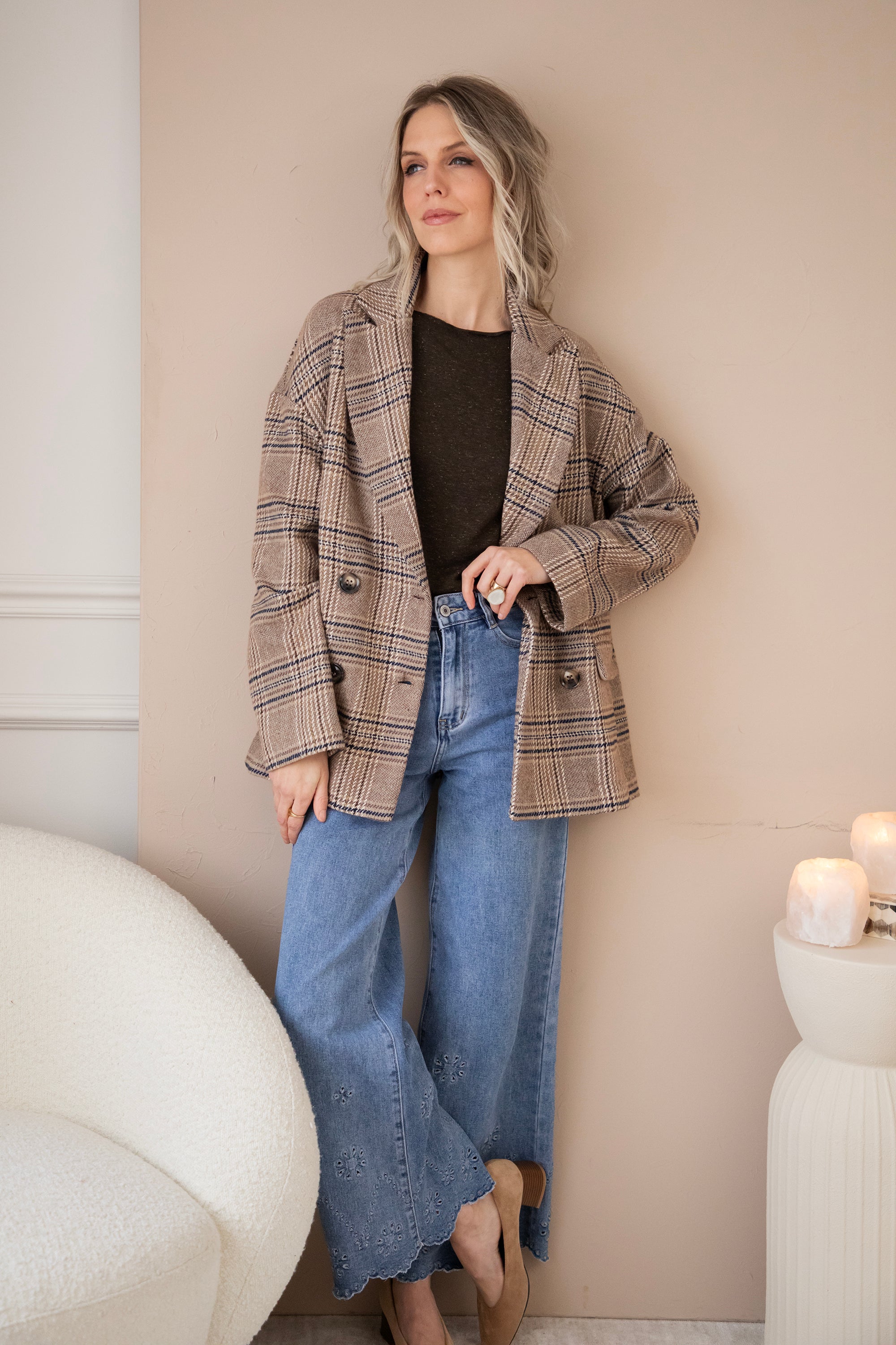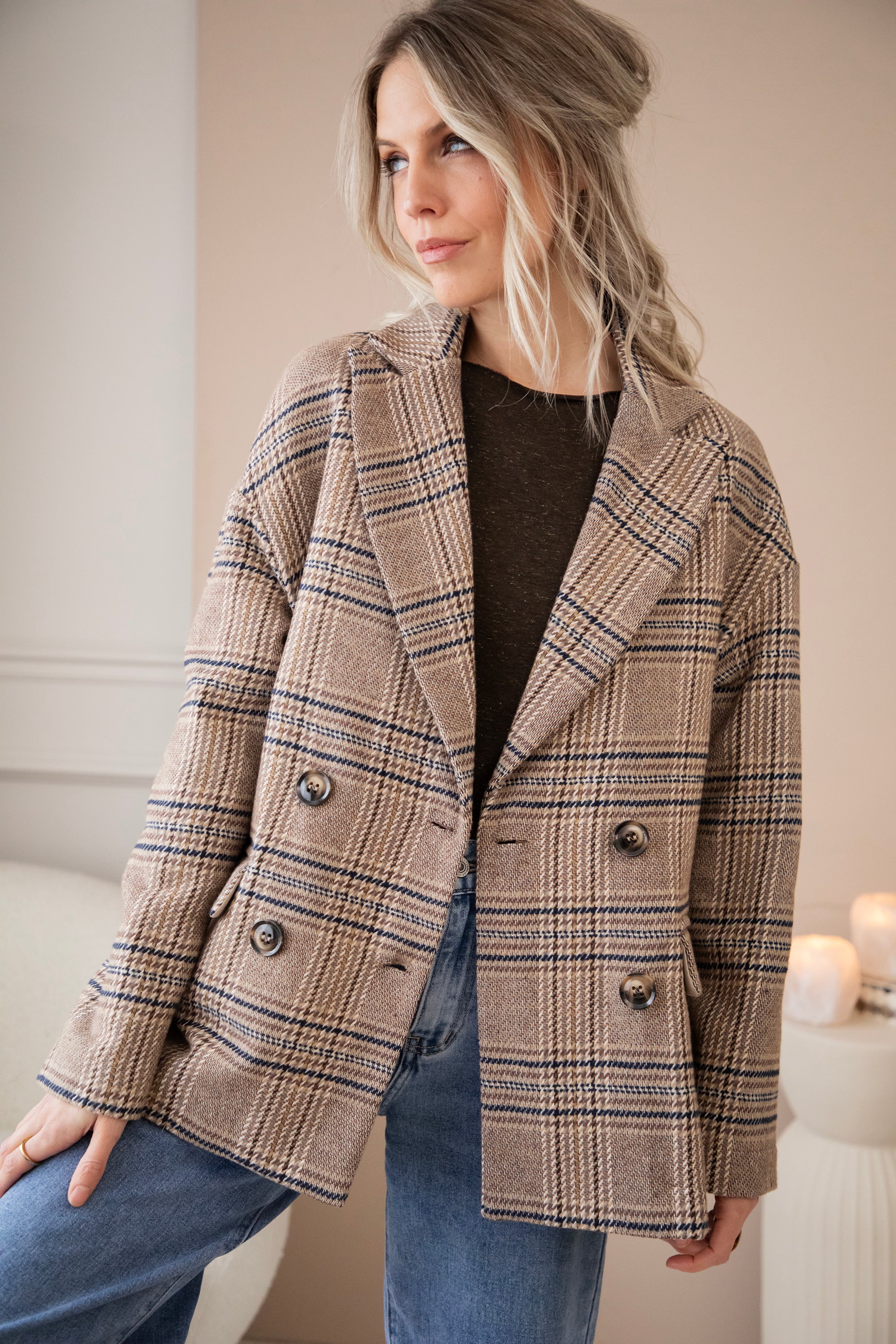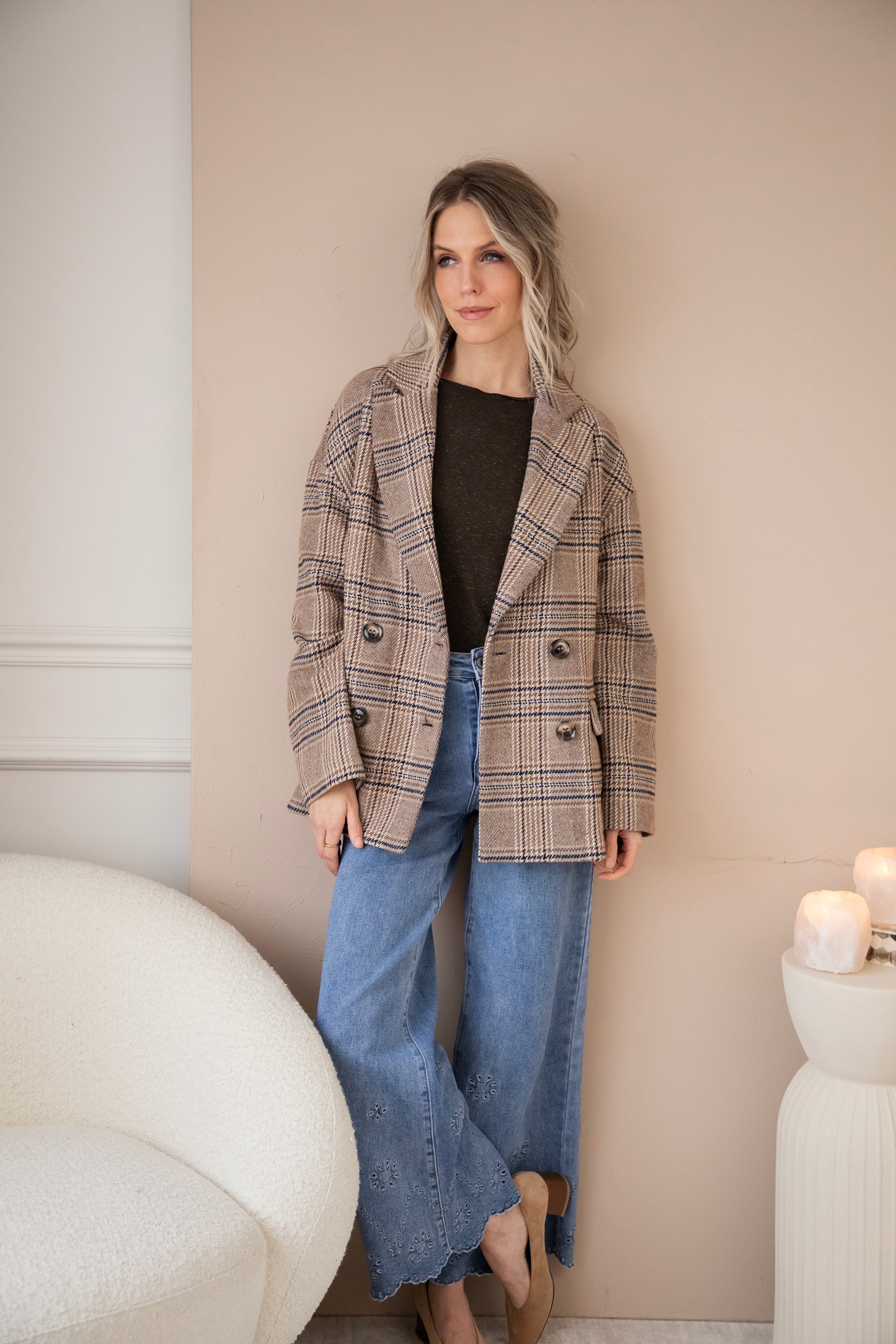 Plaid Perfection Taupe - Jacket/Blazer