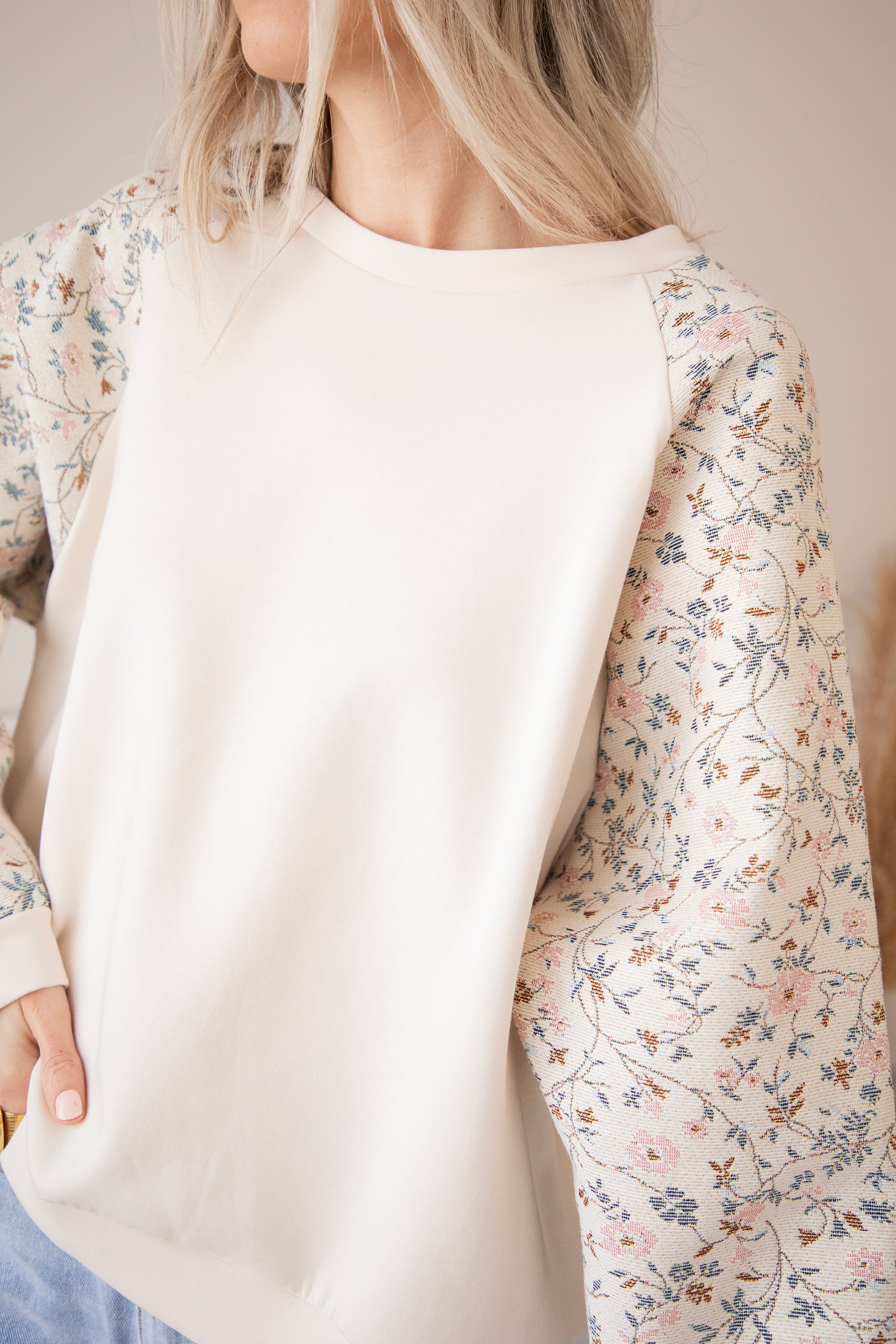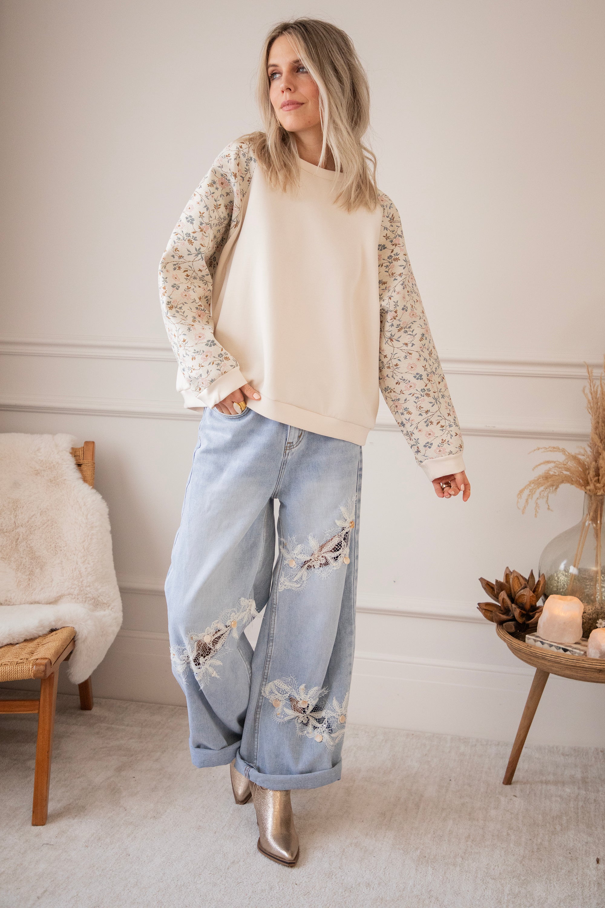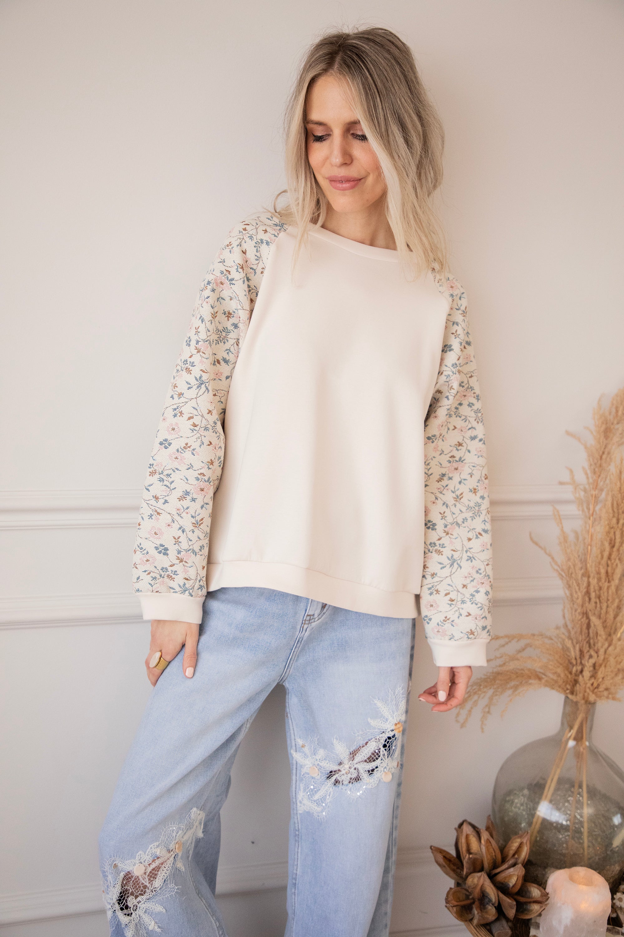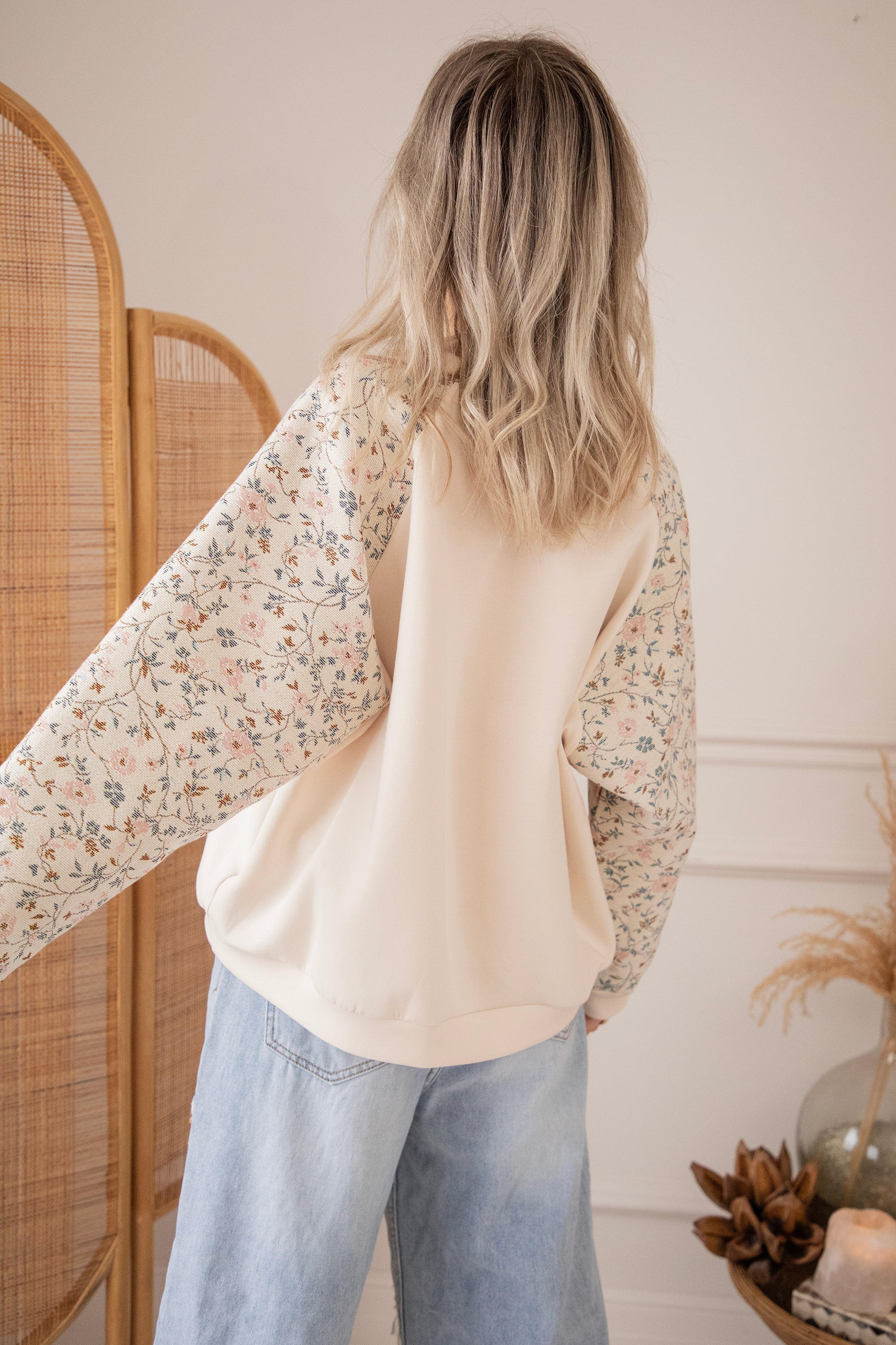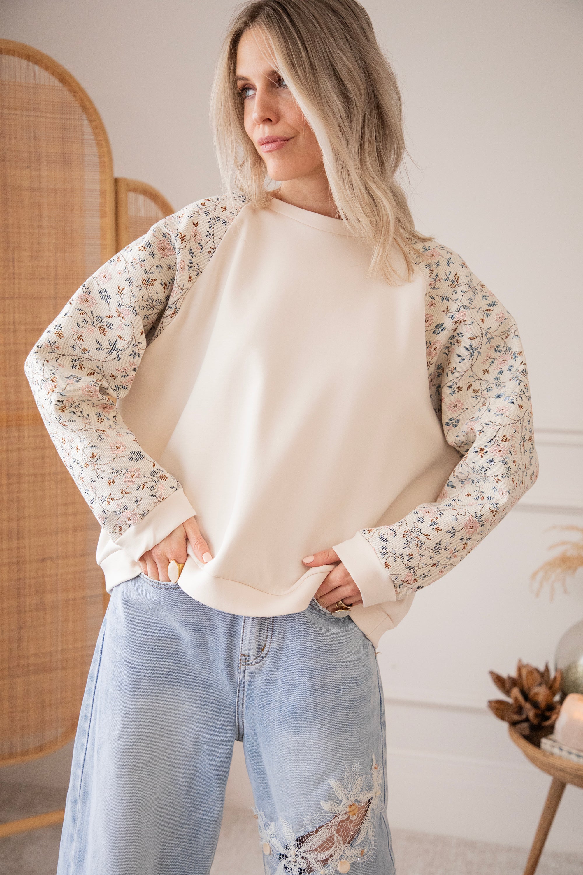 Yesss, ik ben helemaal verliefd! 🫶 Rosy Belle geeft nu al dat lentegevoel met haar sierlijke bloemenpatroontjes en het allerleukste: we hebben exact hetzelfde patroon op een blazer met een full bloom look voor extra flower power 🌸 Bij de sweater zijn enkel de mouwen opgefleurd met het zachte groene, roze en camel bloemenmotiefje. Zooo mooi! Het heeft iets vintage en romantisch, terwijl het middengedeelte mooi effen blijft.
