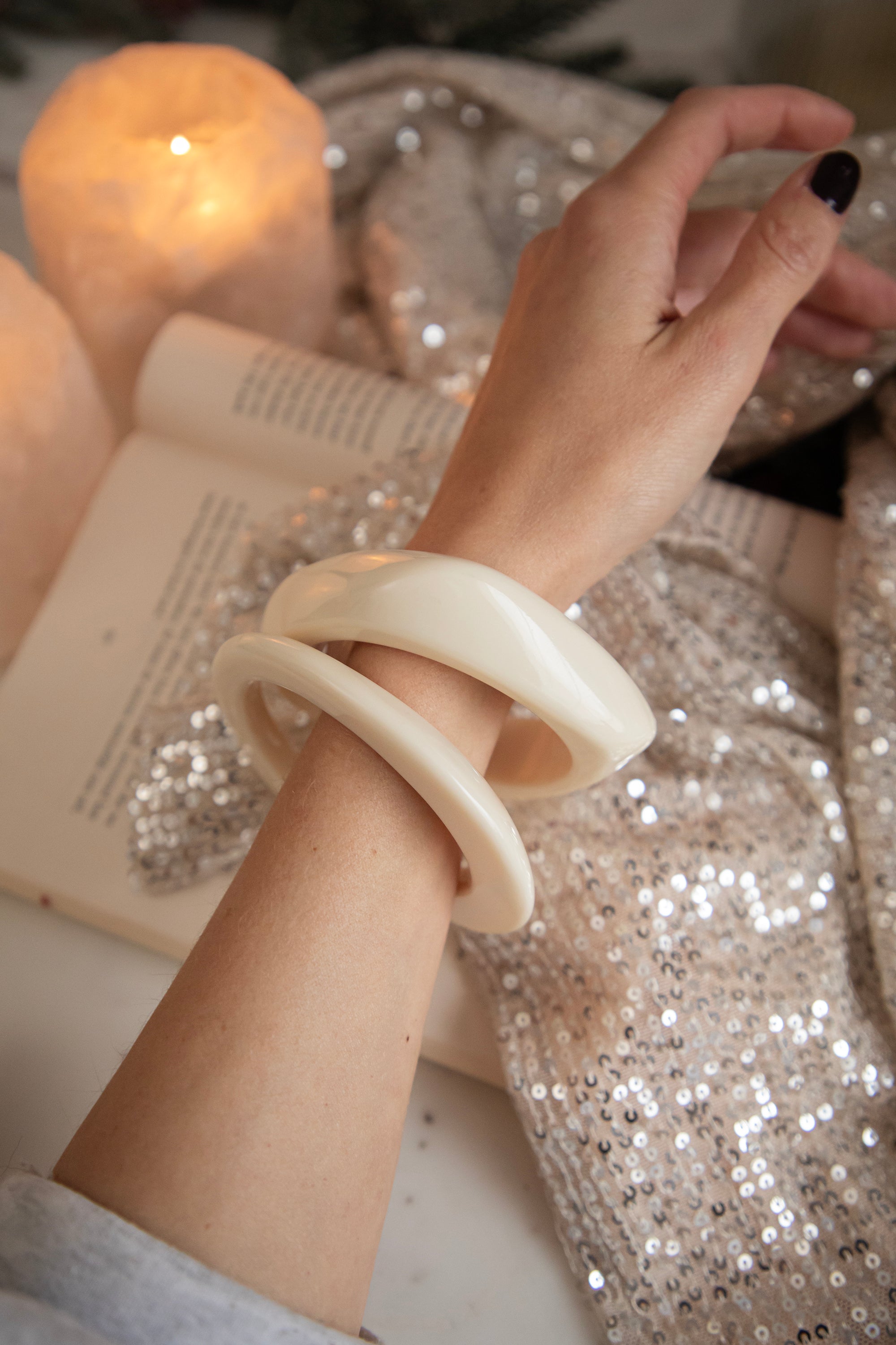 Ik ben zo fan van bangles! Ze horen echt bij mijn dagelijkse look! Simpel, strak en altijd stylish 😍 En hoe leuk is het dat je deze meteen als duo kan shoppen? Eén ronde, één hoekige… samen een dream team! ✨ De zachte beige kleur maakt ze super easy om te combineren met al je outfits 🤍