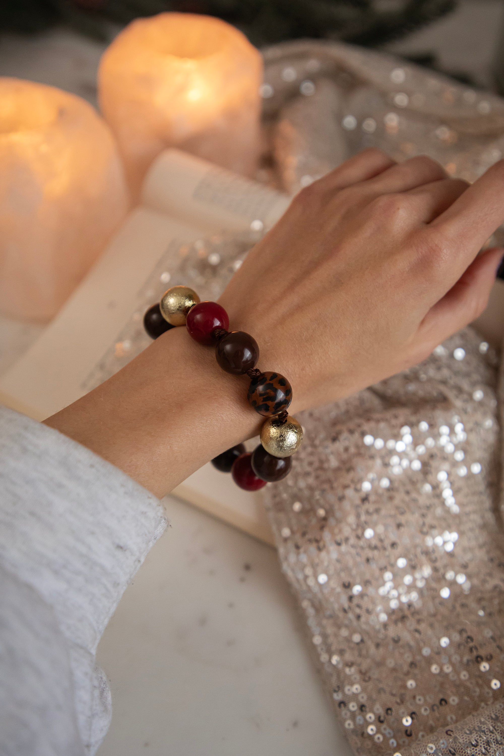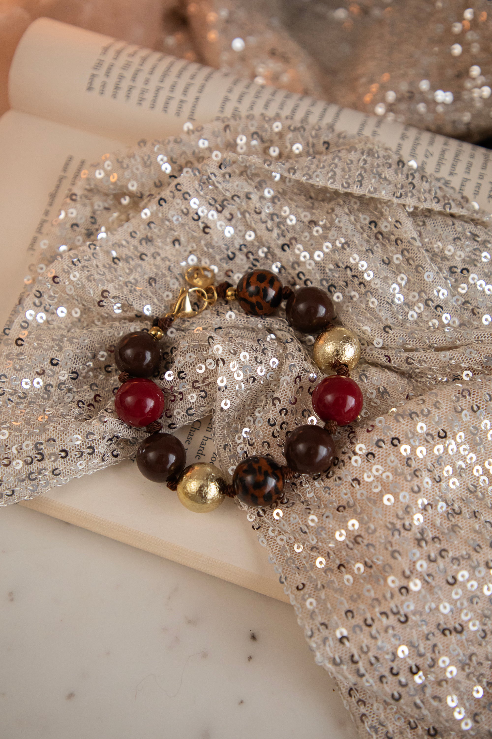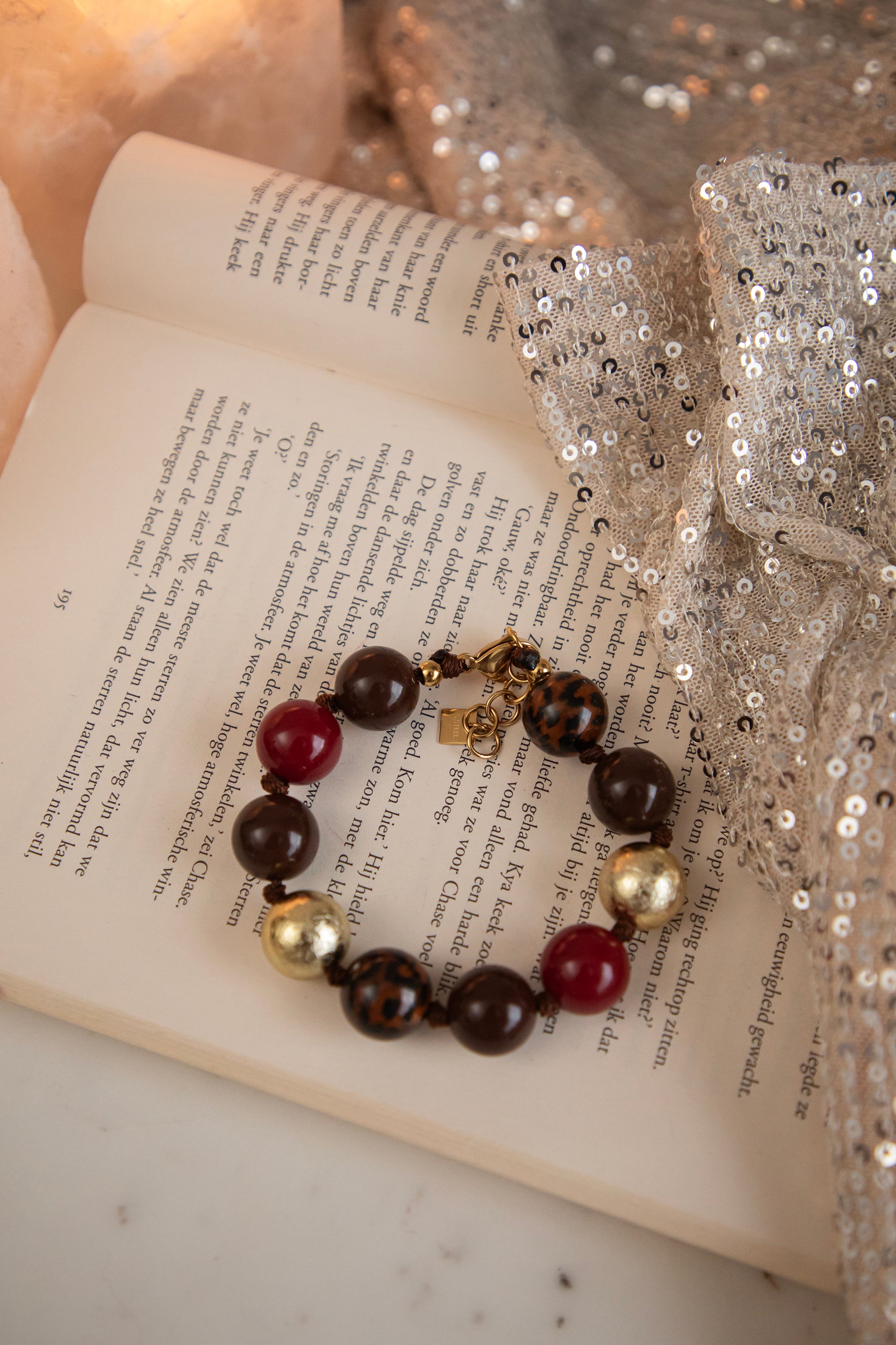 Wat een pareltje! Onze Royal Ball Bracelet heeft zo’n geweldige kleurencombo 🤎❤️ Bordeaux, warm bruin, een touch of gold en een leopard kraal… alles wat wij dit seizoen zo graag dragen, komt hier perfect samen!