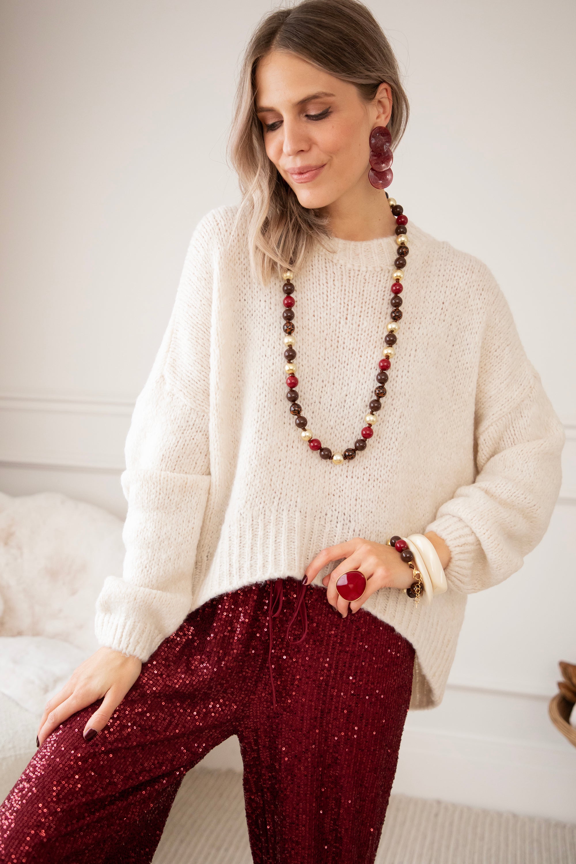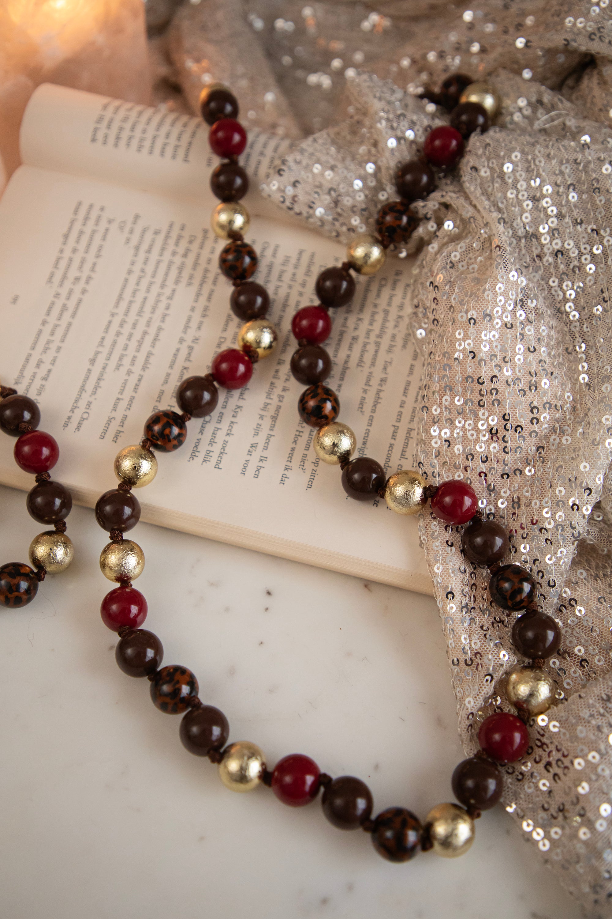 Wat een beauty! Onze Royal Ball Necklace heeft diezelfde onweerstaanbare kleurenmix waar je meteen blij van wordt 🤎❤️ Warm bruin, chique bordeaux, een touch of gold en dat speelse leopard detail… alle herfstfavorietjes perfect gecombineerd in één statement piece!