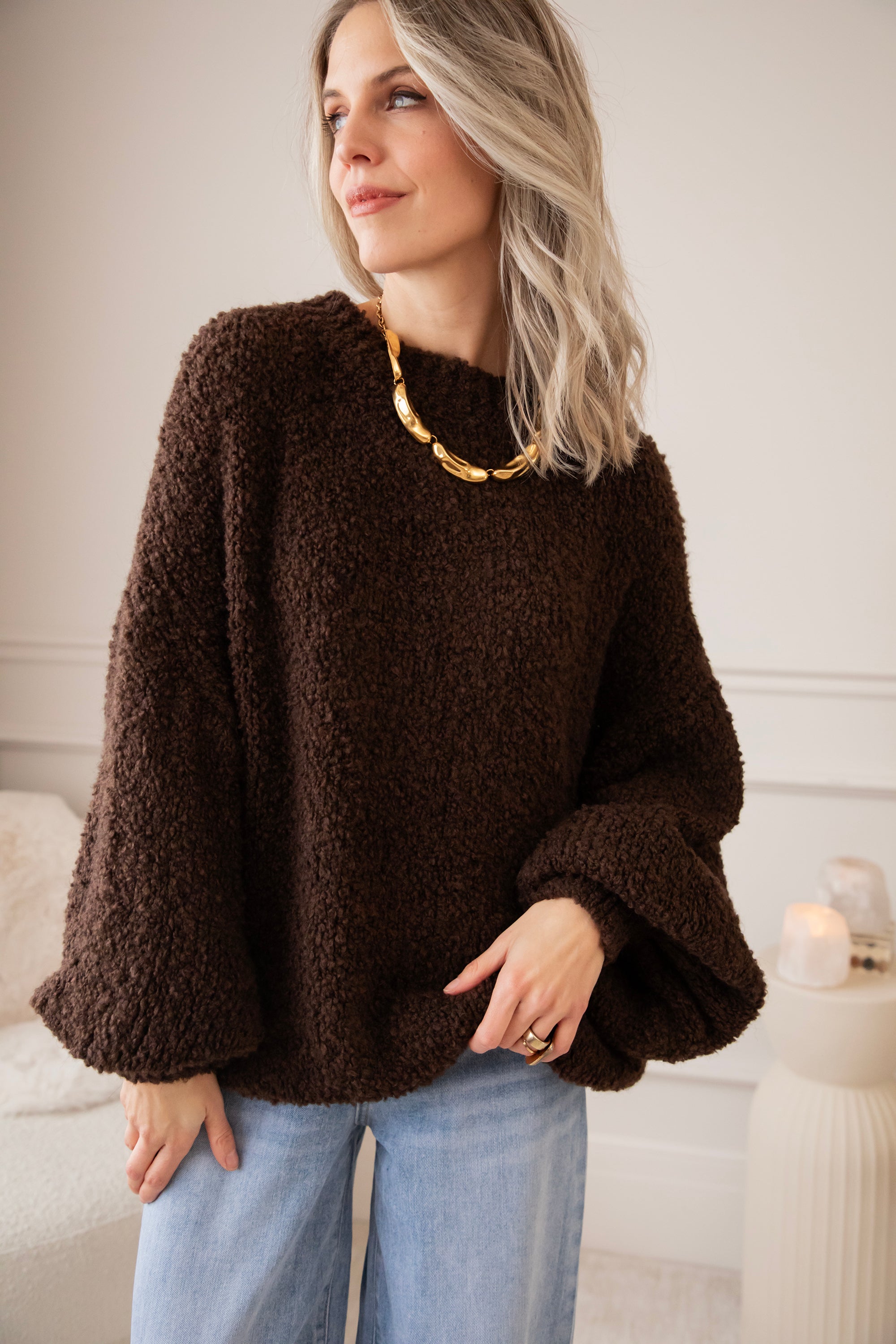 OMG girlsssss, Sabrina is een echte knuffeltrui 🧸 Een van onze absolute toppers! Volledig in teddy, heerlijk oversized en afgewerkt met die zalige pofmouwen waar je instant verliefd op wordt.