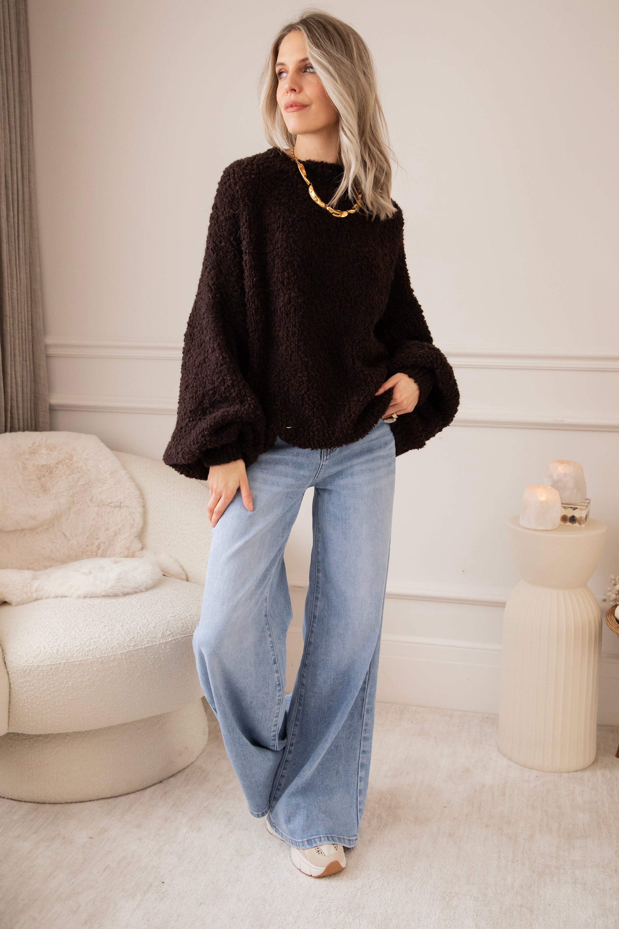 OMG girlsssss, Sabrina is een echte knuffeltrui 🧸 Een van onze absolute toppers! Volledig in teddy, heerlijk oversized en afgewerkt met die zalige pofmouwen waar je instant verliefd op wordt.