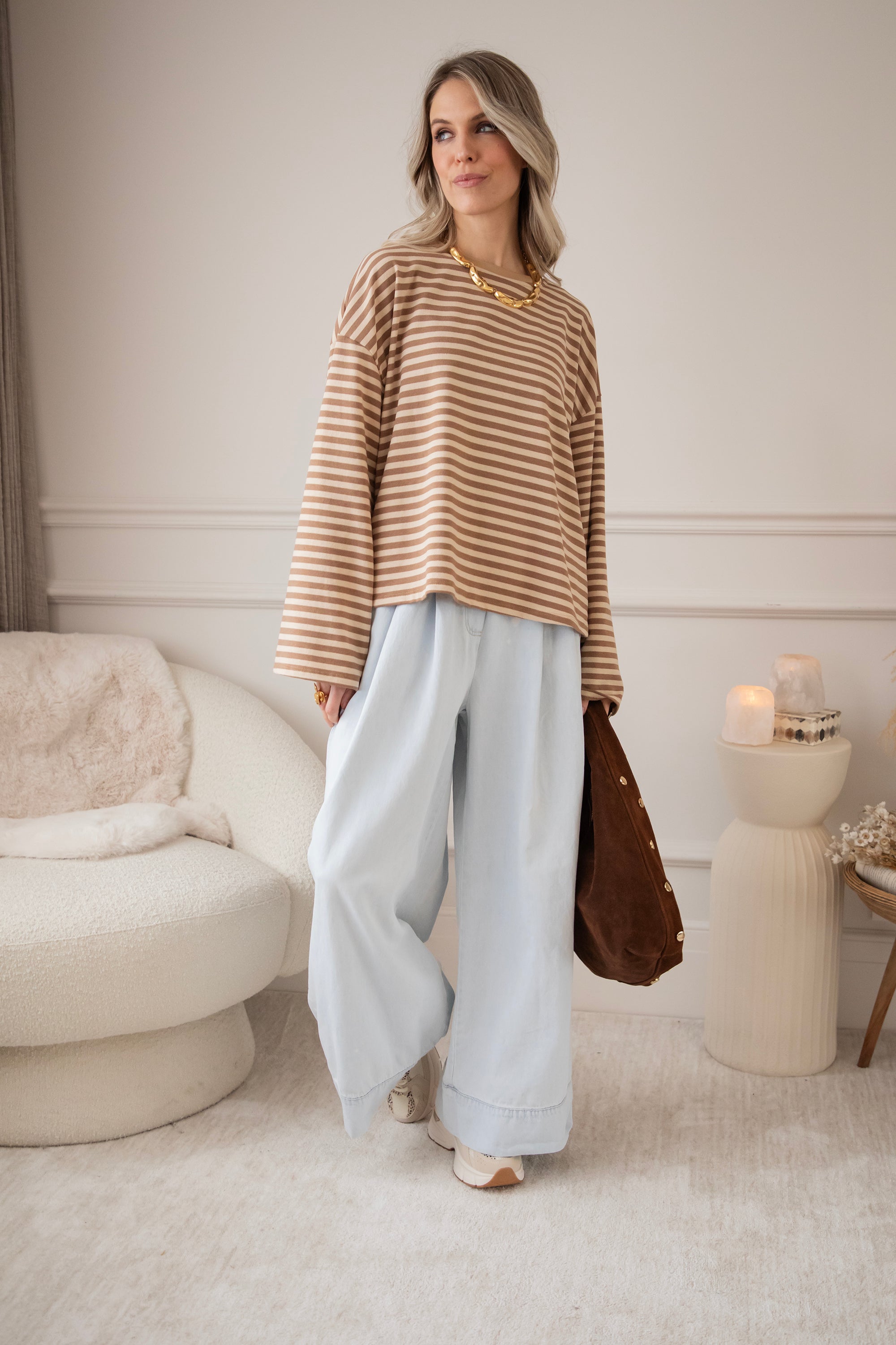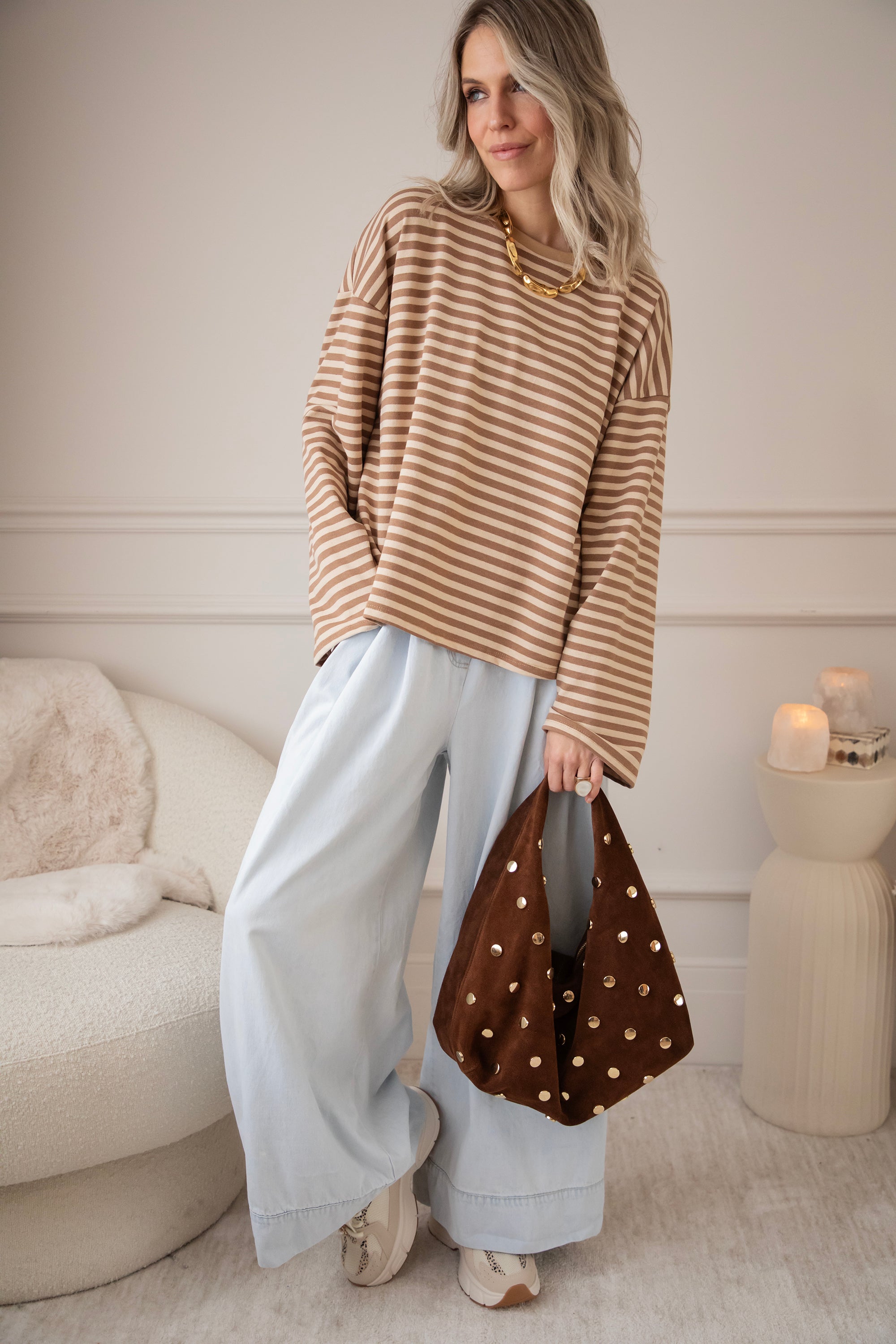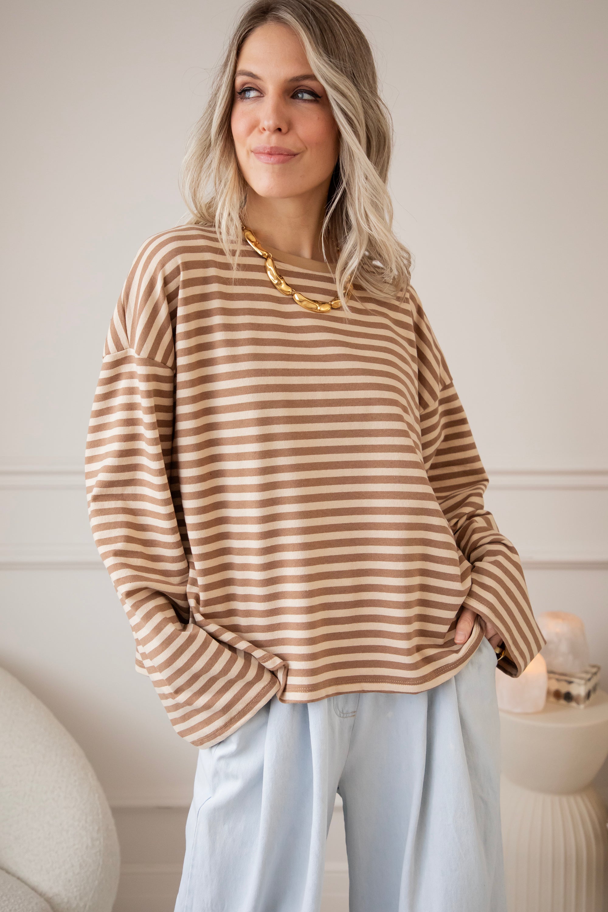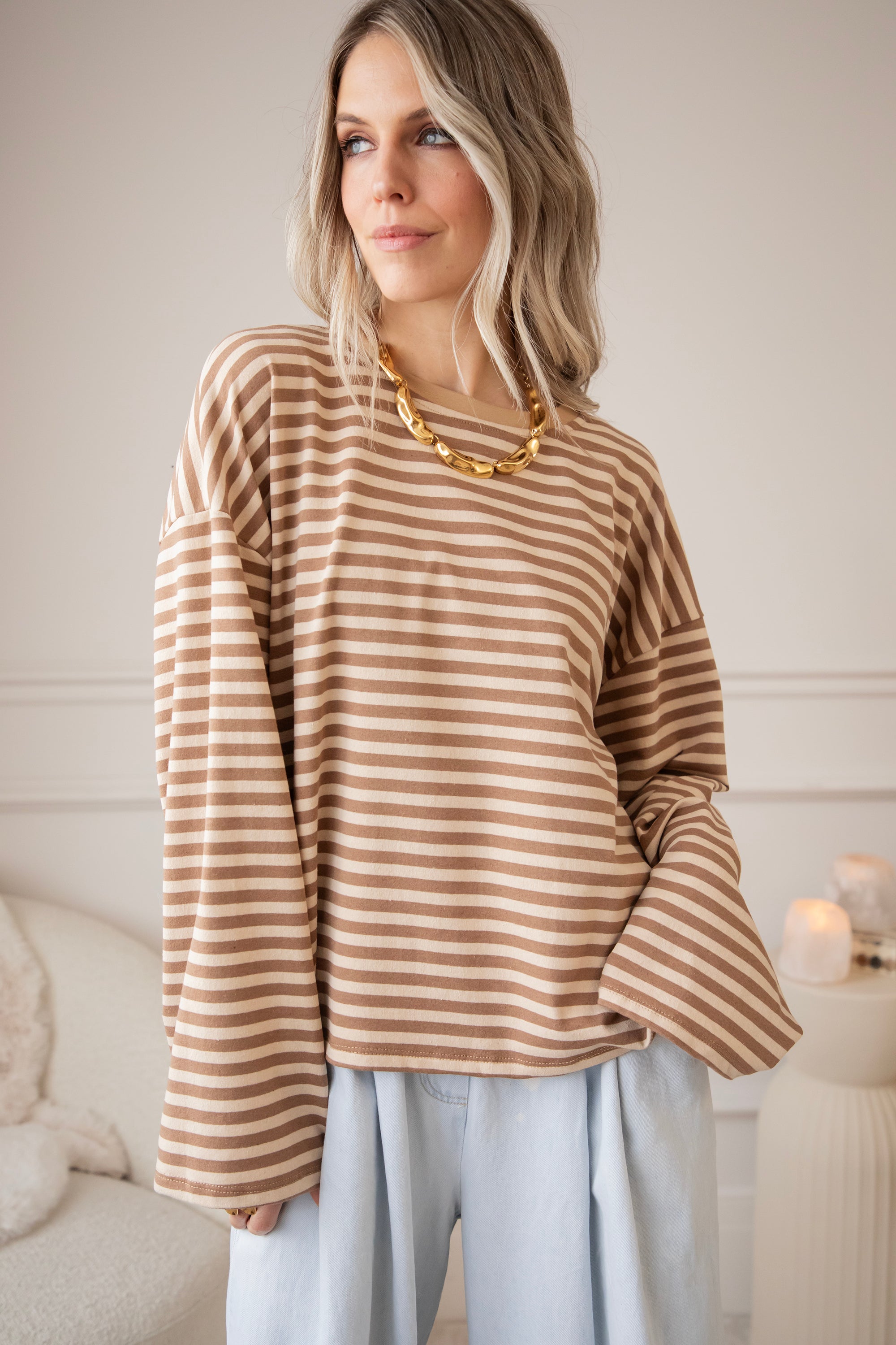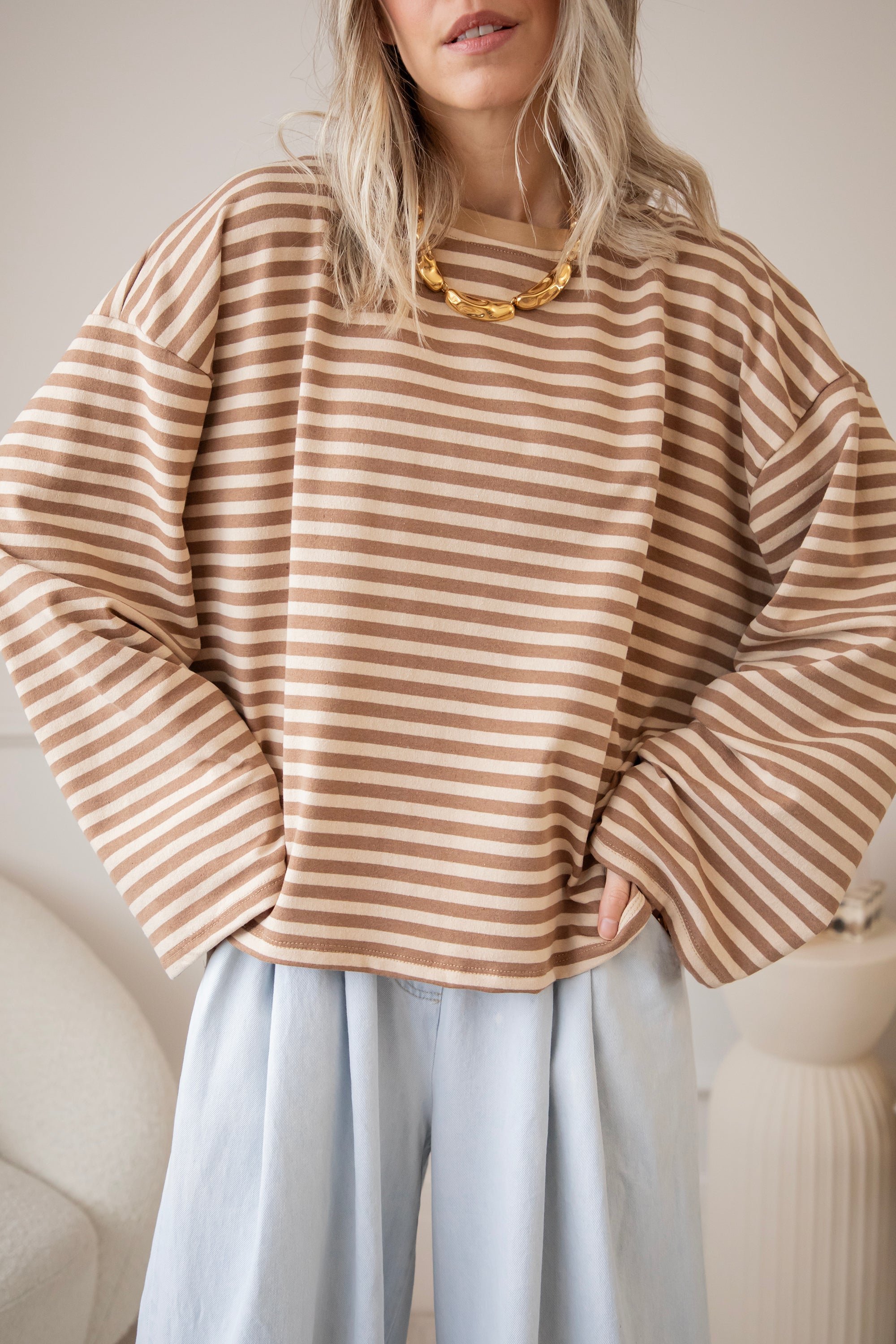 Een loose longsleeve met een gestreept patroontje… dat heeft bij mij meteen een streepje voor hihi 🤎