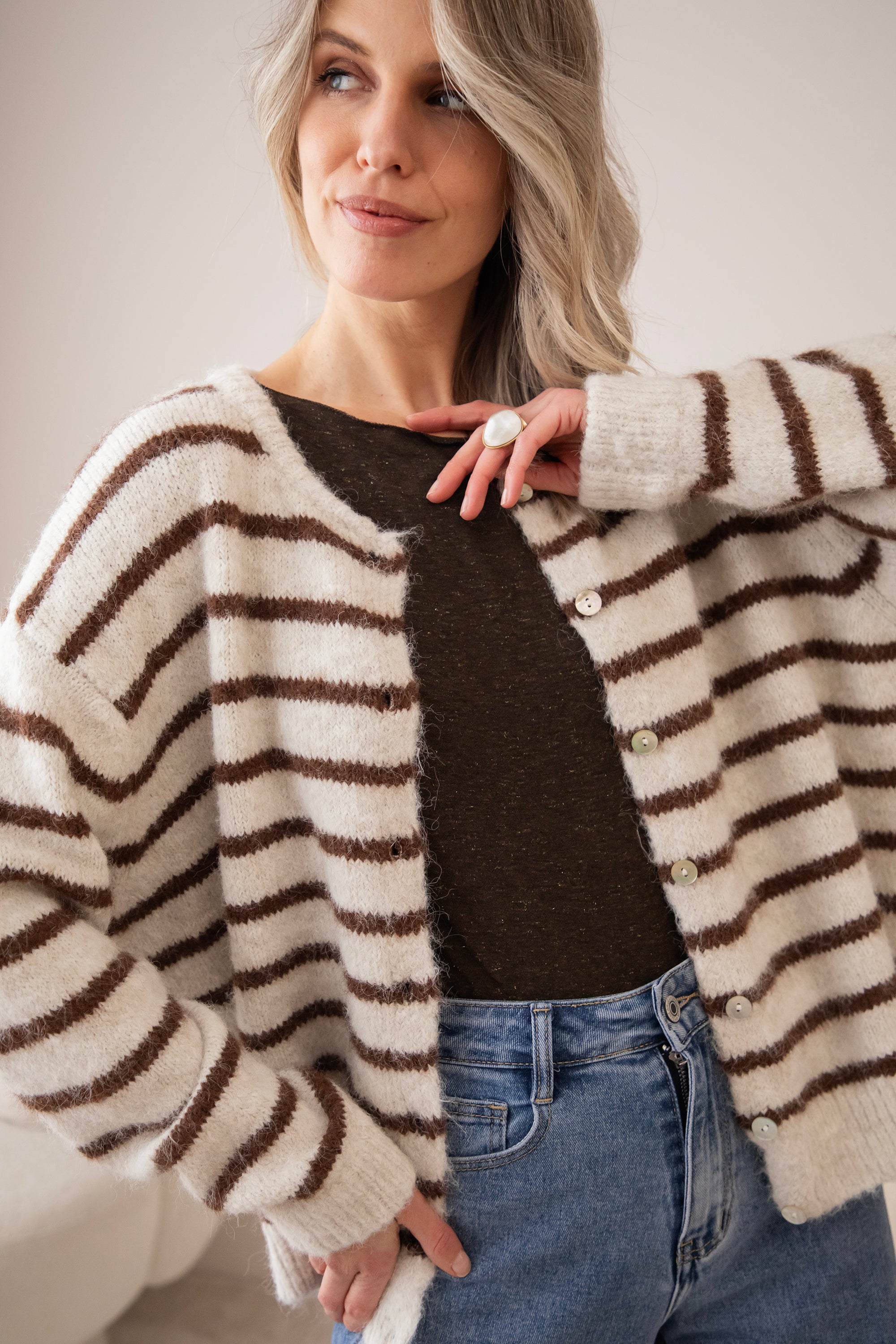 Ze is pure happiness in knit form: zacht breiwerk, speelse strepen en dat heerlijke losse draaggevoel 🥰