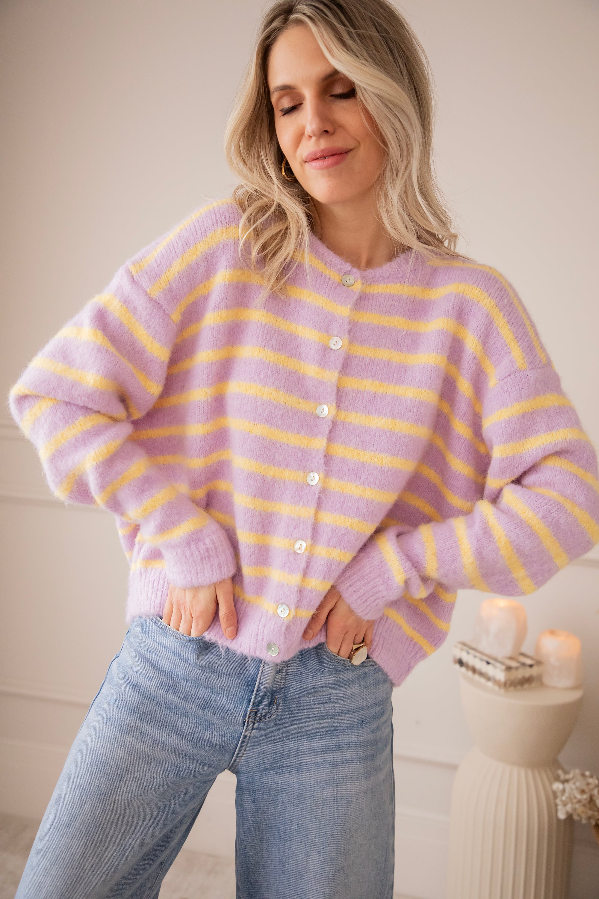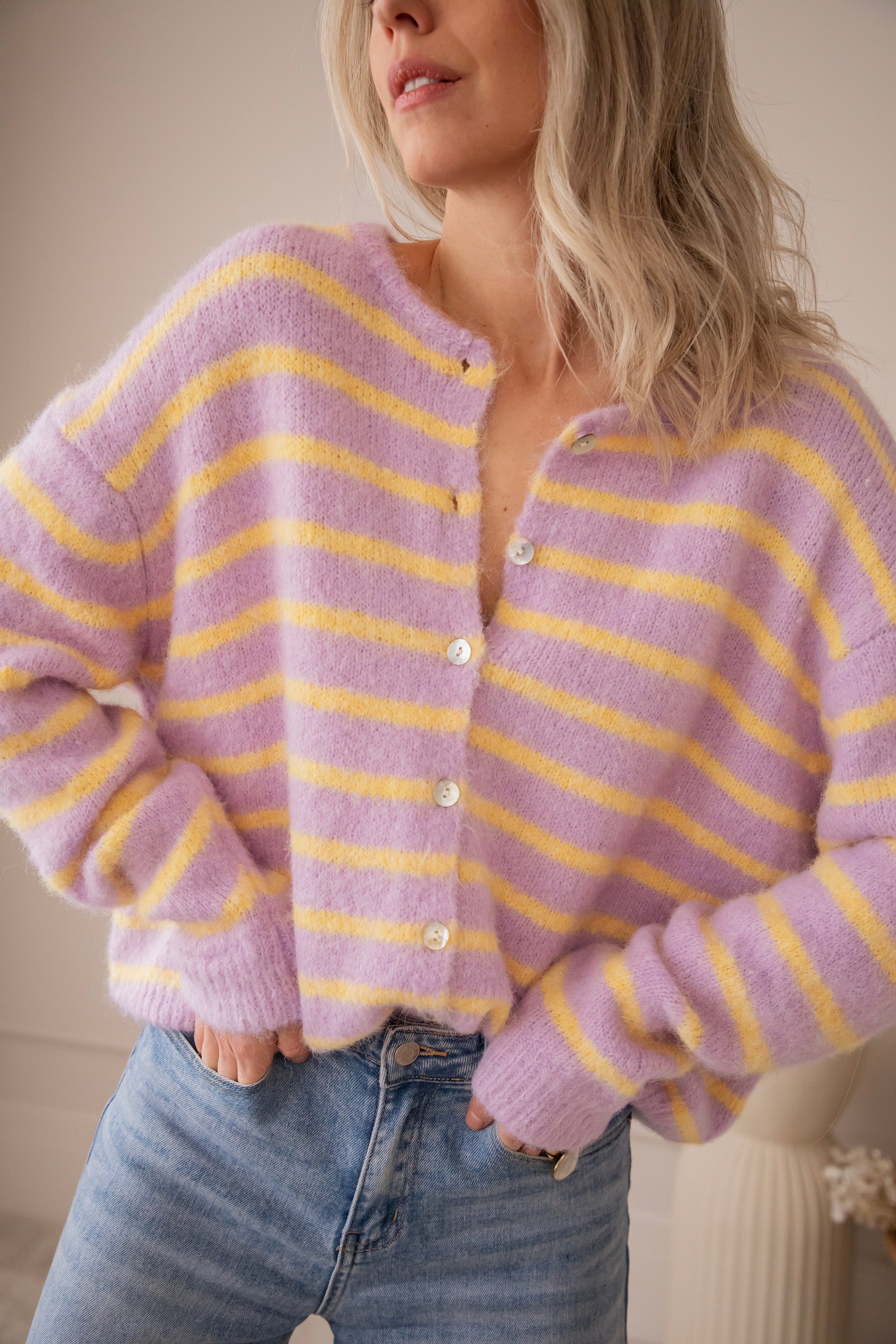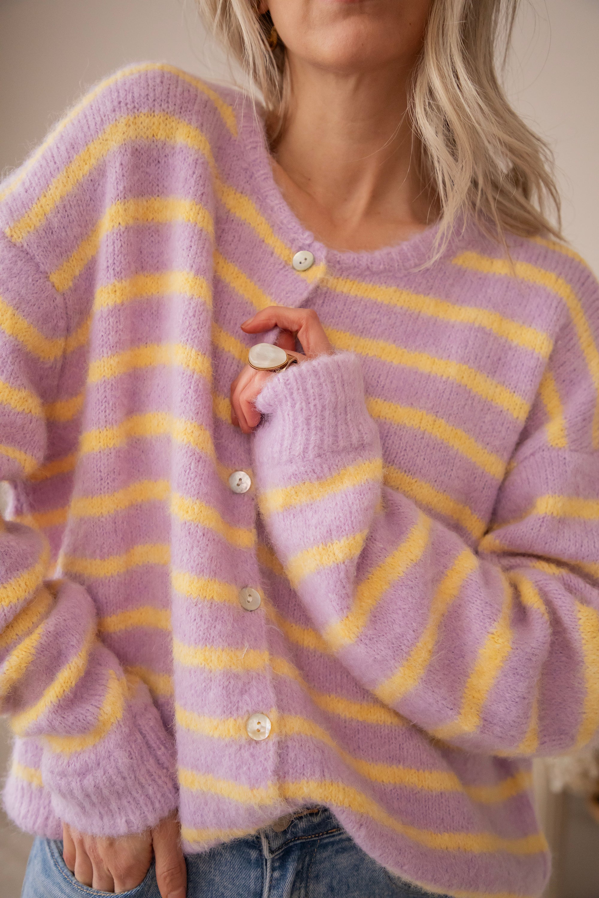 Happy knits voor happy spring days! 💛 Samantha Stripe is pure happiness in knit form: zacht breiwerk, fijne strepen en dat heerlijke losse draaggevoel 🥰 De lange mouwtjes en de parelmoeren knopenrij zijn fijne troeven! Oehhh deze combo vind ik toch wel een toppertje hoor, zo zacht en vrolijk tegelijk 💜 Hoe moeten we toch kiezen tussen al die leuke kleurtjes 🤭
