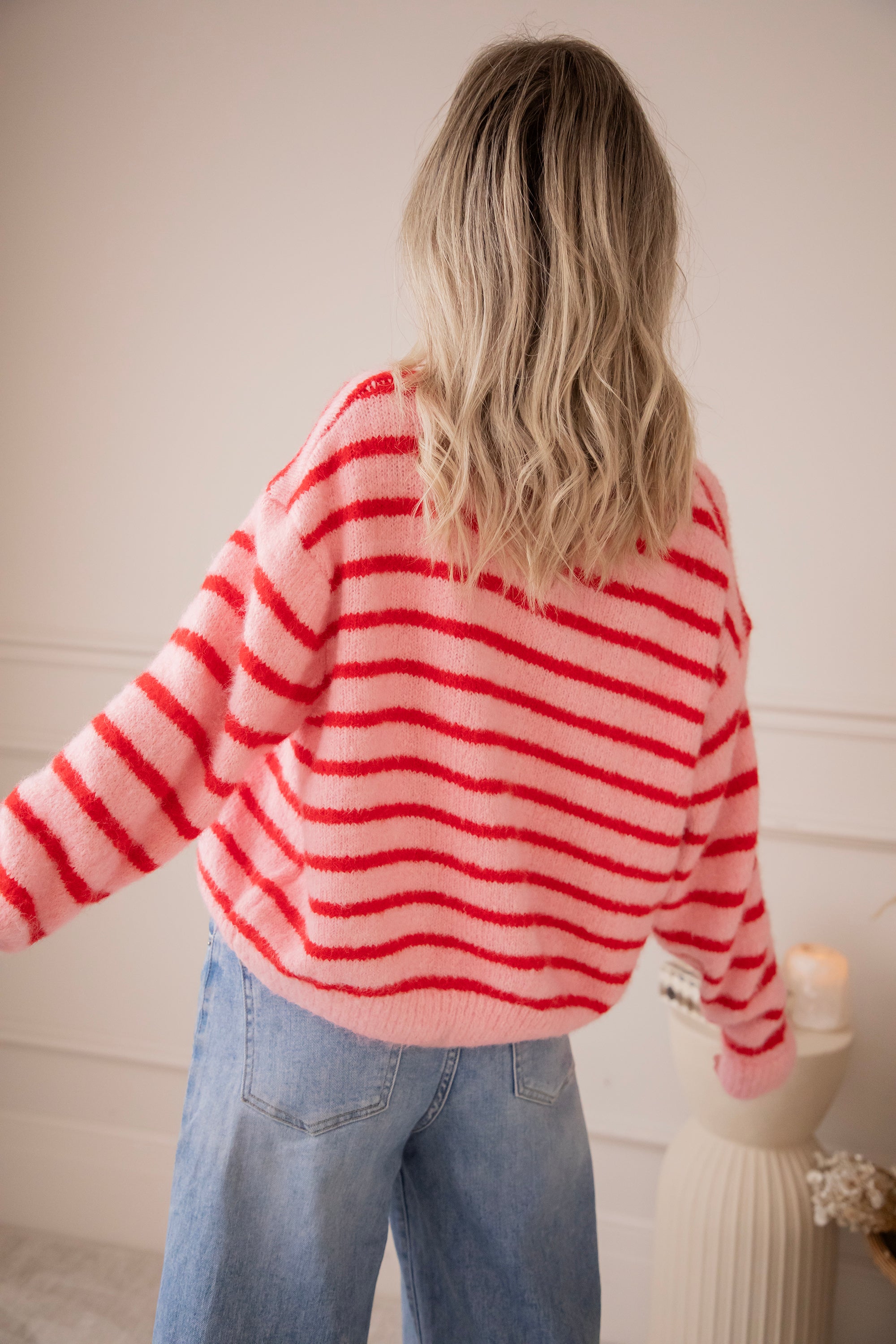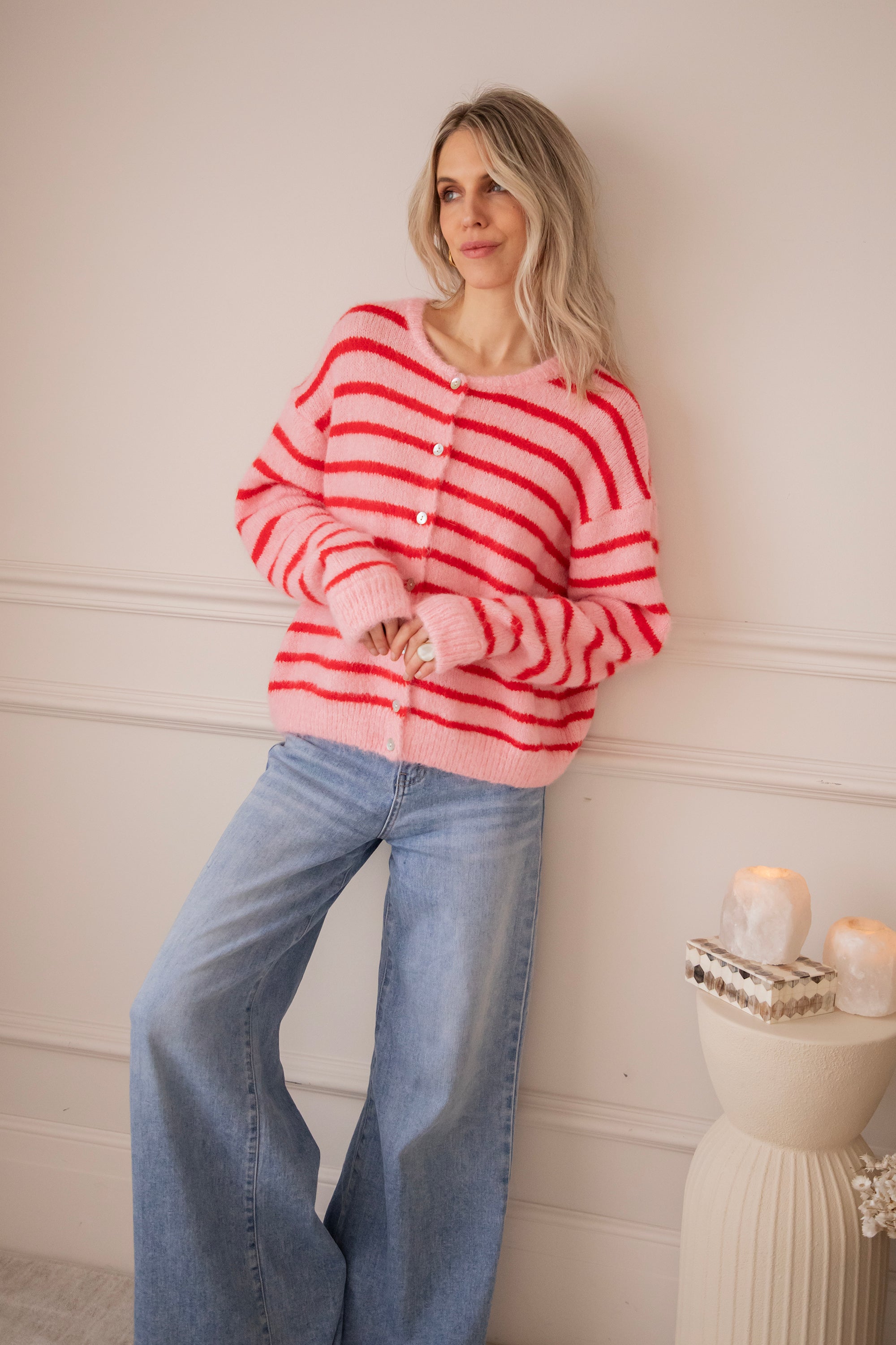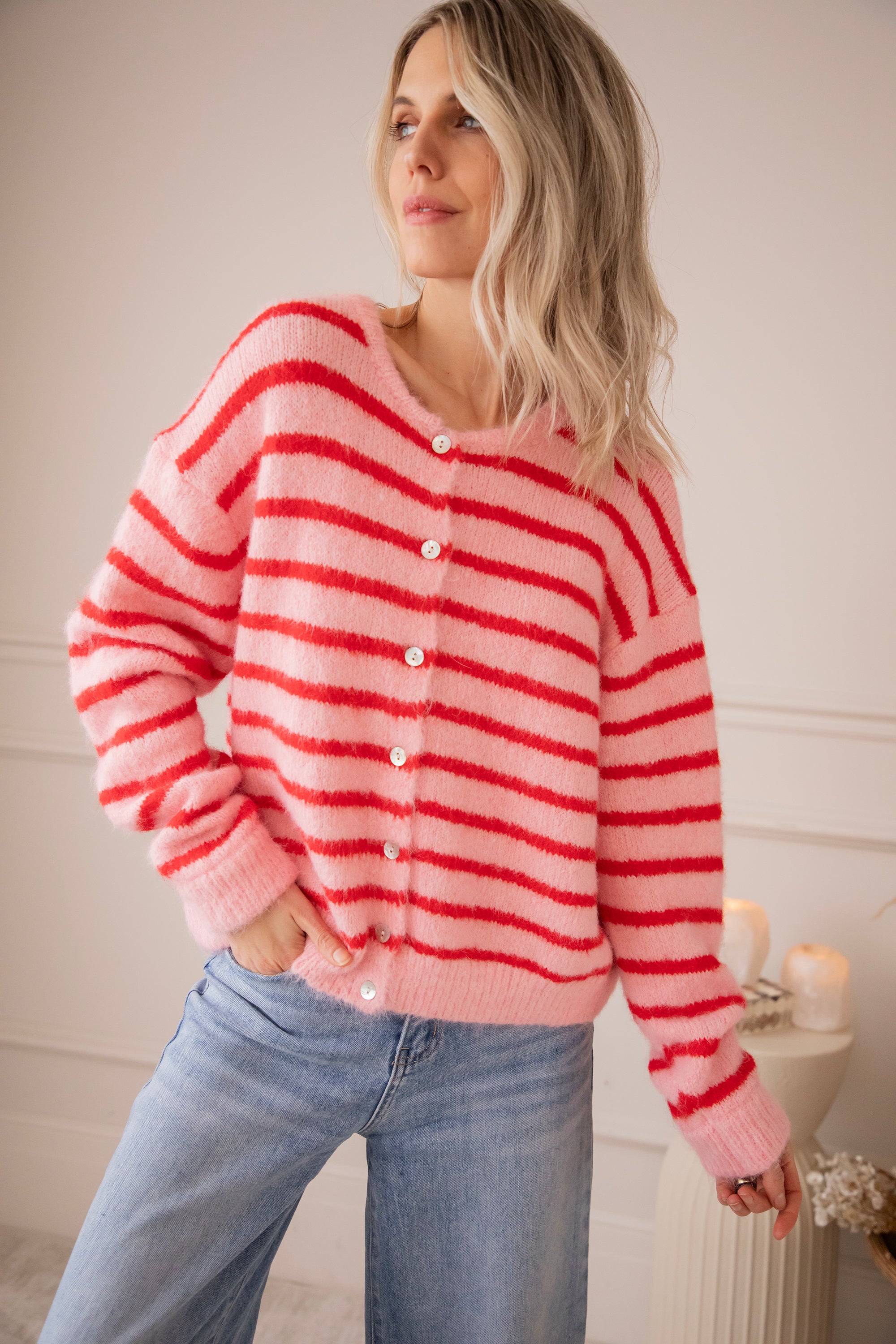 Happy knits voor happy spring days! ❤️ Samantha Stripe is pure happiness in knit form: zacht breiwerk, fijne strepen en dat heerlijke losse draaggevoel 🥰 De lange mouwtjes en de parelmoeren knopenrij zijn fijne troeven! Roze en rood samen hebben toch altijd een klein streepje voor bij mij hihi, zo'n warme en girly uitstraling 🩷 Hoe moeten we toch kiezen tussen al die leuke kleurtjes 🤭